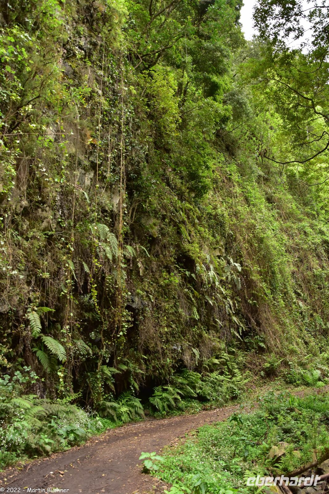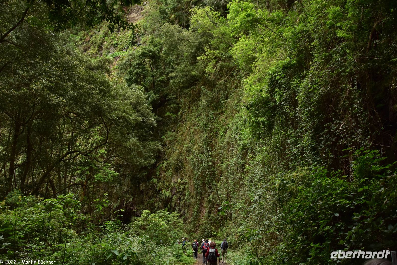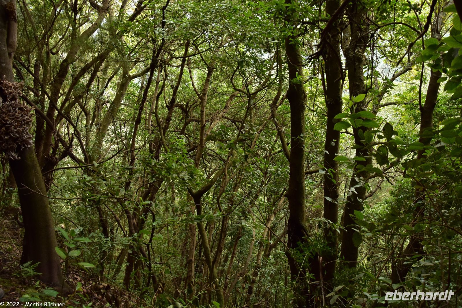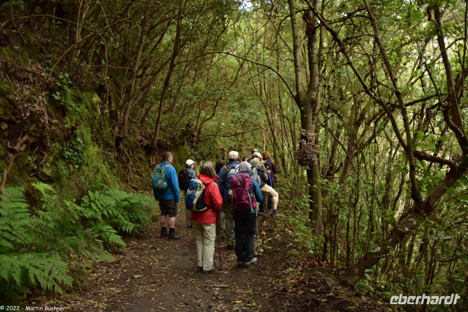 Insbesondere in den niedrigeren Lagen haben sich spezielle Nebel-Lorbeer-Wälder gebildet. Urtümlich wirkt die Landschaft unserer ersten Wanderung. Unterschiedlich hochgewachsene urwaldartige Lorbeerarten dominieren die Szenerie.