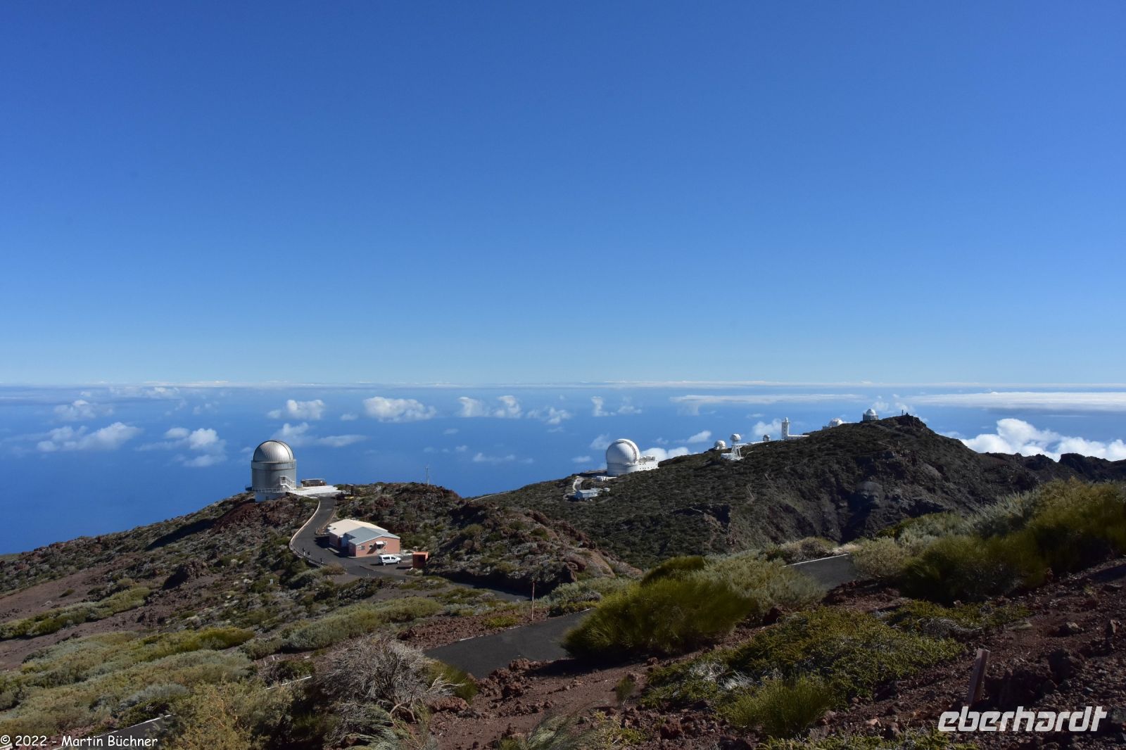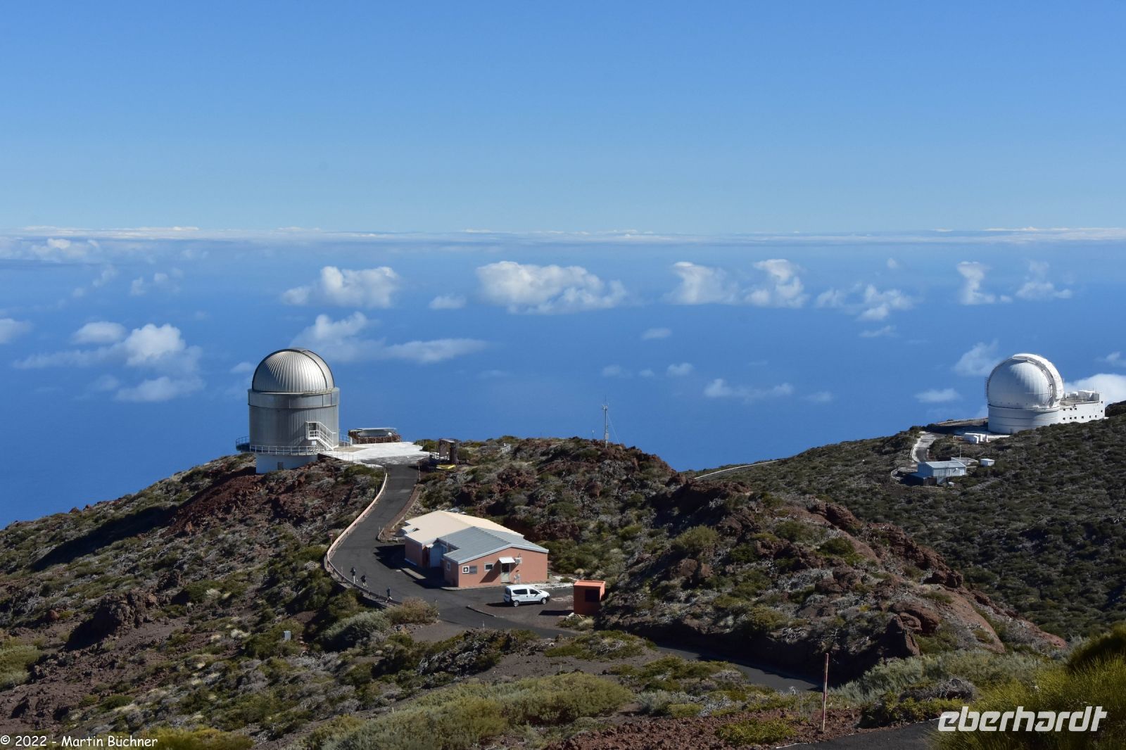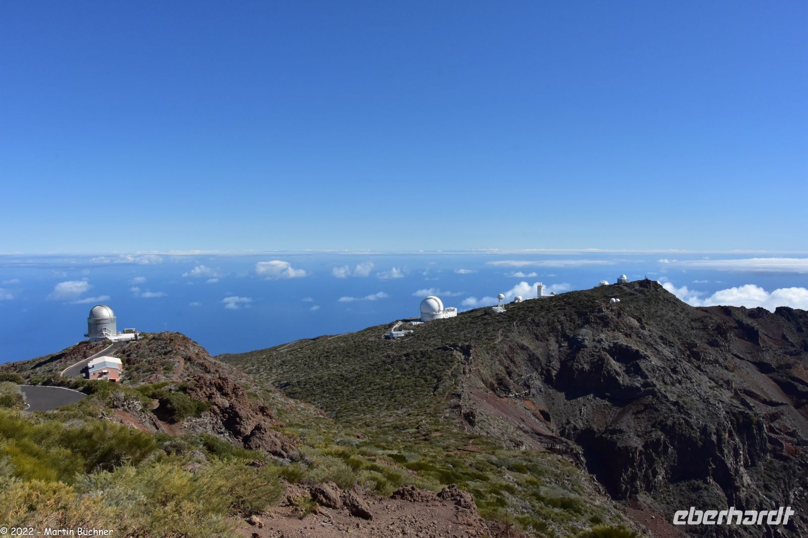 Die kanarischen Inseln haben eine besondere Schutzzone. So gibt es ein generelles Flugverbot für Flugzeuge über der Insel, um die Luft frei von Fremdpartikeln zu halten, gleichzeitig gehören die Inseln zu den dunkelsten Stellen der Welt (in der Nacht), frei von fast jeder Lichtverschmutzung. Diese Bedingungen ermöglichen großartige astronomische Beobachtungen, so ist es nicht verwunderlich, dass die großen namhaften astronomischen Institute in der Welt, hier um den Gipfel des Roque de los Muchachos große Observatorien betreiben – Teleskope in diversen Spektren des Lichts.