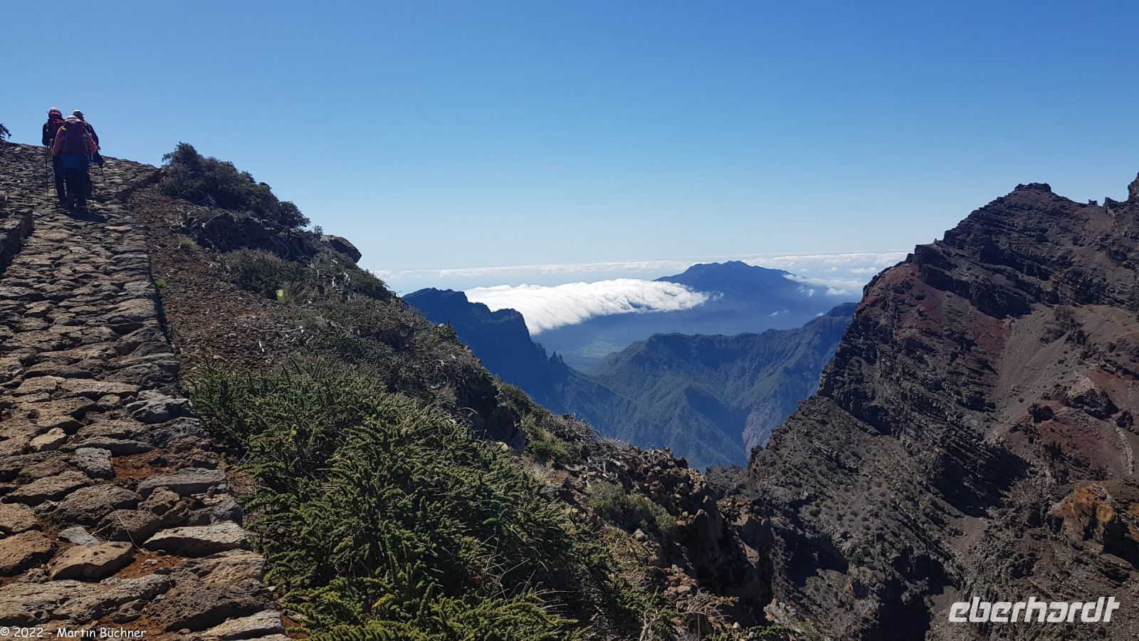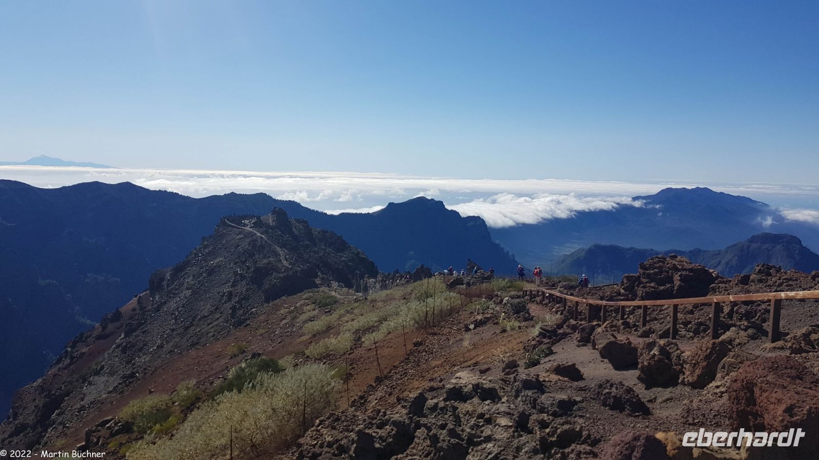 Unsere Wanderung beginnt am höchsten Punkt der Insel dem Roque de los Muchachos (2.426 m) und zieht sich in südliche Richtung immer entlang des Caldera-Kammes.