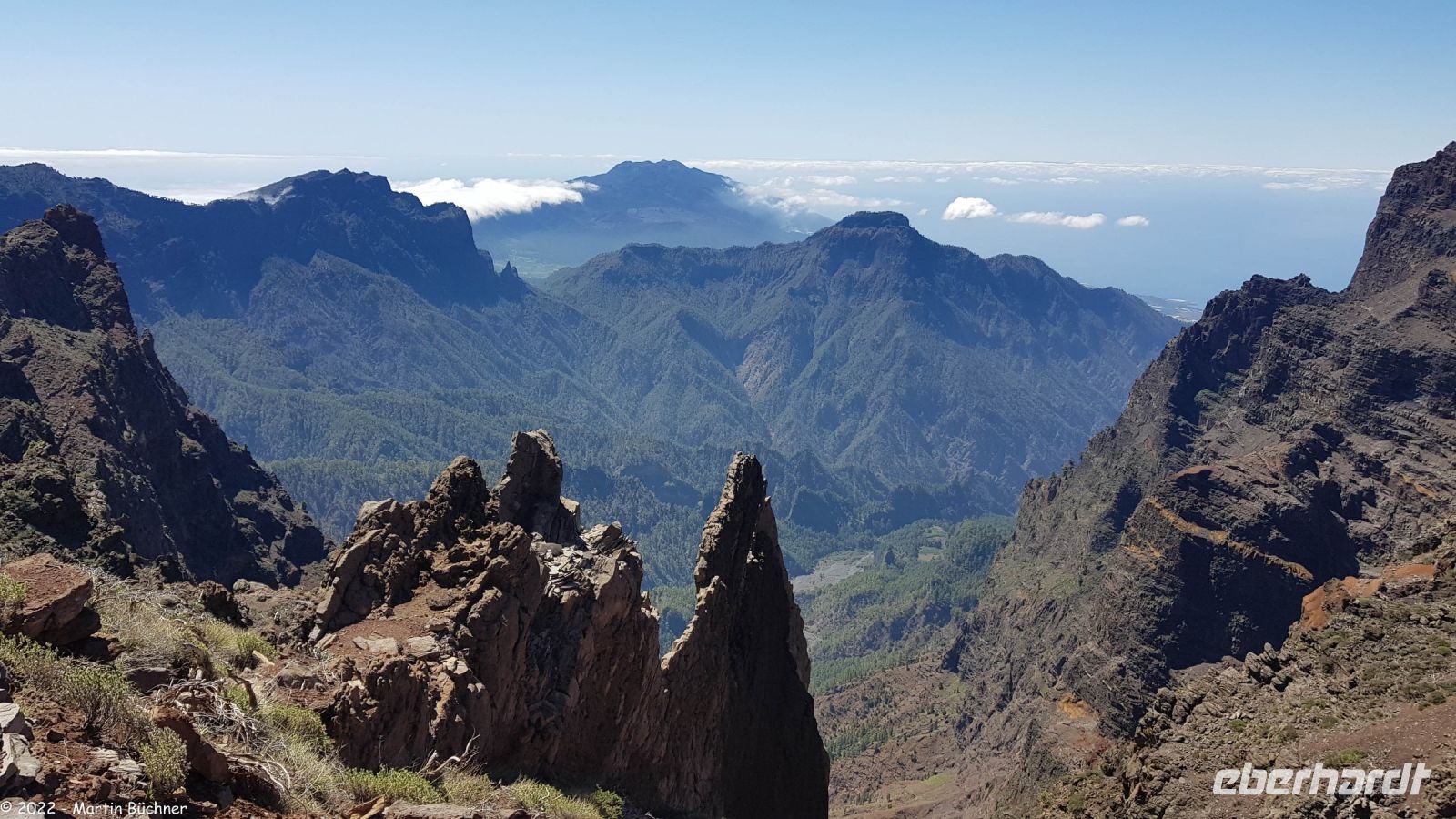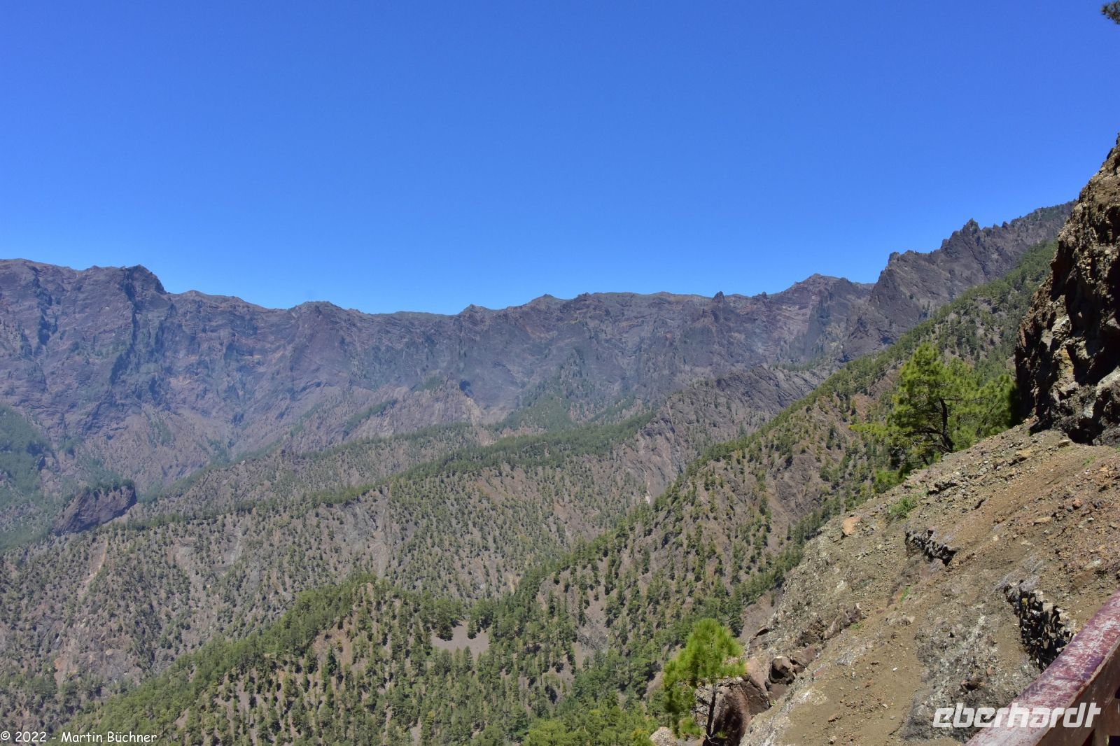 Am Nachmittag besuchen wir den wohl spektakulärsten Aussichtspunkt der Insel „Mirador el Time“, hoch oben über der Caldera eröffnet er einen weiten Blick über das Tal von Aridane.