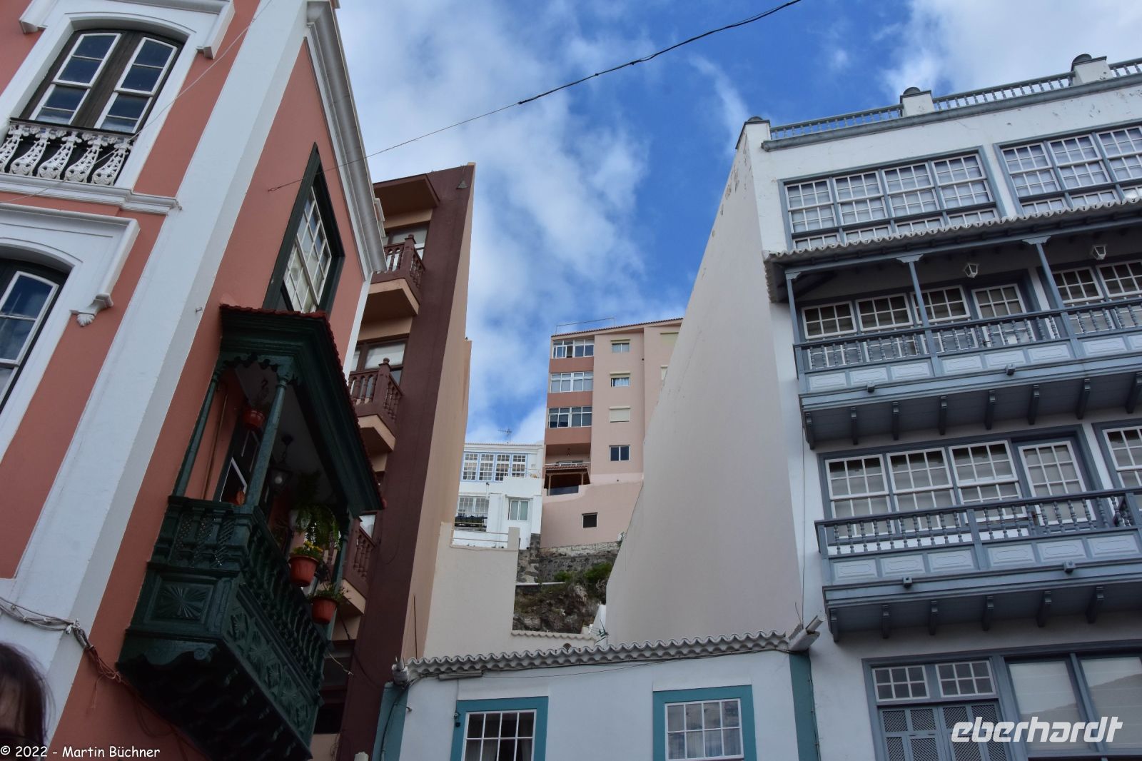 Typisch sind auch die vielen bunten Balkone auf der Meerseite, heute wunderbar gärtnerisch bepflanzt. Die Innenstadt endet bei den alten spanischen Befestigungen, dem Nachbau der Santa Maria (Kolumbus Flaggschiff), dass hier nachgebaut als Seefahrtsmuseum dient und an einem der Zwerge (Denkmal). Bei dem Tanz der Zwerge, ein inselübergreifendes Fest, dass alle 5 Jahre gefeiert wird, handelt es sich um eine Verballhornung des Franzosen Napoleon.