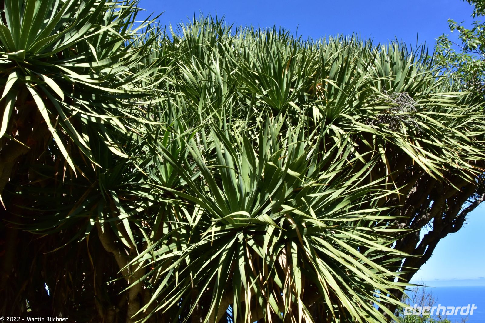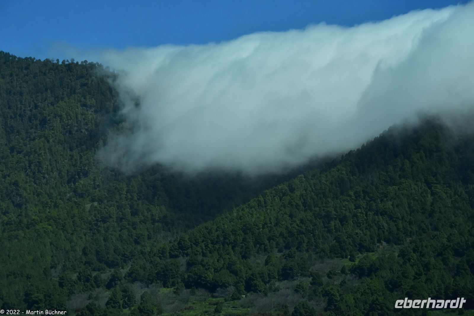 Wir beginnen im Nordosten der Insel, der Bereich, auf den der stetig wehende Nordostpassatwind trifft. In tieferen und mittleren Lagen verwandelt sich seine mitgeführte Feuchtigkeit durch Kondensation in lebensstiftenden Nebel um.
