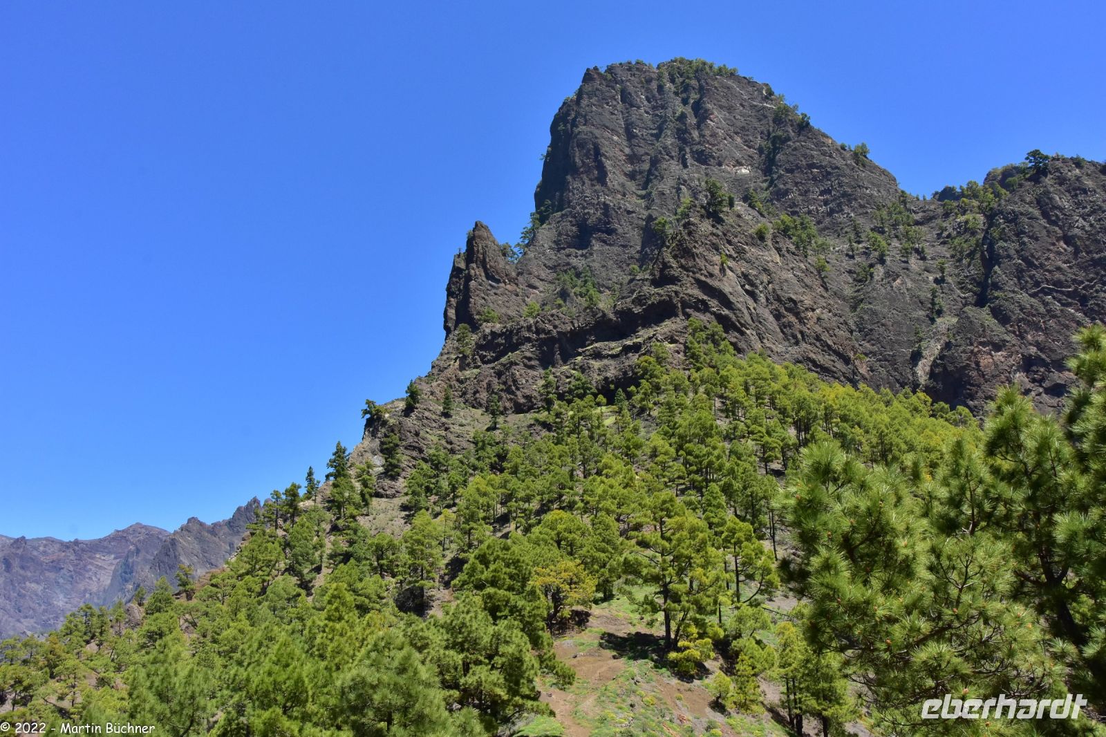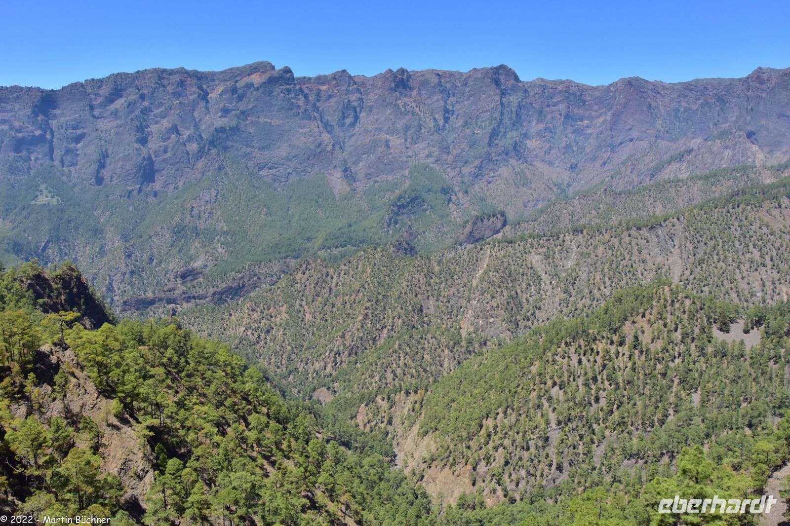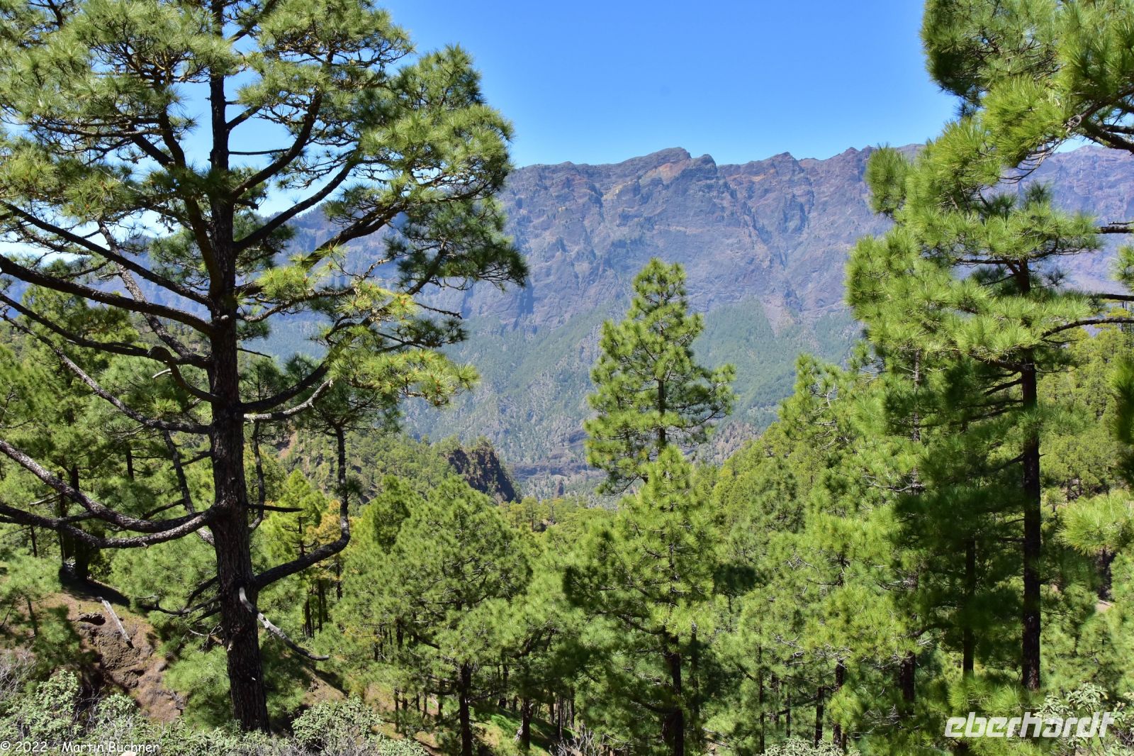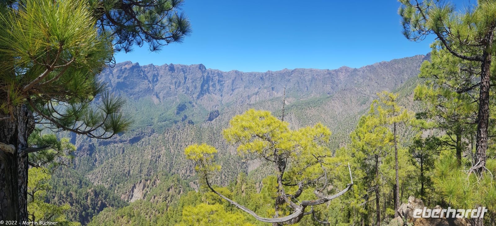 Heute wandern wir auf dem Dach der Insel La Palma. In unzähligen Serpentinen geht es durch diverse Klimazonen, unter anderem den imposanten Pinienwald hinauf in die Steinwüste des Caldera-Randes.