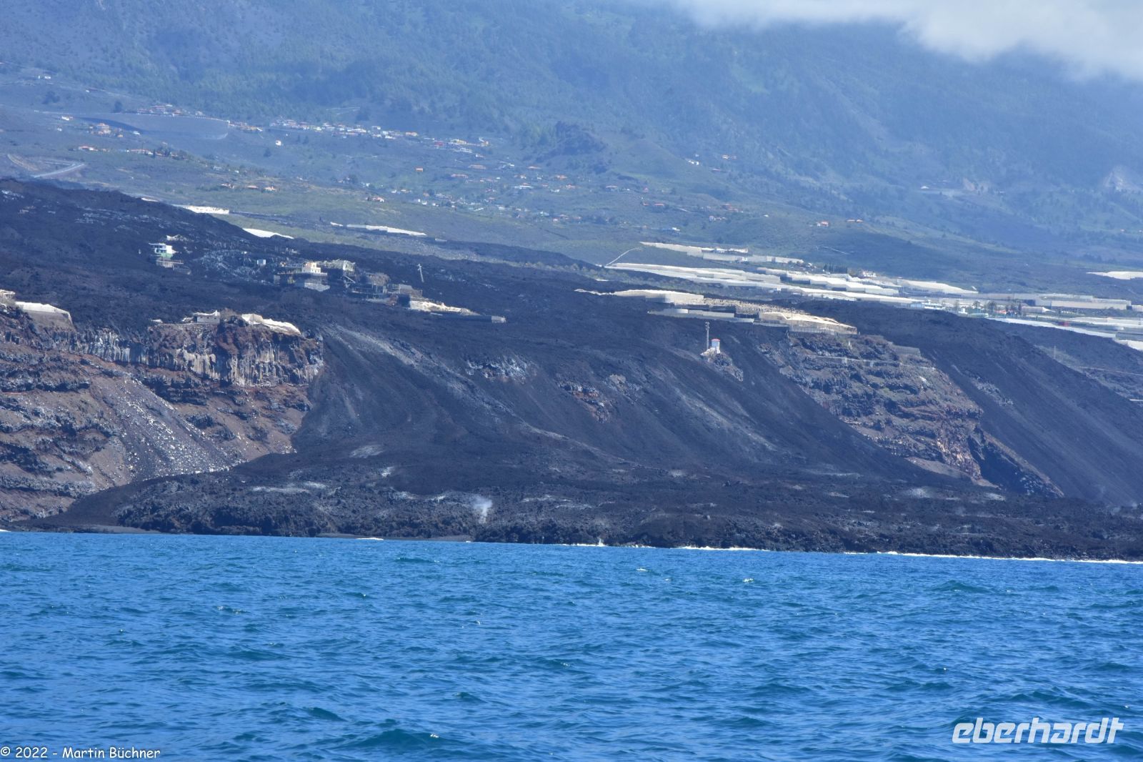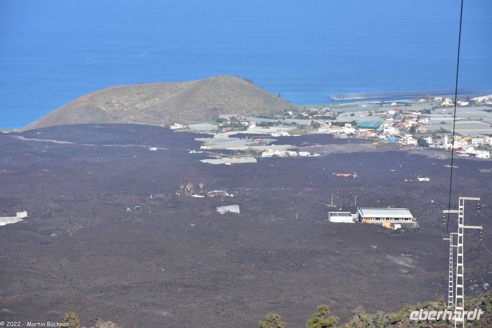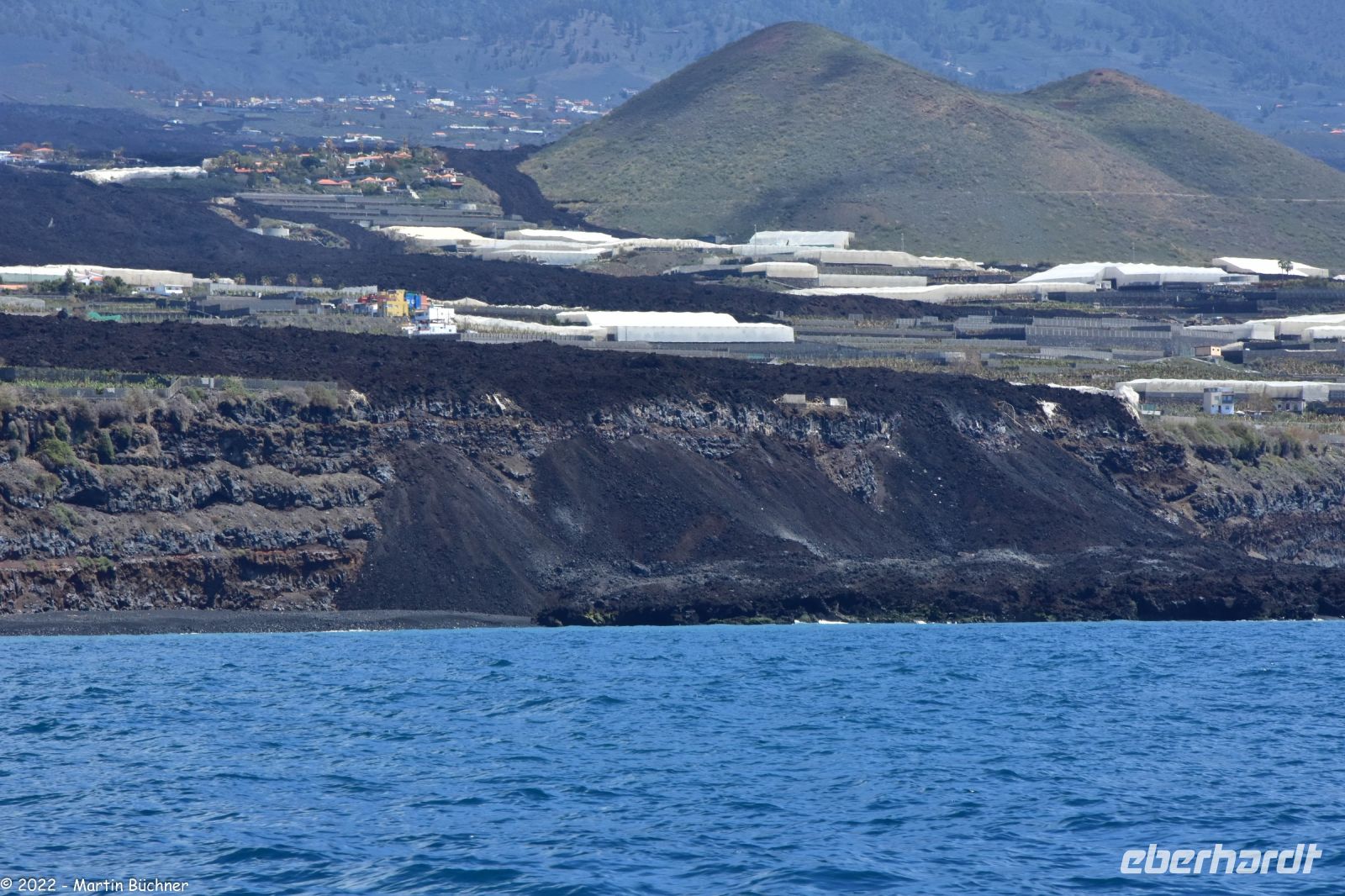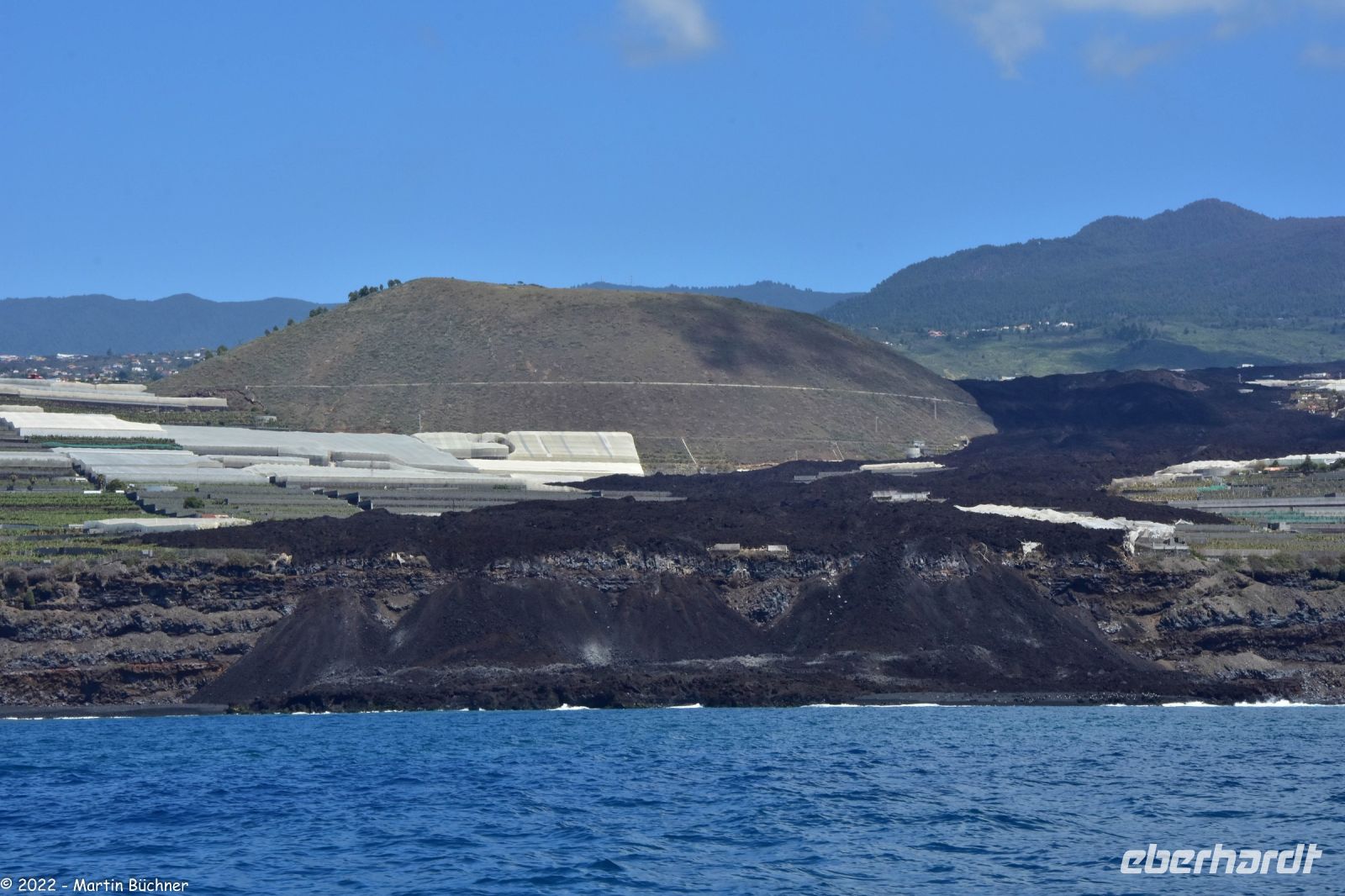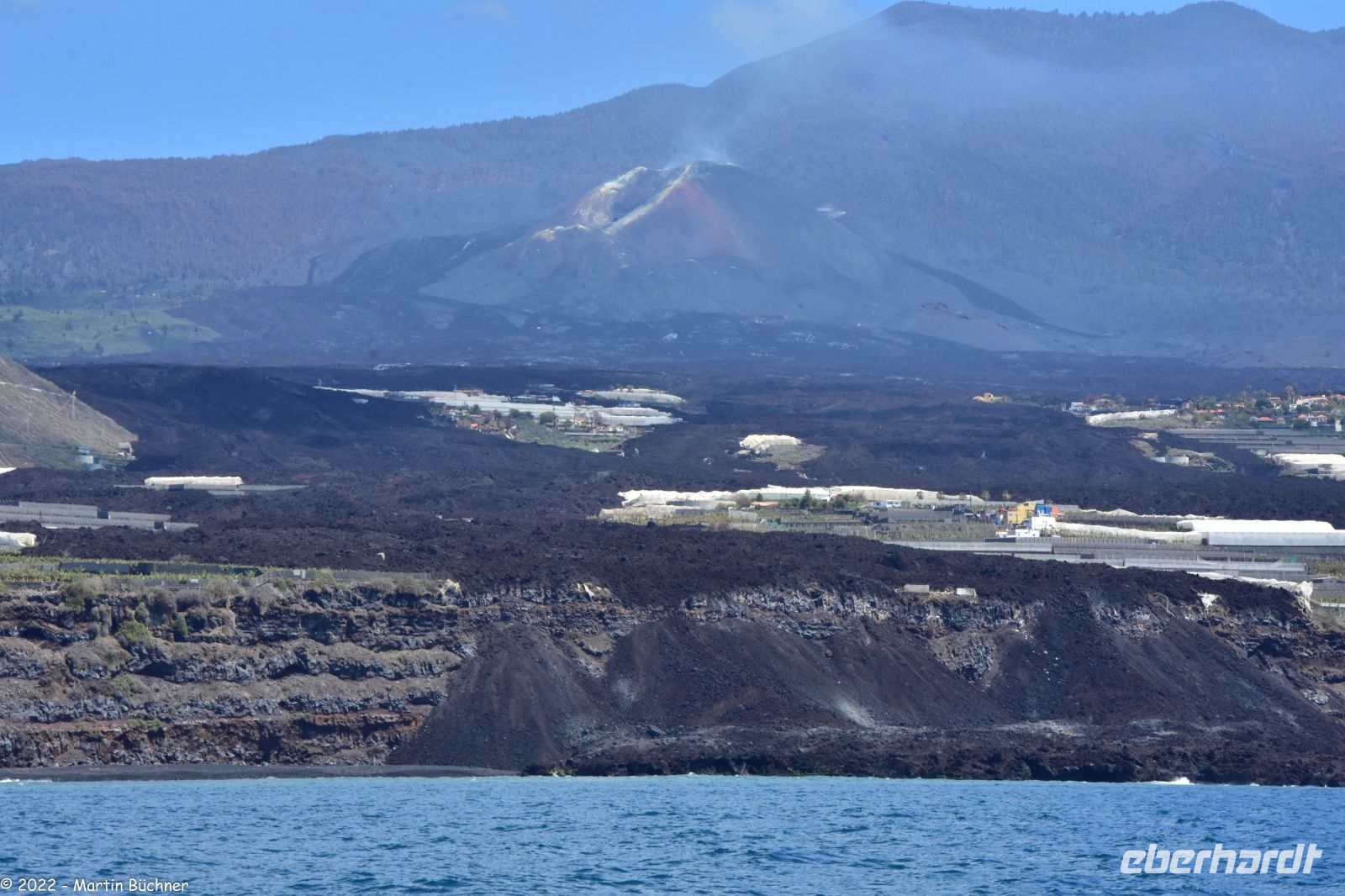 Dutzende Meter Mächtigkeit, 1.000 °C heiß und bis zu 3 km breit ergoss sich der Lavastrom vom neuen Vulkan (noch ohne Namen) bis hinunter zum Meer und begrub hunderte Haushalte für immer unter sich. Nach vier Monaten hat man in nur 30 cm Bodentiefe immer noch eine Temperatur von 400 °C.