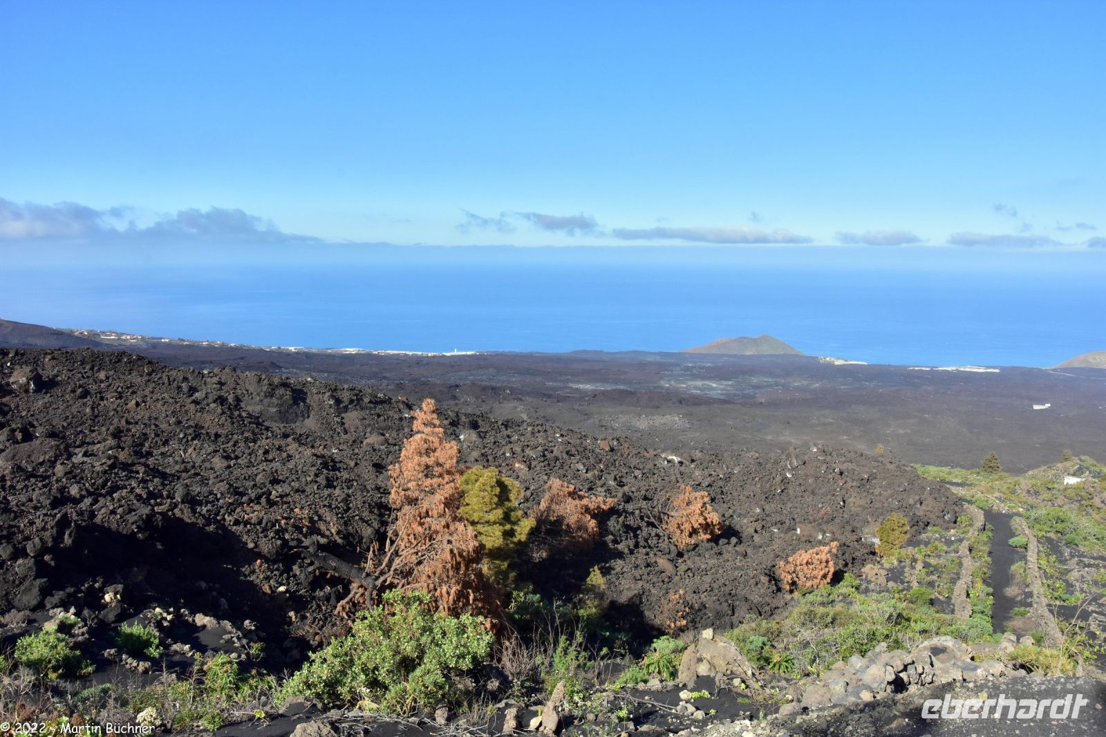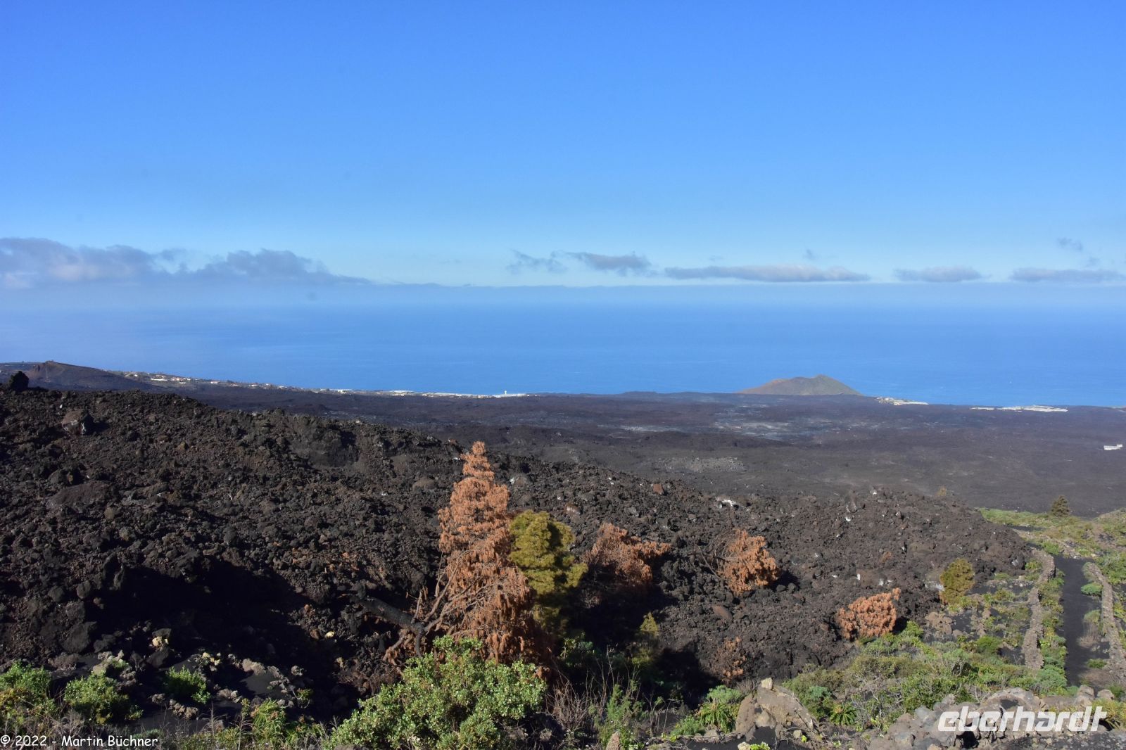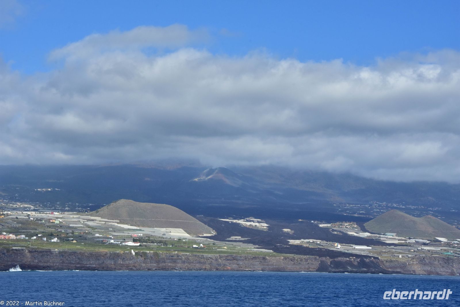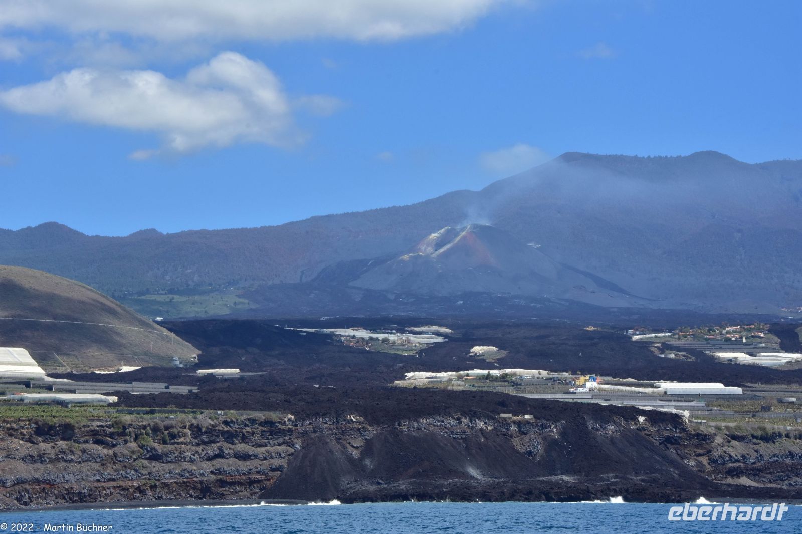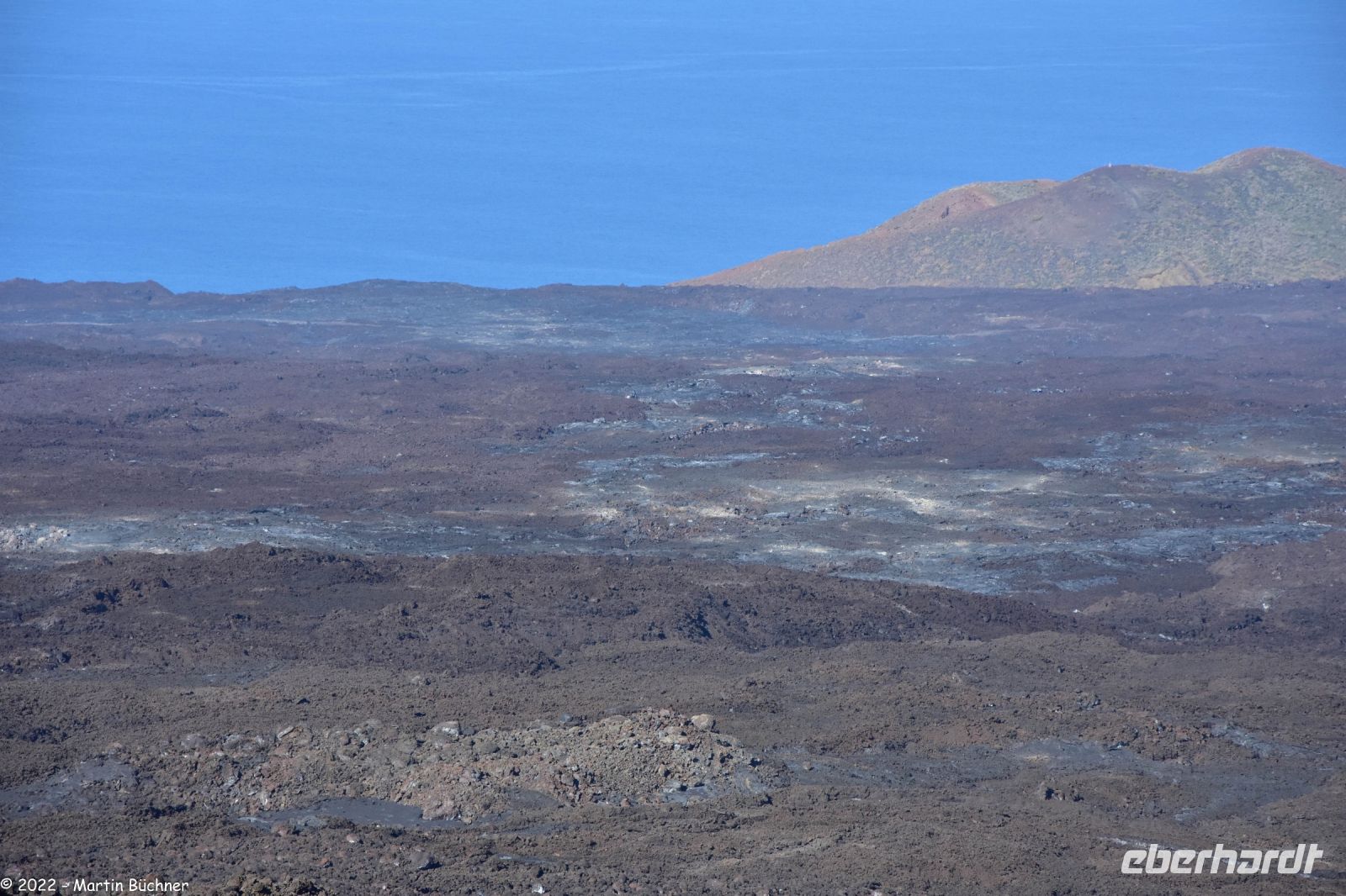 Dutzende Meter Mächtigkeit, 1.000 °C heiß und bis zu 3 km breit ergoss sich der Lavastrom vom neuen Vulkan (noch ohne Namen) bis hinunter zum Meer und begrub hunderte Haushalte für immer unter sich. Nach vier Monaten hat man in nur 30 cm Bodentiefe immer noch eine Temperatur von 400 °C.