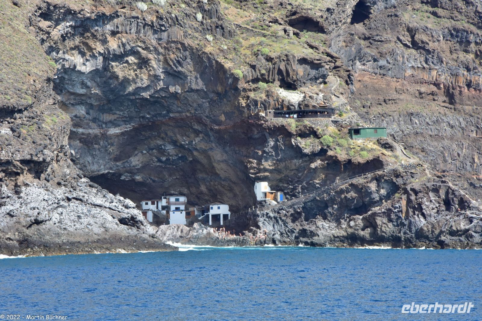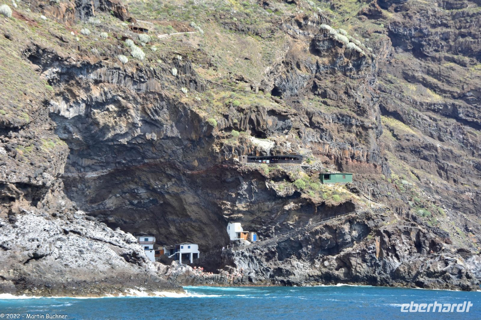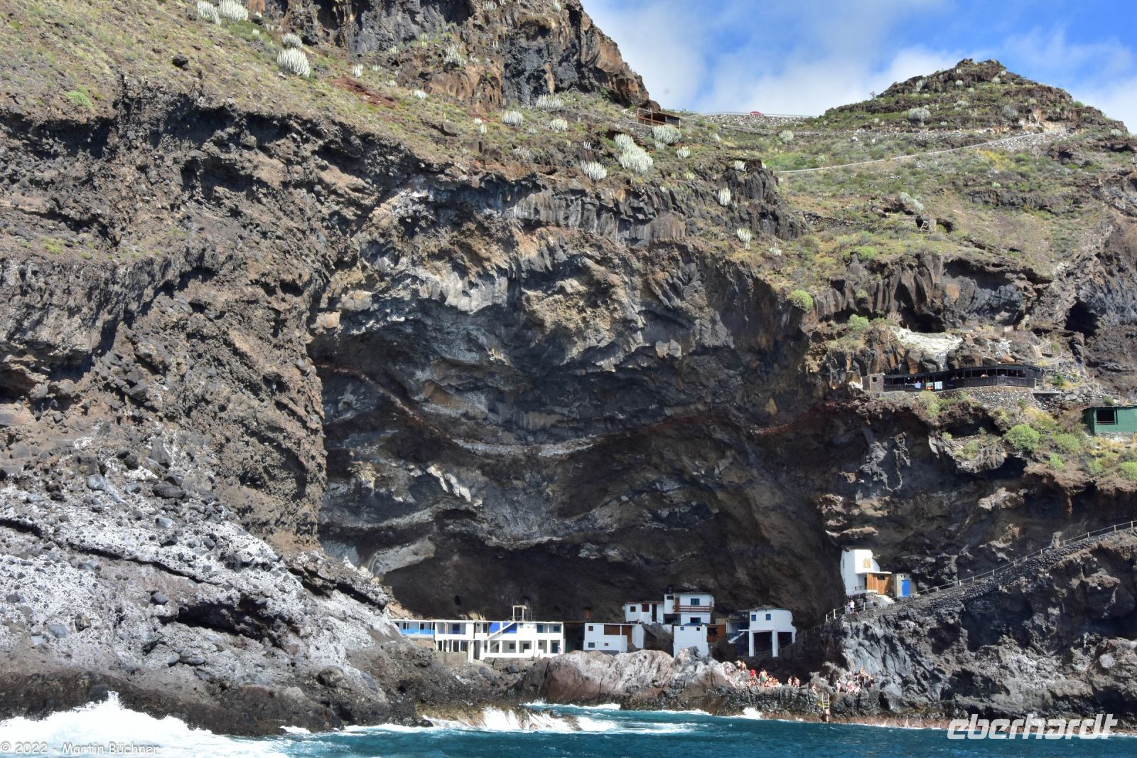 Die heutige Wanderung führt uns in den Nordwesten der Insel, deutlich trockner, da nahezu unberührt vom Passat. In der „Cueva de la Buracas“ finden sich Steinritzungen der Ureinwohner, die hier mutmaßlich sicher und versteckt mit reichlich Trinkwasser lebten. Woher sie stammten, wie sie herkamen, wie sie lebten liegt völlig im Dunkel der Geschichte. Archäologische Funde sind rar. Kurioserweise kannten sie bei Ankunft der Spanier im 15. Jh. weder Boote noch Schiffe. Es bleibt daher ein absolutes Rätsel wie sie auf die Inseln gelangen konnten.