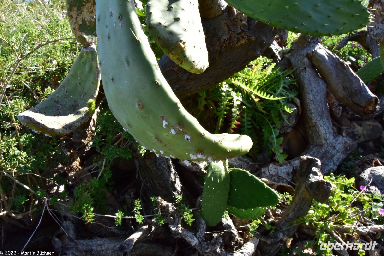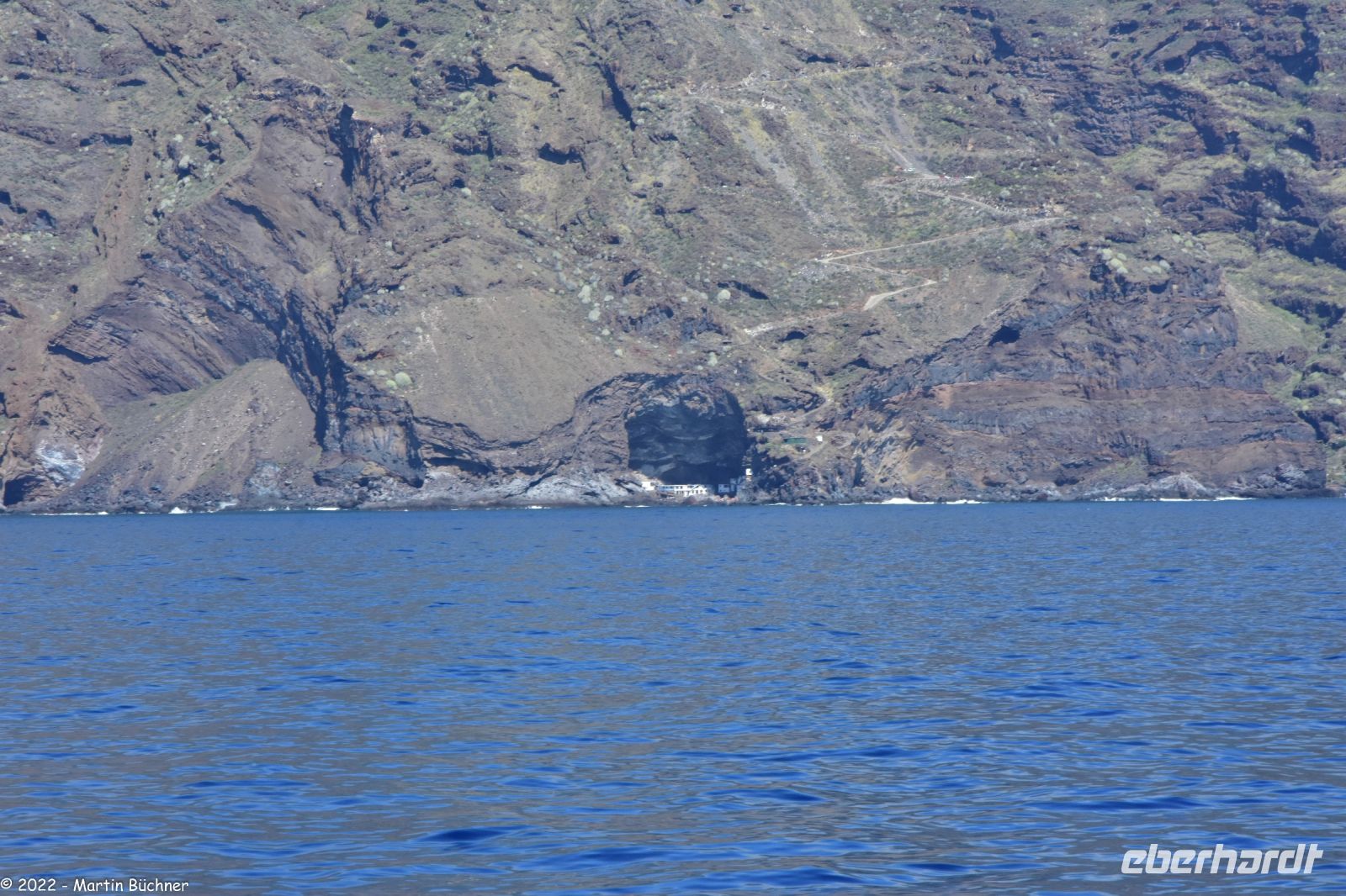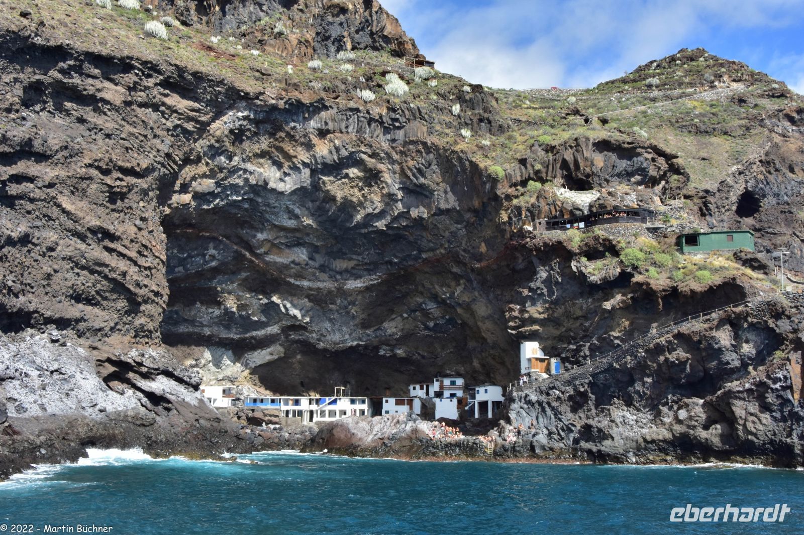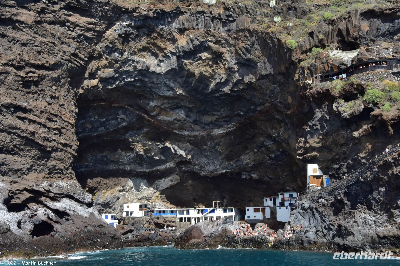 Die heutige Wanderung führt uns in den Nordwesten der Insel, deutlich trockner, da nahezu unberührt vom Passat. In der „Cueva de la Buracas“ finden sich Steinritzungen der Ureinwohner, die hier mutmaßlich sicher und versteckt mit reichlich Trinkwasser lebten. Woher sie stammten, wie sie herkamen, wie sie lebten liegt völlig im Dunkel der Geschichte. Archäologische Funde sind rar. Kurioserweise kannten sie bei Ankunft der Spanier im 15. Jh. weder Boote noch Schiffe. Es bleibt daher ein absolutes Rätsel wie sie auf die Inseln gelangen konnten.