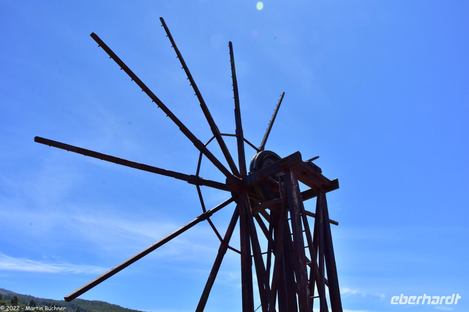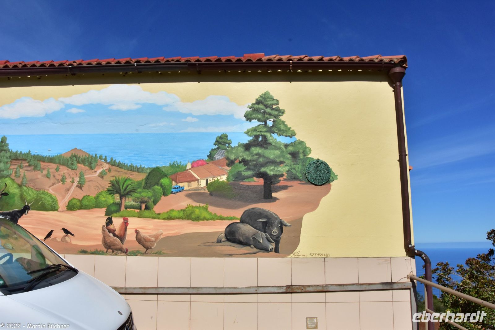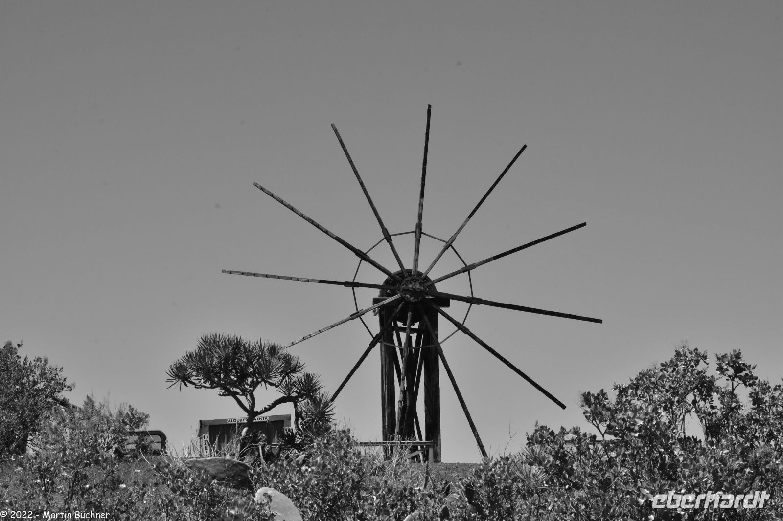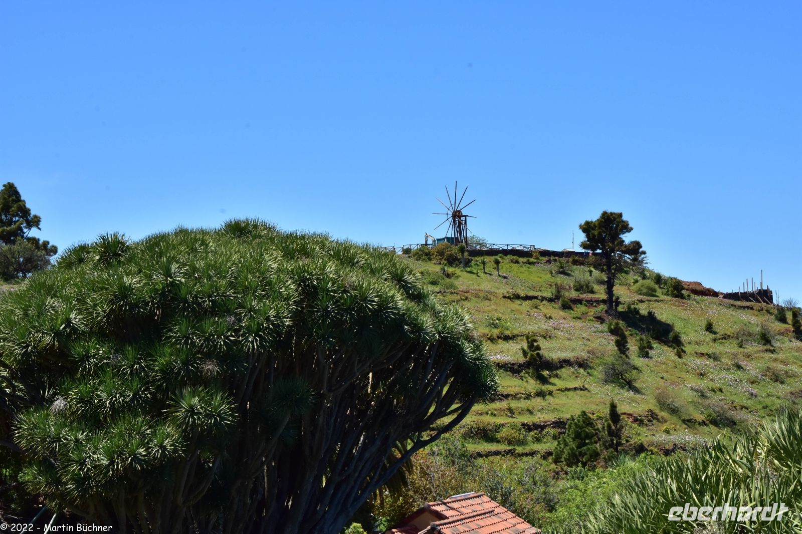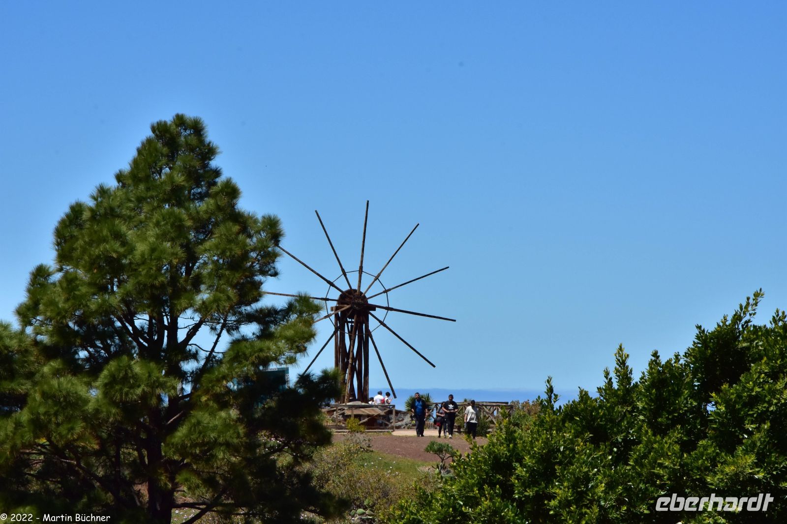 Ende ist einer der typischen Gofio-Windmühlen, genannt „Molino de Buracas“. Gofio ist eine kanarische Mehlmischung aus diversen Getreidearten, die auf den Kanaren zu vielen leckeren Speisen und Getränken verarbeitet werden.