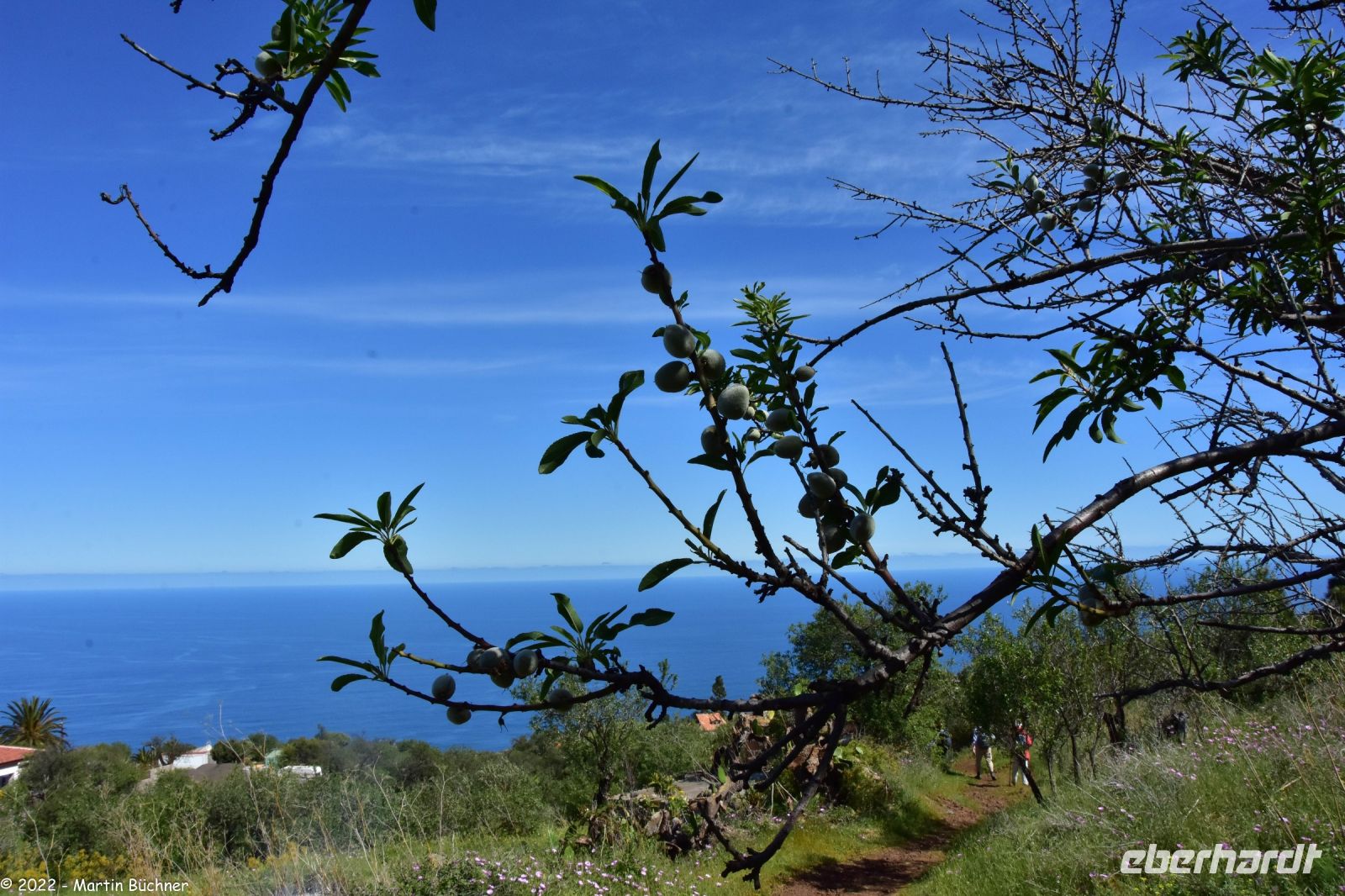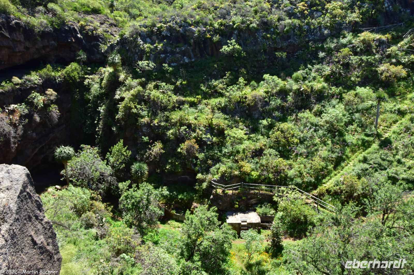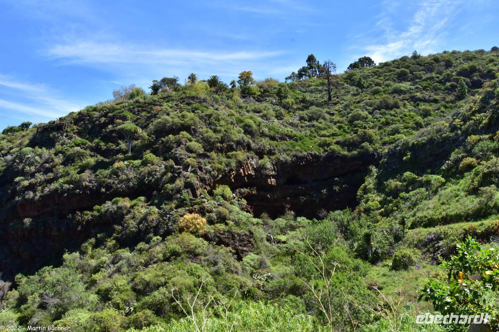 Später steigen wir hinab in eine enge felsige Schlucht. Unser Tagesziel ist der Mirador Ermita de San Bartolo. Hier befindet sich eine kleine Kapelle auf einem mächtigen Aussichtsplateau, dass einen weiten Blick über den Nordosten der Insel freigibt. Ebenso liegt hier eine lokale Bar, in der wir uns landestypisch stärken können, abseits von großen Touristenströmen.