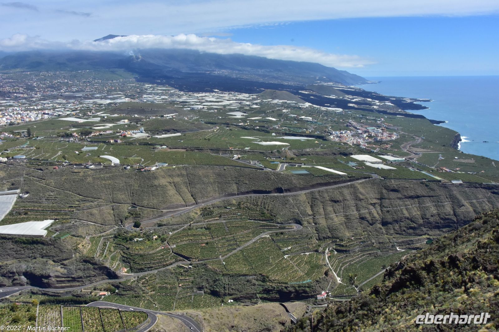 Am Nachmittag folgen wir der Straße LP-3 zum ersten Mal auf die Westseite der Insel. Der schmale Gebirgskamm Cumbre Vieja wird von zwei Straßentunneln durchquert.