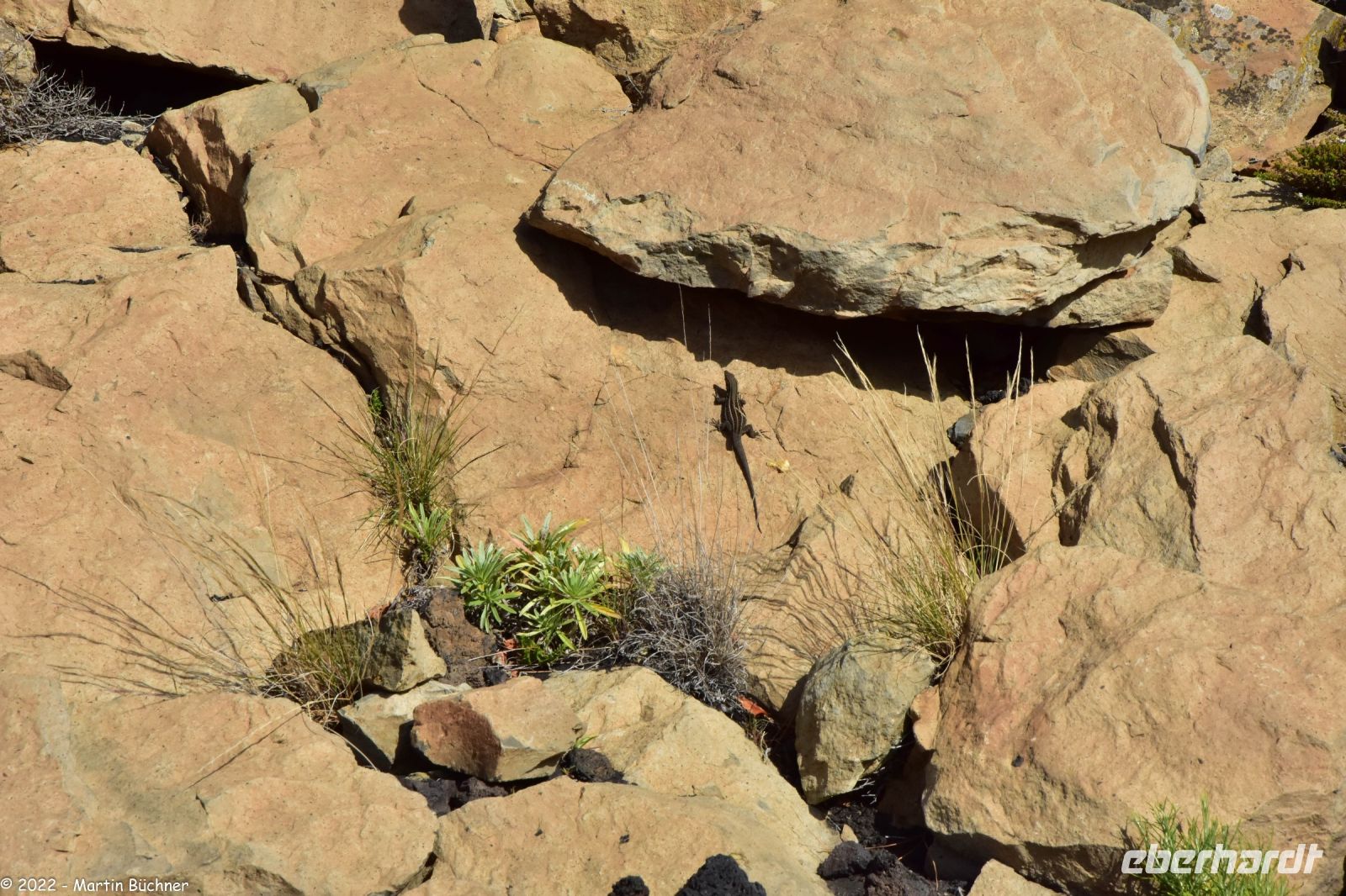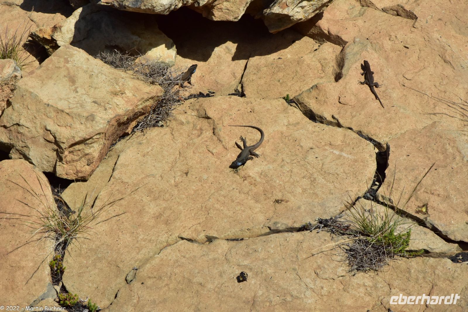 Oberhalb der Pinienwälder verwandelt sich die Landschaft in eine lebendige Steinwüste. Felsen und niedrige Pflanzen, die nicht viel Wasser benötigen dominieren das Bild. Tiere gibt es weniger, meist Echsen, wenige Insekten und einige Vögel.