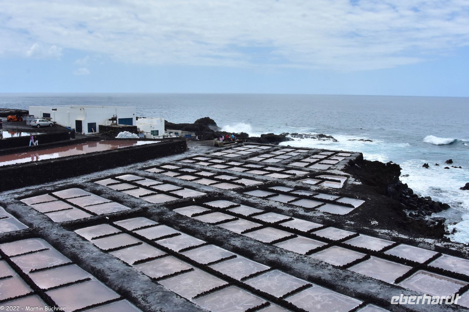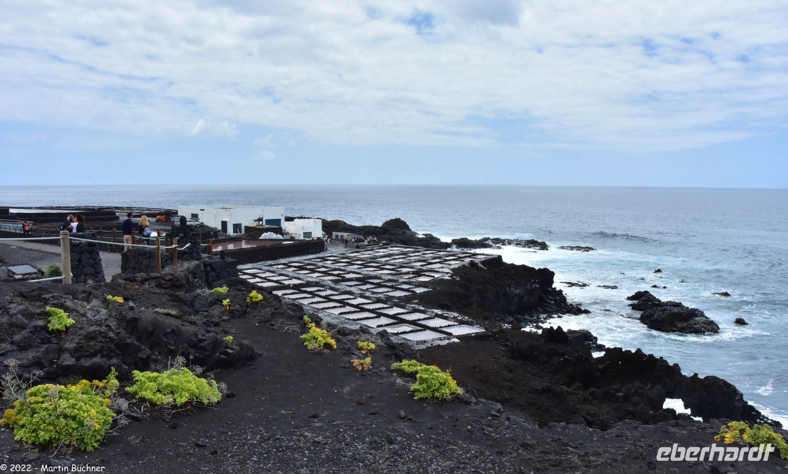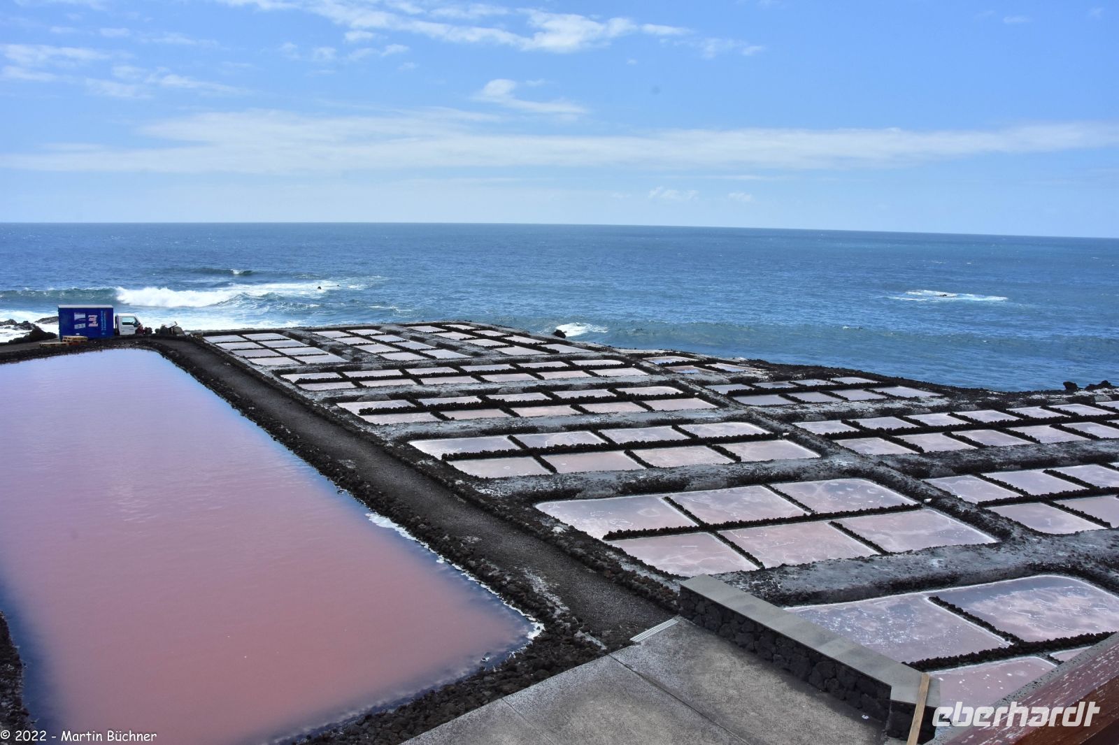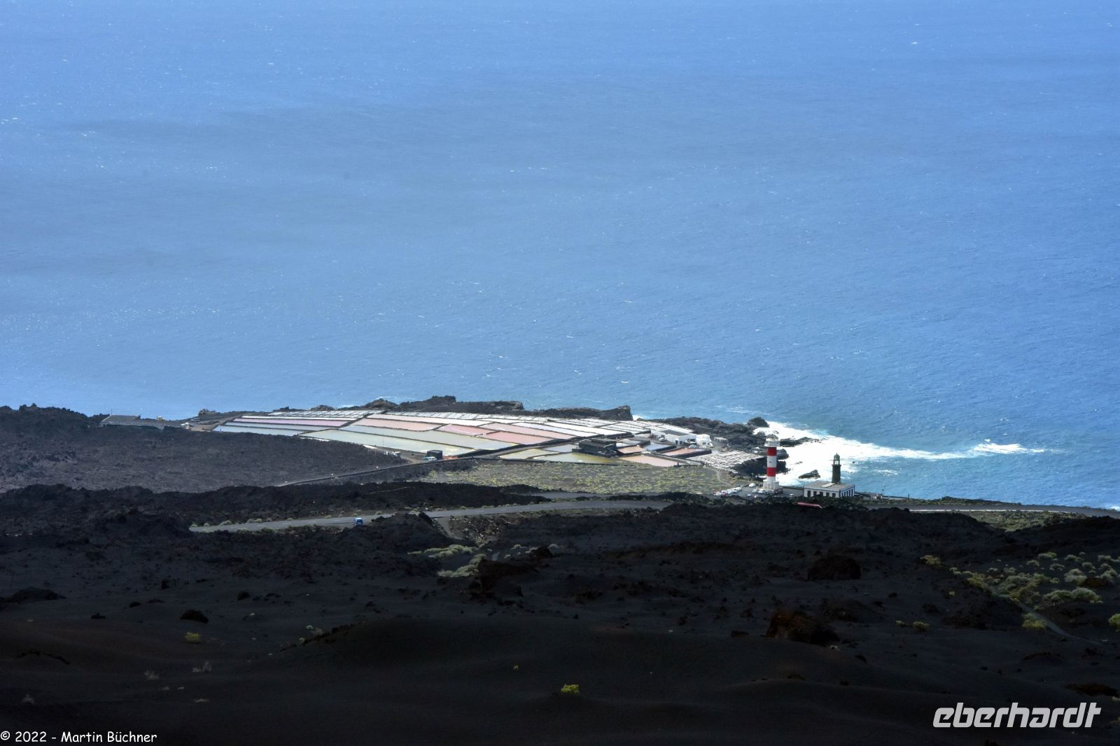 Die wenige Jahr zuvor errichteten Salinen blieben, wie durch ein Wunder verschont. Hier wird reinstes Meersalz und die Krone des Salzes „Fleur de Sal“ produziert. Bedingt durch den Vulkanausbruch dominieren hier noch die bunten Lavafelder, die bisher nur von einigen wenigen Pionierpflanzen zurückerobert wurden. Die Landschaft gleicht einer Marslandschaft.