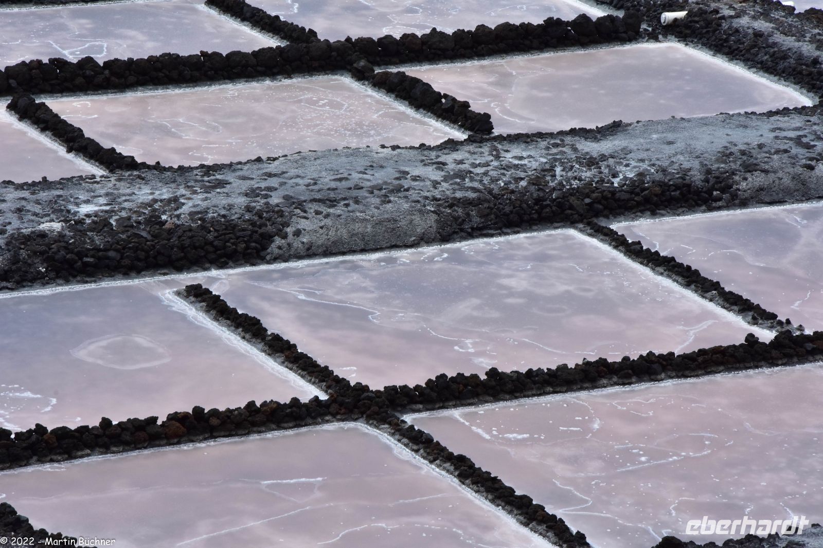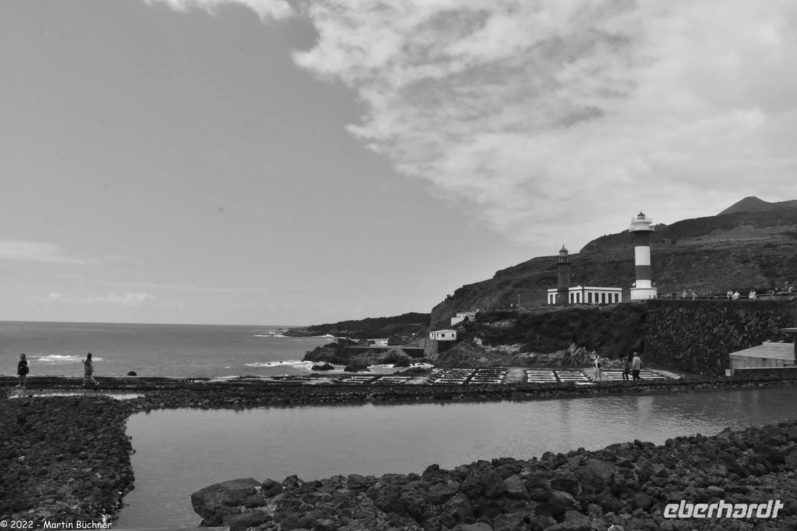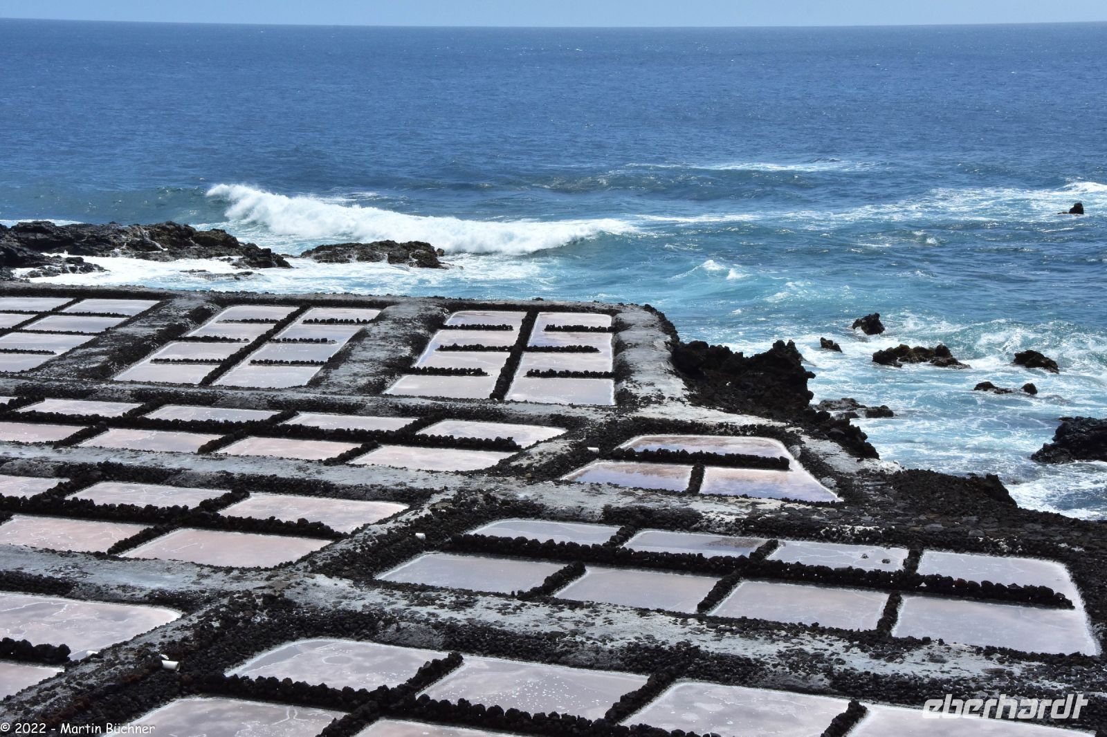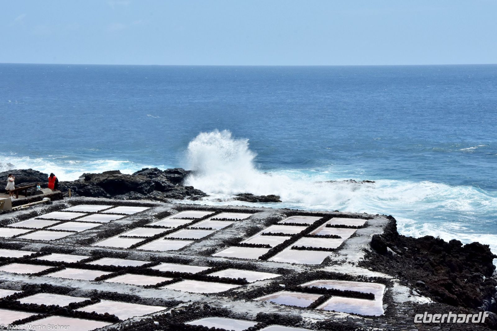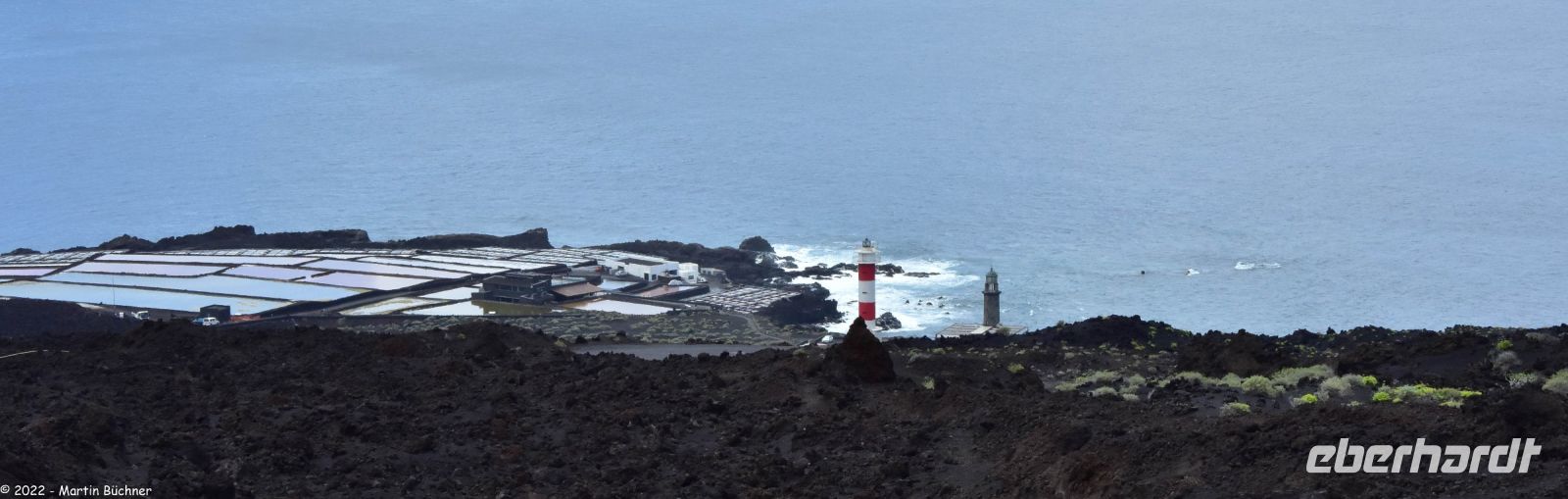 Die wenige Jahr zuvor errichteten Salinen blieben, wie durch ein Wunder verschont. Hier wird reinstes Meersalz und die Krone des Salzes „Fleur de Sal“ produziert. Bedingt durch den Vulkanausbruch dominieren hier noch die bunten Lavafelder, die bisher nur von einigen wenigen Pionierpflanzen zurückerobert wurden. Die Landschaft gleicht einer Marslandschaft.