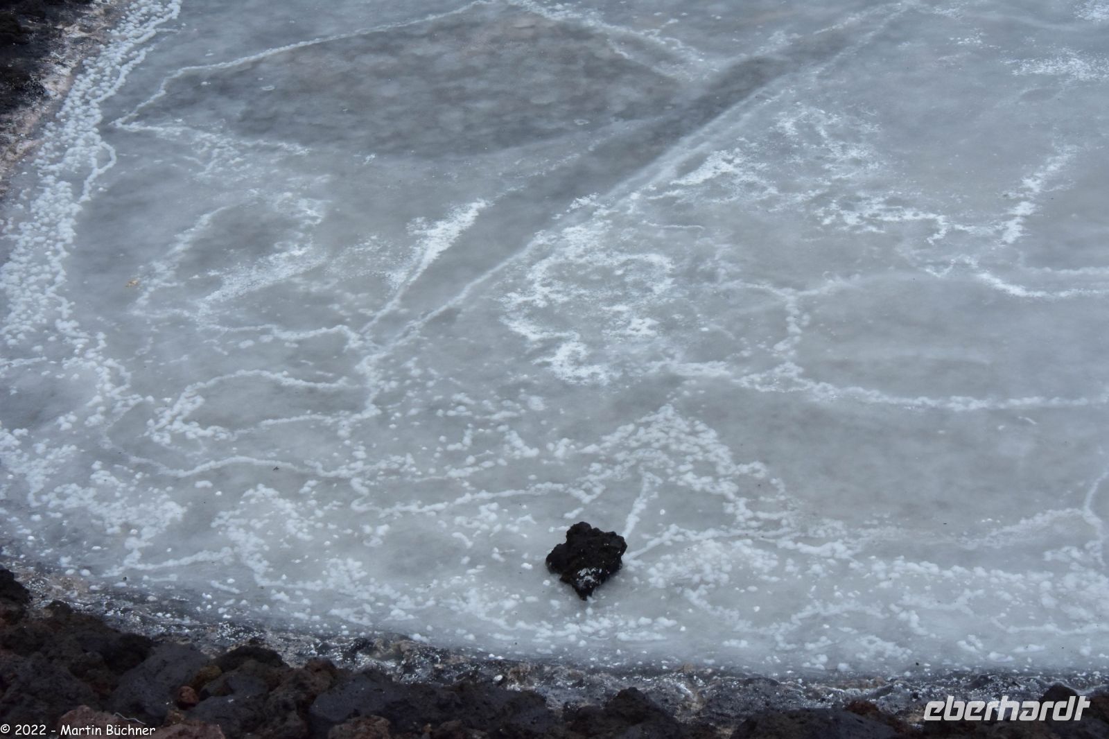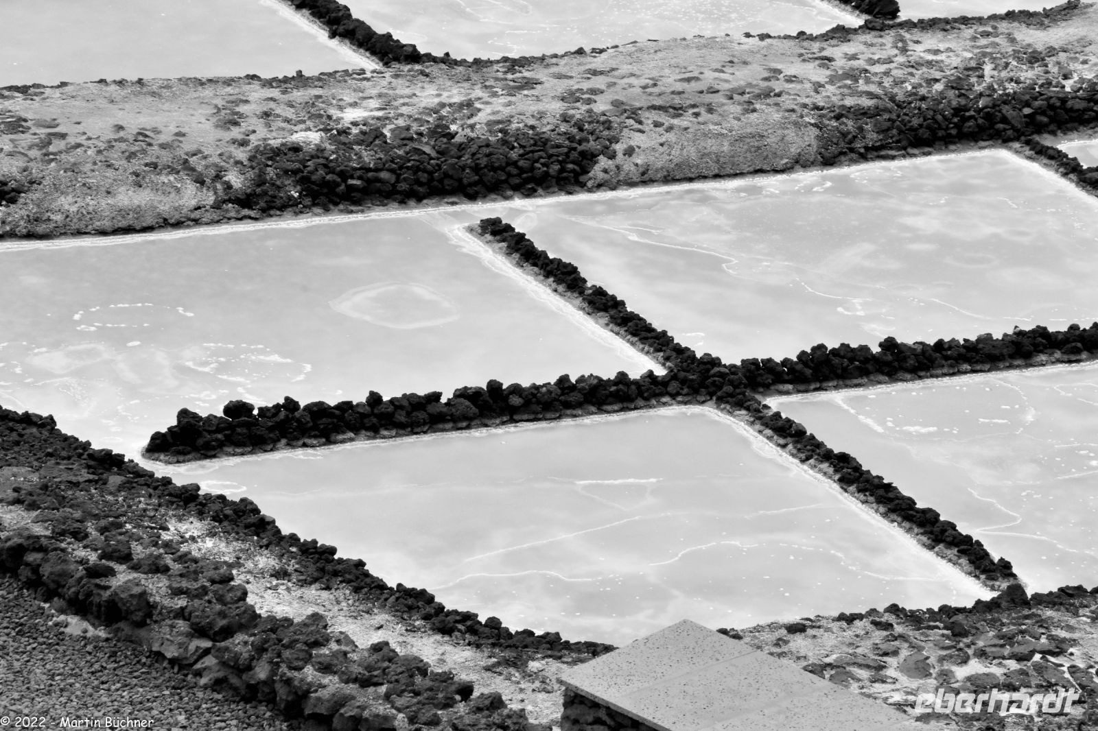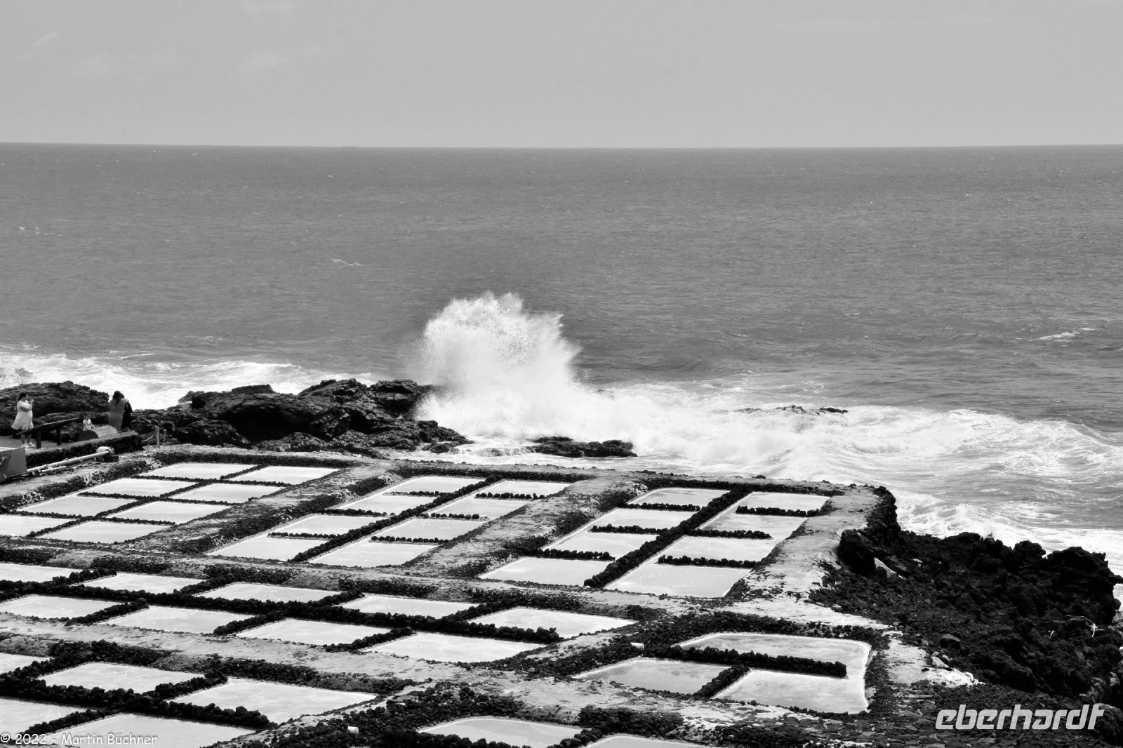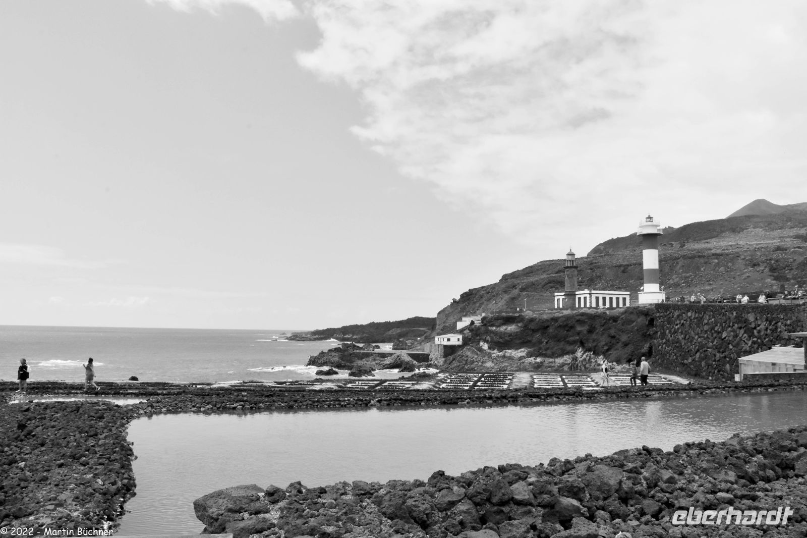 Die wenige Jahr zuvor errichteten Salinen blieben, wie durch ein Wunder verschont. Hier wird reinstes Meersalz und die Krone des Salzes „Fleur de Sal“ produziert. Bedingt durch den Vulkanausbruch dominieren hier noch die bunten Lavafelder, die bisher nur von einigen wenigen Pionierpflanzen zurückerobert wurden. Die Landschaft gleicht einer Marslandschaft.