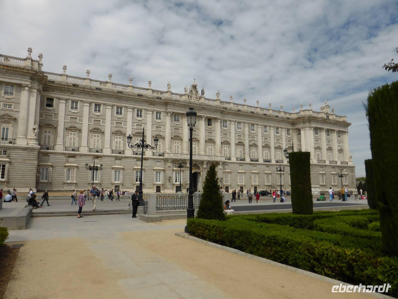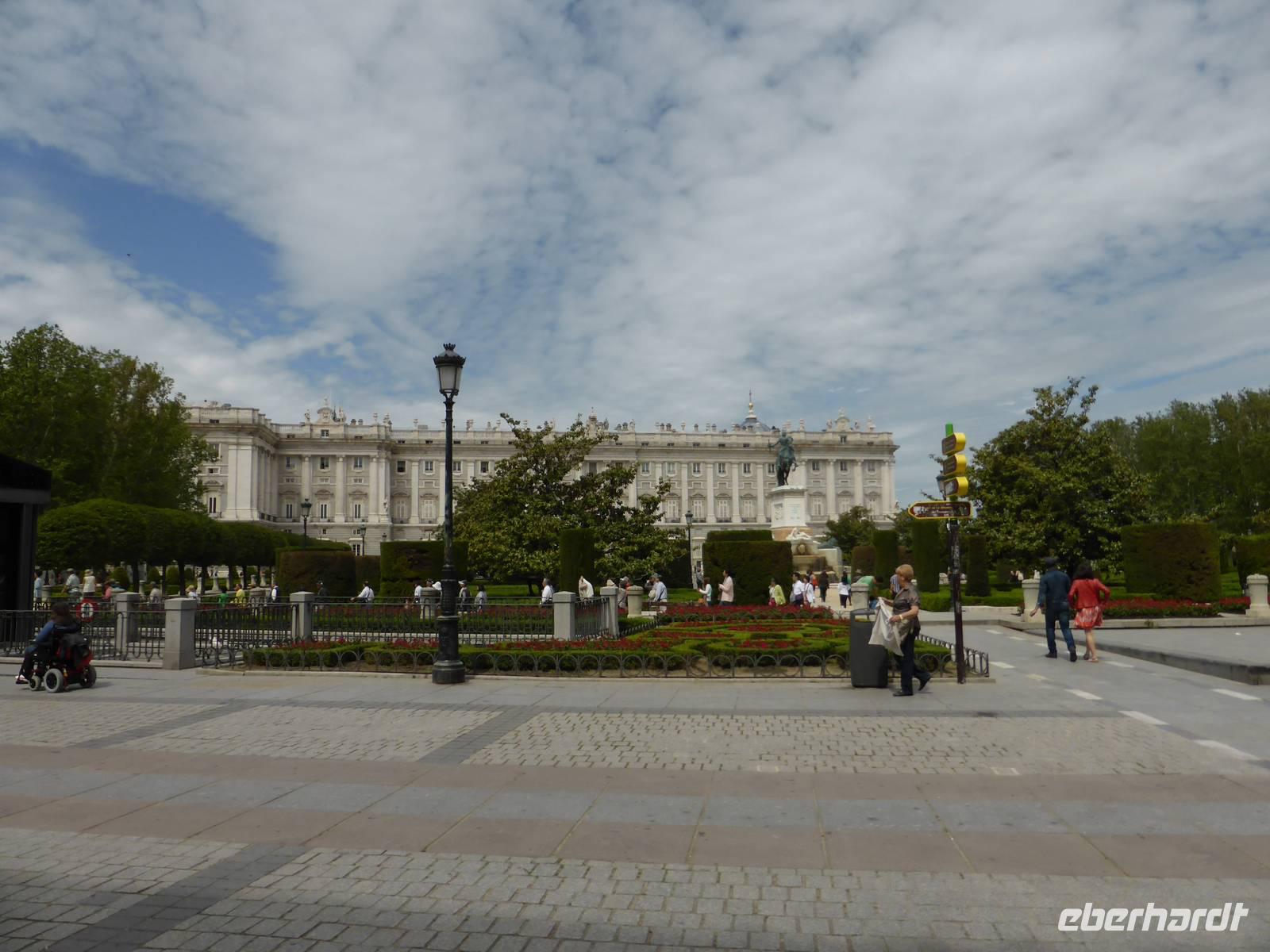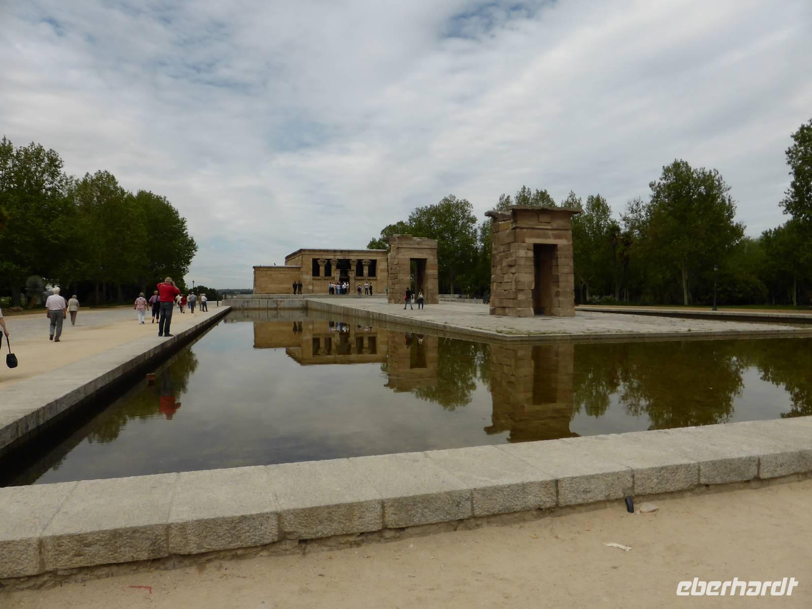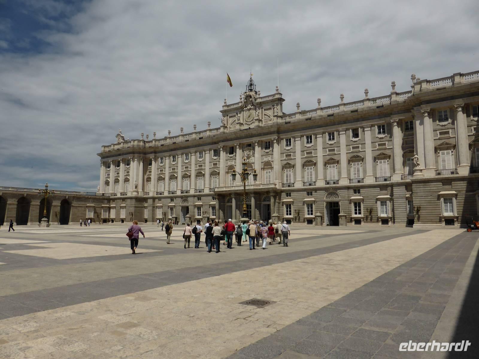 Der ganze Tag war für Madrid reserviert. Unsere örtliche Stadtführerin Rosario holte uns zur Stadtrundfahrt mit dem Bus vom Hotel ab. Während der dreieinhalb-stündigen Rundfahrt sahen wir die wichtigsten Sehenswürdigkeiten der spanischen Metropole und legten an der Stierkampfarena, am Atocha-Bahnhof und am Tempel des Debot Fotostopps ein. Anschließend stiegen wir am Plaza de Oriente aus, suchten uns ein hübsches Lokal für das Mittagessen aus und besuchten anschließend das königliche Schloss, den Palacio Real. Es war Philipp II., der ab 1561 den alten maurischen Alcàzar zum Regierungssitz um- und ausbaute und den Regierungssitz von Toledo nach Madrid verlegte. Besonders eindrucksvoll waren die Wohnräume Karls des III., das Porzellanzimmer und der mit rotem Samt verkleidete Thronsaal. Nach der Besichtigung des königlichen Schlosses war für den Rest des Tages Freizeit für eigene Entdeckungen vorgesehen. Am Abend trafen wir uns dann vor dem Restaurant „El Anciano de Rey" zum gemeinsamen Abendessen.