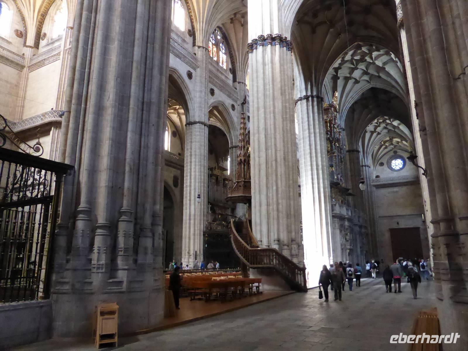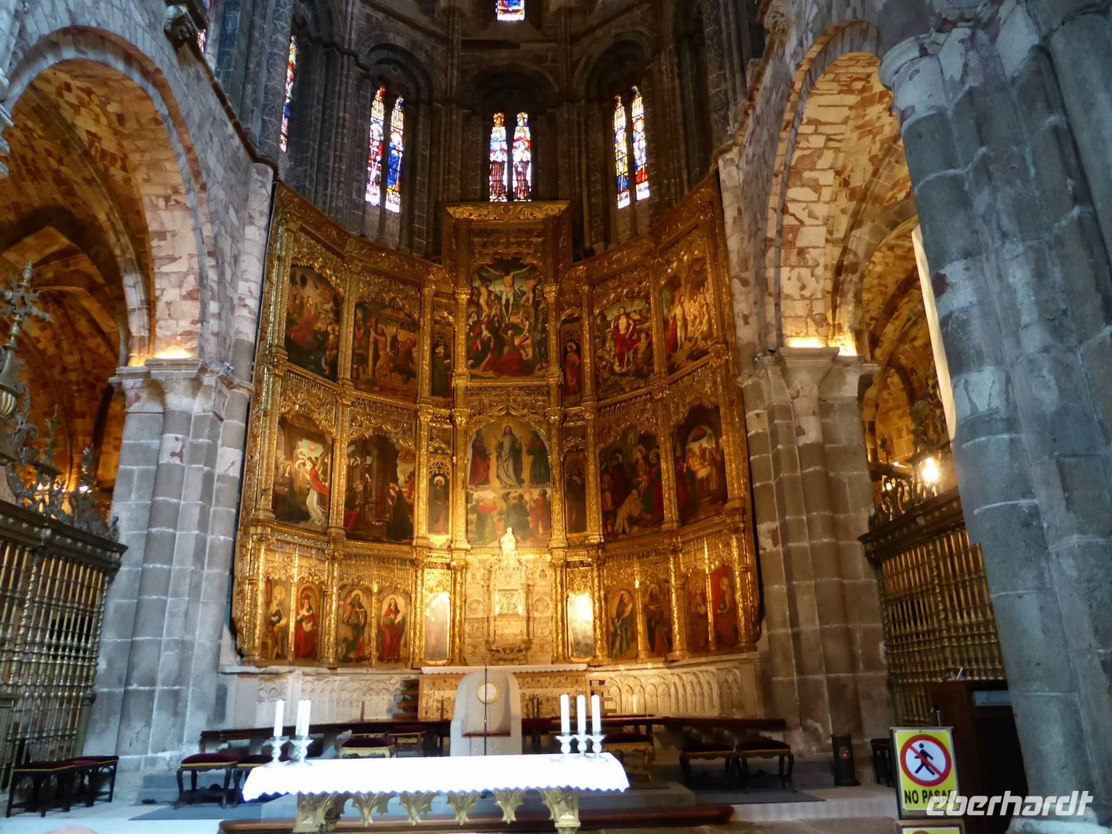 In Salamanca befindet sich die älteste Universitätsstadt Spaniens und die zahlreichen Baudenkmäler der Stadt machen sie zu einem der beliebtesten Reiseziele Spaniens. Die Altstadt wurde ausnahmslos aus dem goldgelben Sandstein aus Villamayor errichtet. An der Römerbrücke am Rio Tormes wurden wir von unserem örtlichen Reiseleiter Marc begrüßt. Als erstes besichtigten wir die alt-ehrwürdigen Universitätsgebäude, in denen auch schon Miguel Cervantes studiert hatte. Beeindruckend waren die alten Hörsäle mit ihren schlichten Holzbänken. Das Schreiben stand damals nicht im Vordergrund, viel wichtiger war das genaue Zuhören und Auswendiglernen. Gleich neben der Universität steht die Kathedrale, welche wir anschließend besuchten. Die Kathedrale besteht aus dem Kirchengebäude der Alten Kathedrale mit dem Kreuzgang und aus dem Kirchengebäude der Neuen Kathedrale. In der romanischen Alten Kathedrale ist das Rentabel mit Darstellungen aus der Geschichte Christi von herausragender Bedeutung. Ebenso eindrucksvoll sind die Seitenschiffe und die Wandgräber, welche mit farbigen Fresken ausgemalt sind. Die neue Kathedrale fasziniert weniger durch ihre Farbigkeit als durch die Ausmaße des spätgotischen Bauwerkes. Von der Kathedrale spazierten wir zum Casa de las Conchas, dem Muschelhaus, in dem heute die Universitätsbibliothek untergebracht ist. Seinen Namen erhielt das Haus aufgrund der Jakobs-Muschel-Darstellungen an der Außenfassade. Den Abschluss unseres Stadtrundganges bildete die Besichtigung des Plaza Mayor, an dem wir uns auch von unserem Stadtführer Marc verabschiedeten, um unsere wohlverdiente Mittagspause anzutreten. Am Nachmittag fuhren wir von Salamanca in das 1130 m hoch gelegene Àvila. Die Stadt ist seit der christlichen Rückeroberung im 11.Jahrhundert von einer gewaltigen, 12 Meter hohen Mauer umgeben. Dieses eindrucksvolle Stadtbild erschloss sich uns am besten vom Aussichtspunkt Cruz de los Cuatro Postes, einer kleinen offenen Kapelle auf der anderen Seite des Rio Adaja. In Àvila besuchten wir als erstes die Kathedrale, welche ihren wehrhaften Charakter nicht verbergen kann und spazierten anschließend zum Convento Santa Teresa, dem Geburtsort der Heiligen Theresa von Àvila. Sie ist die bedeutendste spanischen Nationalheilige und Gründerin des Ordens der barfüßigen Karmeliterinnen. Von Àvila aus fuhren wir auf direktem Wege nach Madrid zurück, wo wir im Hotel zum Abendessen erwartet wurden.