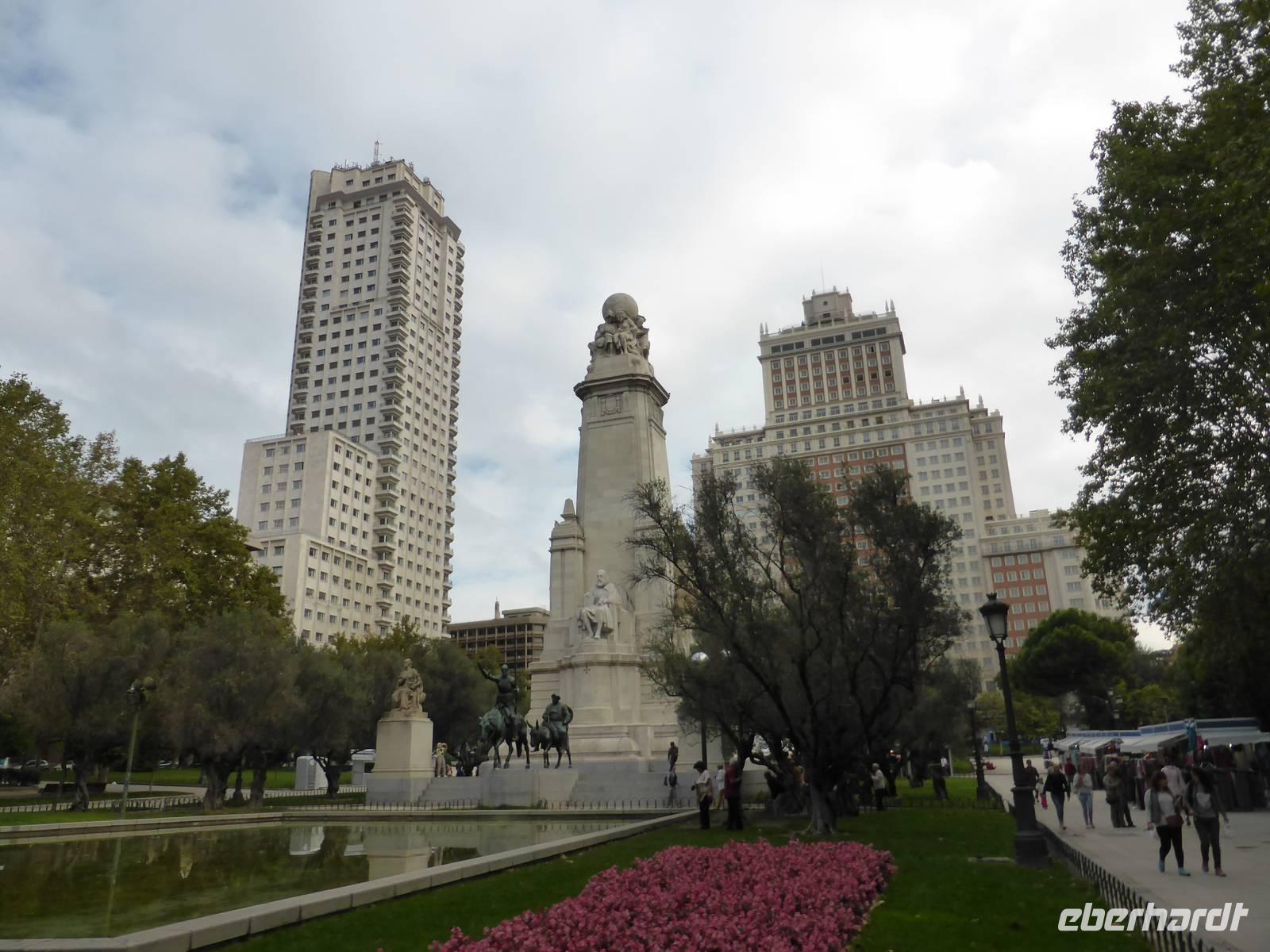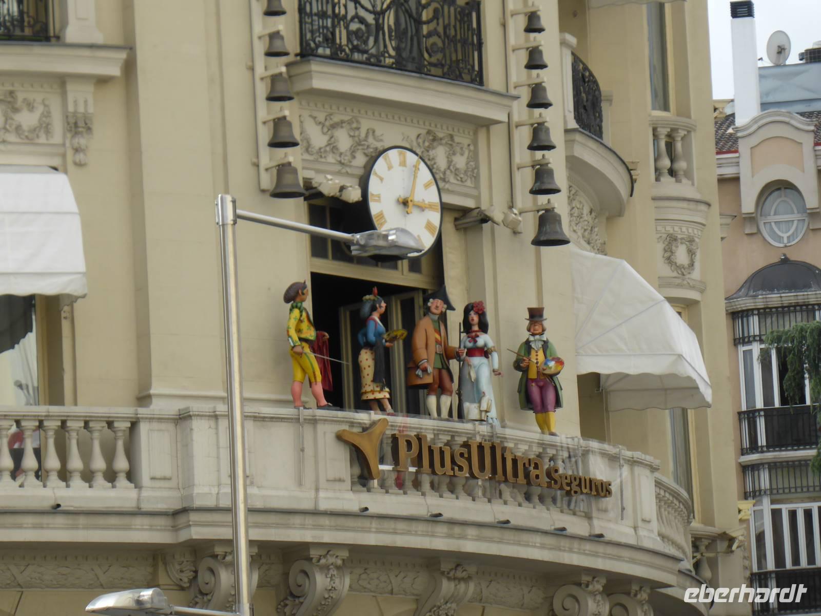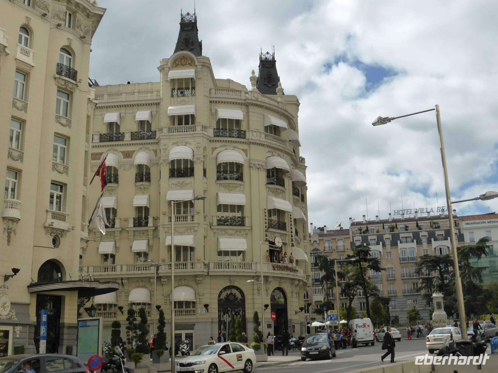 Unsere Reise begann mit der pünktlichen Abholung durch die Transferunternehmen. Da wir bereits durch die Mitarbeiter des Eberhardt-Travel- Reisebüros online eingecheckt worden waren, brauchten wir am Flughafen lediglich unser Gepäck aufgeben. Nach der Ankunft der Lufthansa-Zubringerflüge war unsere Reisegruppe auf dem Rhein-Main-Airport in Frankfurt schon fast komplett. Auch der Flug nach Madrid startete pünktlich. An Bord gab es ein warmes Essen und Getränke. Nach der Landung nahmen wir im Terminal 3 unser Gepäck entgegen und fuhren mit dem Bus zum Terminal 4, wo ein weiterer Reisegast unserer Gruppe bereits wartete. Anschließend ging es zu unserem Hotel ins Zentrum Madrids. Das Hotel Ganivet liegt 10 Minuten vom Hauptplatz Plaza Mayor entfernt und ist für Erkundungen der Altstadt die ideale Ausgangsposition. Nach dem Zimmerbezug trafen wir uns an der Rezeption und gingen gemeinsam zur Tourist-Information am Plaza Mayor und zum Puerta de Sol, dem Mittelpunkt des hauptstädtischen Lebens. Hier fotografierten wir den Erdbeerbaum und den Bären, beide vertreten im Madrider Stadtwappen. Der Erdbeerbaum soll den Klerus und der Bär den Adel symbolisieren. Klerus und Adel hatten sich im Mittelalter in Eintracht das Land aufgeteilt. In der Metro-Station konnten wir uns gleich am ersten Tag mit dem Fahrkartenkauf und dem Haltestellensystem anfreunden. Das Metrofahren wird dem Benutzer in Madrid leicht gemacht. Unser Abendessen nahmen wir an diesem ersten Abend in unserem Hotel ein.