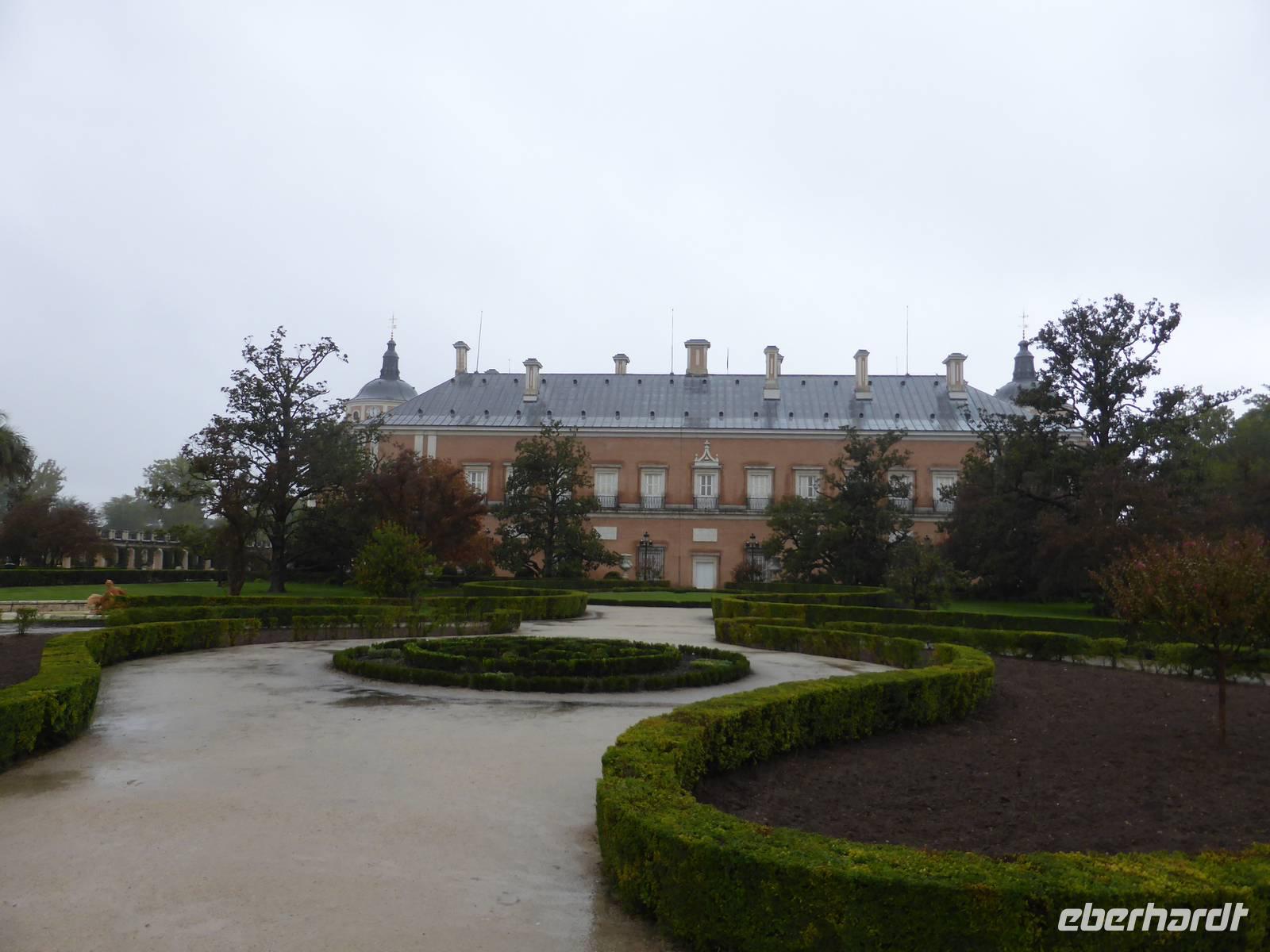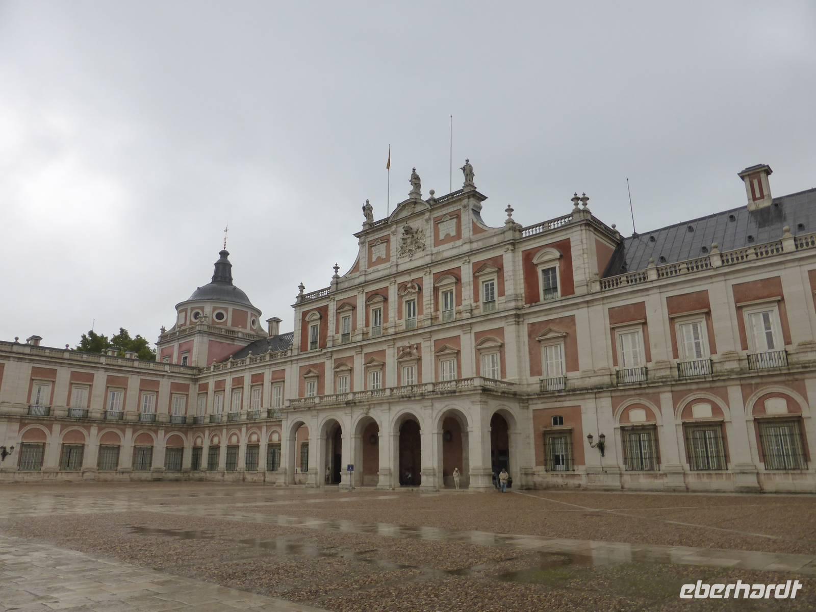Am Morgen fuhren wir nach Aranjuez, der königlichen Sommerresidenz der spanischen Könige. Die Temperaturen in Aranjuez waren zwar warm, aber es regnete. Die Besichtigung des Palacio Real, des königlichen Palastes, dauerte eine knappe Stunde. Mit den Audioguides konnte sich jeder von uns frei im Schloss bewegen und über die einzelnen Räume informieren. Auch hier waren, wie im Palacio Real in Madrid, der Thronsaal und der Porzellansaal die beeindruckendsten Palastsäle. Nach der Besichtigung der Innenräume besuchten wir kurz die Gärten von Aranjuez, den Jardin de la Isla (den Garten der Insel) und den großen Garten vor der Palastanlage mit seinen Wasserbecken und Statuen (Jardin de las Estatuas). Ein längerer Spaziergang war bei dem Regen einfach nicht drin. Von Aranjuez aus fuhren wir nach Toledo, wo endlich die Sonne schien.