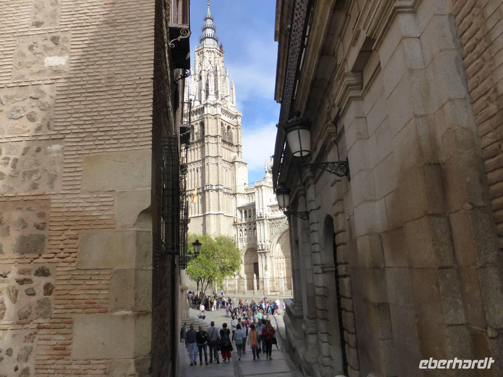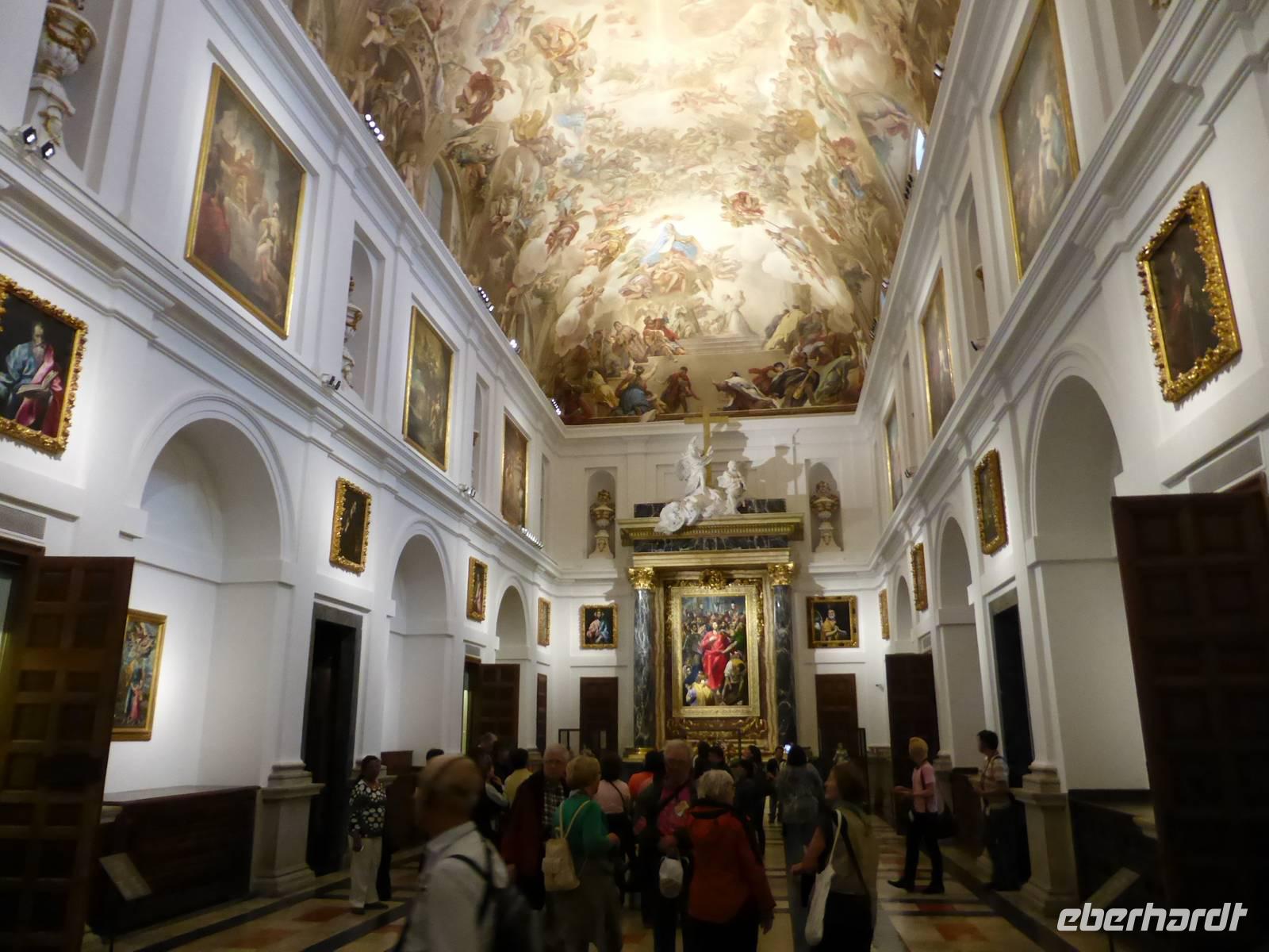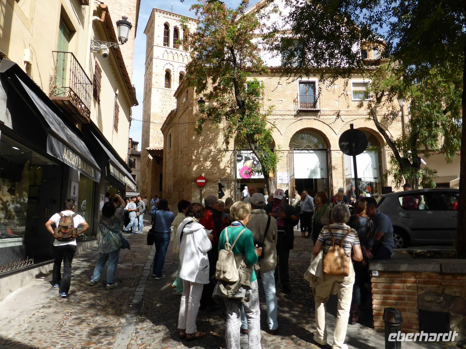 Unsere Besichtigung Toledos begann mit der Fahrt zum Aussichtspunkt auf der Südseite des Rio Tajo. Von diesem hochgelegenen Punkt gelangen uns die schönsten Aufnahmen der Stadt. Anschließend fuhren wir zur Stadtmauer und von dort mit der Rolltreppe in die Altstadt hinauf. Andres, unser örtlicher Stadtführer, versetzte uns mit seinen Erzählungen und Gedanken in eine andere Zeit zurück. Er war sehr nett und sprach in gebrochenen Deutsch, aber seine Aussprache erforderte von allen eine hohe Aufmerksamkeit. Unser Spaziergang führte zum San Juan-Kloster und zur ehemaligen Synagoge, heute „Museo Transito" genannt. Der Höhepunkt war die Besichtigung der Kathedrale, besonders der Besuch der Sakristei mit den Gemälden berühmter Maler wie El Greco, Francisco de Goya oder Raffael. Von der Kathedrale aus spazierten wir zum Zocodover-Platz, wo wir unseren Stadtrundgang beendeten und im Anschluss noch etwas Freizeit für eigene Erkundungen hatten. Anschließend fuhren wir von Toledo nach Madrid zurück. Das Abendessen nahmen wir in der Sidreria „Vinoteca Maestro Villa" ein. Es wurde ein schöner Abschluss des Tages!