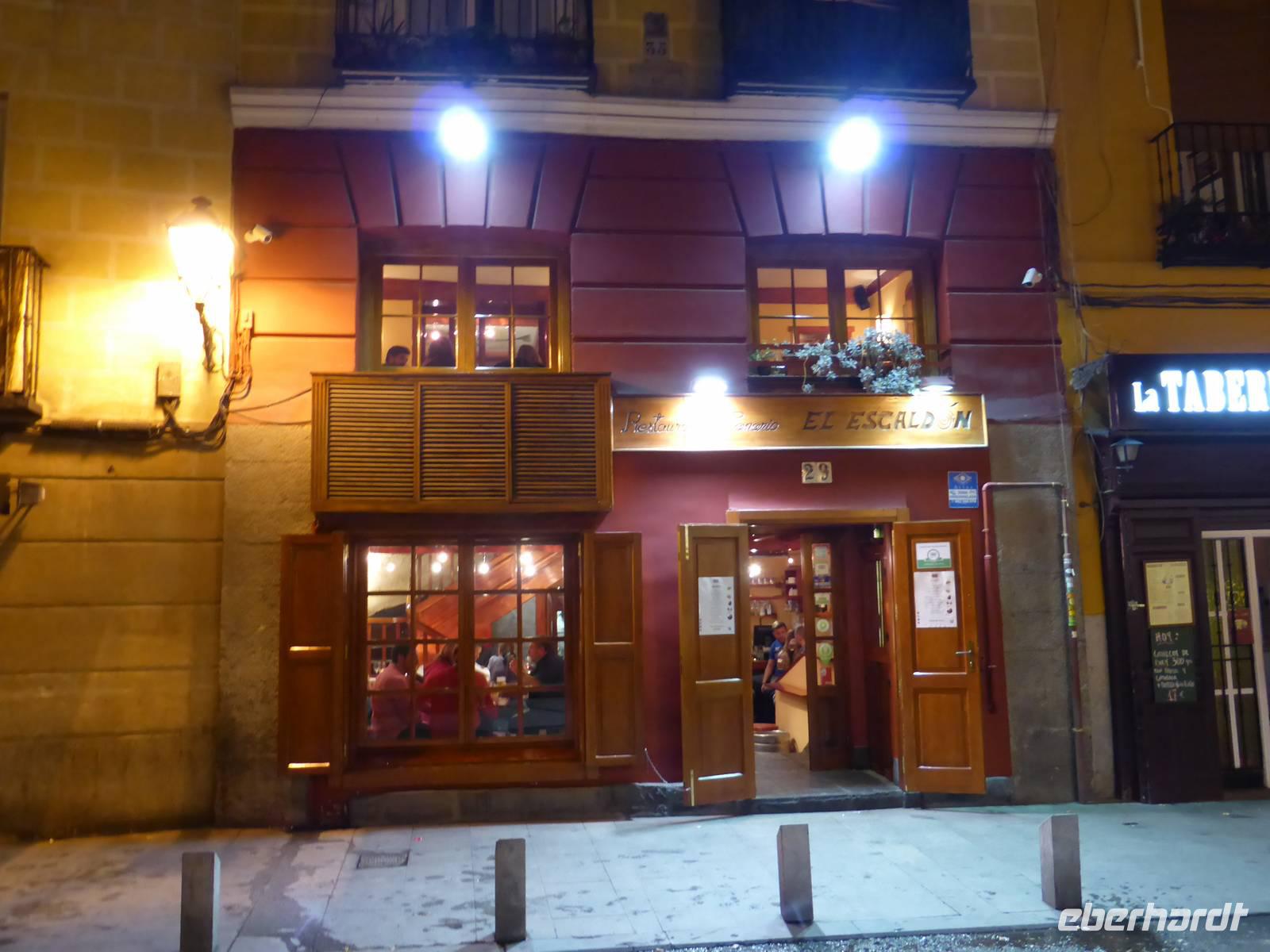 Am Morgen wurden wir von unserem Busfahrer Oscar zum Ausflug nach Segovia abgeholt. In Segovia haben sich Baudenkmäler aus fast 2000 jähriger Geschichte erhalten. Fasziniert standen wir vor dem römischen Aquädukt, welches bis in die 70er Jahre des 20. Jahrhunderts zur Wasserversorgung der Stadt beitrug. Von der gleichen Stelle aus könnte auch Kaiser Trajan das Aquädukt betrachtet haben. Unser örtlicher Reiseleiter Marc empfing uns an der Tourist-Information und wir spazierten mit ihm zum Plaza de San Martin, in dessen Mittelpunkt ein Denkmal des Comunero-Kämpfers Juan Bravo steht. Von dort gelangten wir zum Plaza Mayor und zur Kathedrale Segovias. Ihr gelber Sandstein verleiht ihr ein freundliches Äußeres und in ihrem Inneren beeindrucken die gewaltigen, tragenden Säulen. Es regnete und so waren wir froh, die folgende Zeit im Trockenen zu stehen und dabei weiterhin Marcs Erläuterungen zu verfolgen. Von der Kathedrale liefen wir anschließend zum Alcàzar, welcher am Ende der Altstadt auf einem Felsvorsprung steht. Der Alcàzar genannte königliche Palast wurde im 11. Jahrhundert auf den Grundmauern einer arabischen Festung erbaut und im 15. und 16. Jh. prächtig ausgestattet. Hier heirateten Philipp II. von Spanien und Anna von Österreich. Nach dem Besuch des Alcàzars war Zeit für die Mittagspause und individuelle Besichtigungen. Einige gingen zur Kirche San Esteban, in der im Jahre 1474 Isabella zur Königin von Kastilien-Lèon gekrönt wurde. Von Segovia aus fuhren wir am Nachmittag nach La Granja de San Ildefonso, der Residenzanlage des Bourbonen-Königs Philip V.. Einzigartig sind vor allem die Parkanlagen, die in ihren Ausmaßen sogar die von Versailles übertreffen. Nach unserem Aufenthalt in den Schloßgärten fuhren wir nach Madrid zurück. Am Abend gingen wir wieder gemeinsam zu Abendessen aus. Dieses Mal besuchten wir die urige Cantina "La Traviesa". Es gab deftige Kost und zum Abschluss einen Trester- Schnaps zur Verdauung.