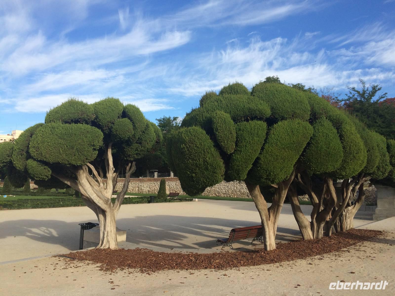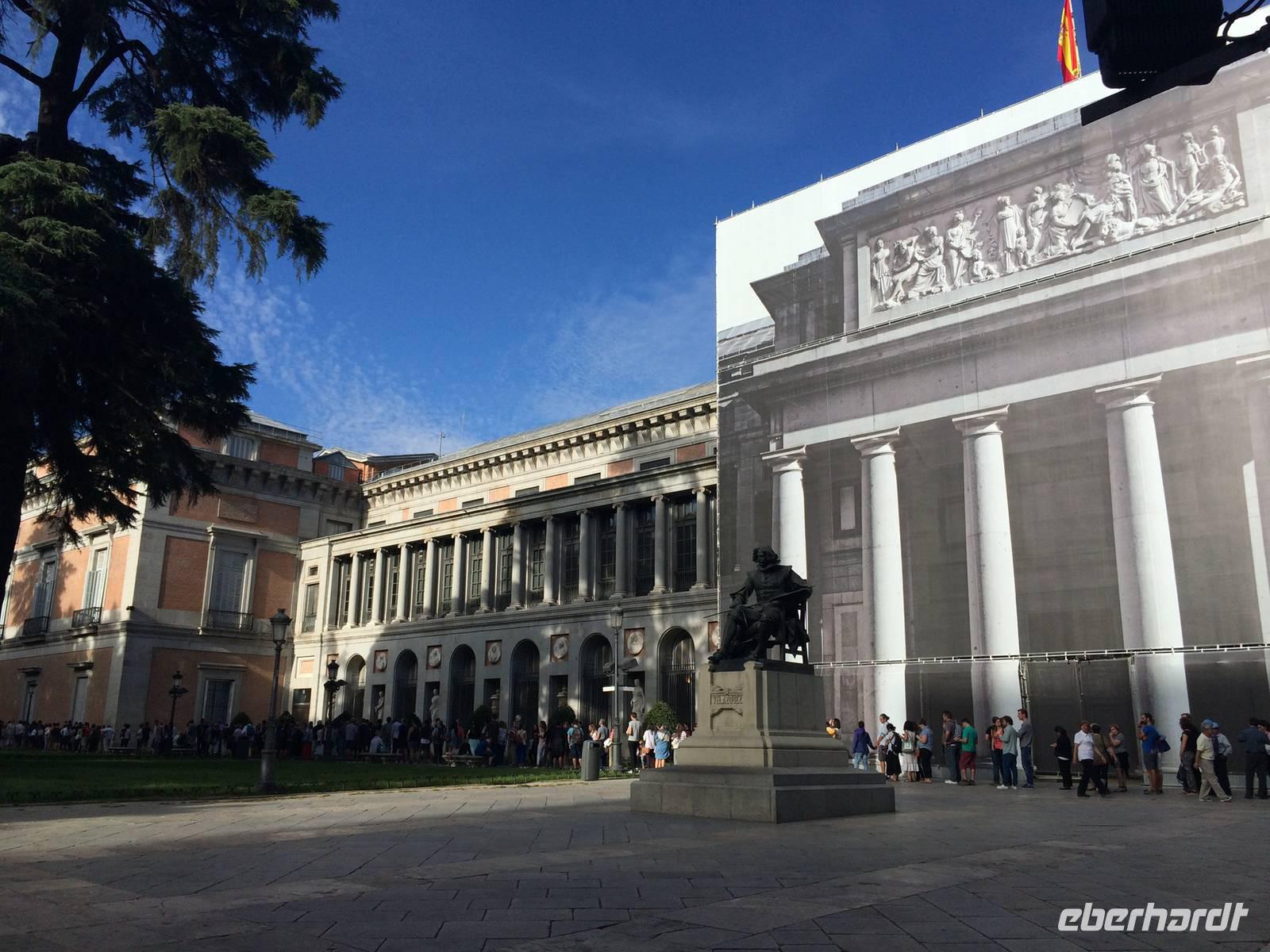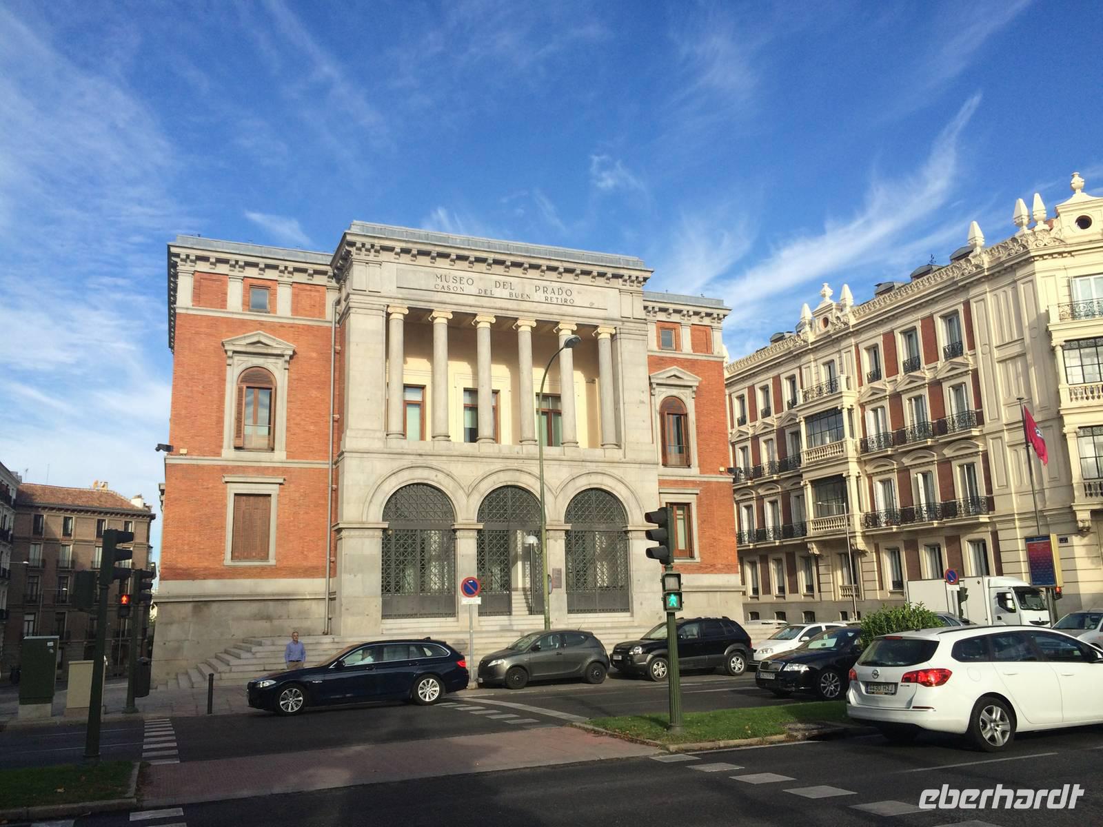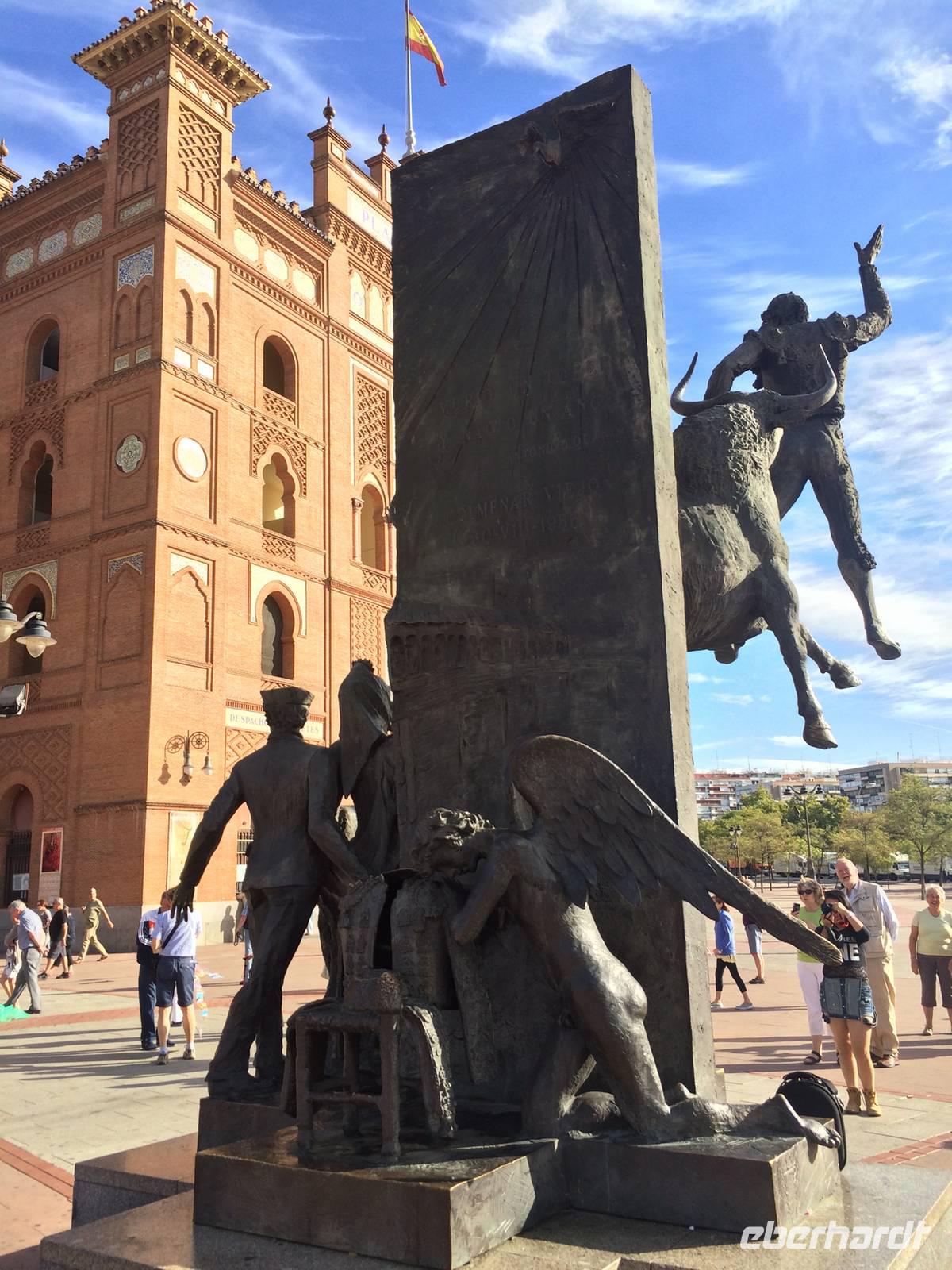 Als erstes inspizieren wir den Parque del Retiro am Passeo de Prado. Der Park ging aus den Schlossanlagen des Königs Philipp II hervor, die später weiter gestaltet und erweitert wurden. Nach der Zerstörung während den napoleonischen Kriegen wurde das Schloss nicht wieder erichtet, aber uns blebit heute eine besonders schöne grüne Lunge von Madrid. Die 125 Hektar können wir nicht an dem Tag ablaufen, aber einige Eindrücke gewinnen von den 15.000 Bäumen wie ausgefallen zugeschnittene Zypressen und riesen Pinien. Weiter geht es zum Stierkampfarena Monumental de Las Ventas, die im Jahre 1931 eingeweiht wurde und fast 24.000 Zuschauer beherbergen kann und somit die größte Stierkampfarena der Welt. Der Festplatz hat einen Durchmesser von 60 Metern. In Neomudejarstil vereint sie verschiedene Elemente der Romantik, Renaissance und Gothik mit Elementen aus der islamischen Architektur wie riesige Hufeisenbögen, die Verwendung von roten Backsteinen und handbemalten Kacheln. - Ein wahrlich imposantes Gebäude! Das komplette Gegenteil ist das Fußballstadion Santiago Bernabéu, in dem Real Madrid trainiert und das über 80.000 Zuschauer bei den Spielen mitfeuern lässt. Auf der Siegerliste stehen viele europäische und internationale Titel.