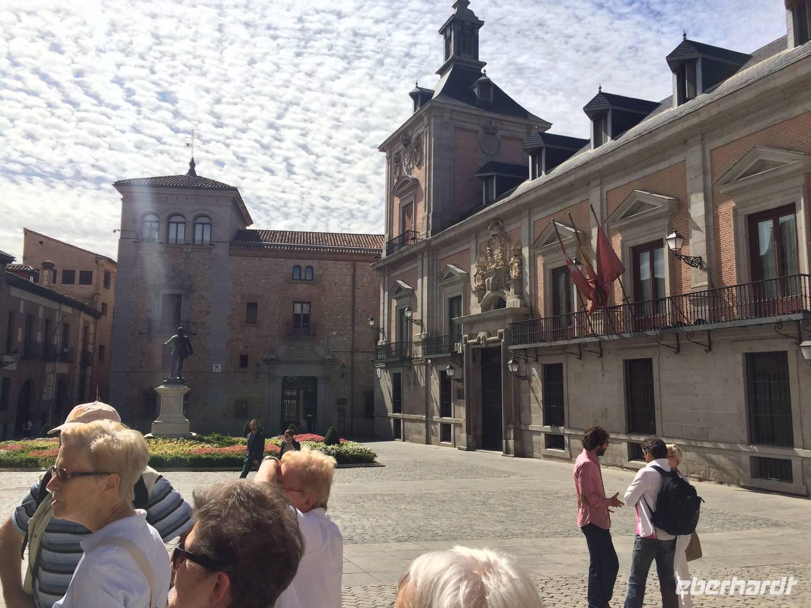 Weiterhin spazieren wir am Marcado de San Miguel vorbei, stöbern durch die vielen Leckerein bis zum Plaza Mayor. Das Herz des Habsburger Madrids ist umsäumt mit Kolonaden, deren barocke Fresken und verzierten Balkone unsere Augen fesseln. Im 15. Jahrhundert, als der Hof von Philipp II. nach Madrid zog, war er der Platz der Volksfeste, Theateraufführungen, Seligsprechungen, Krönungen und Stierkämpfe aber gar auch Hinrichtungen.