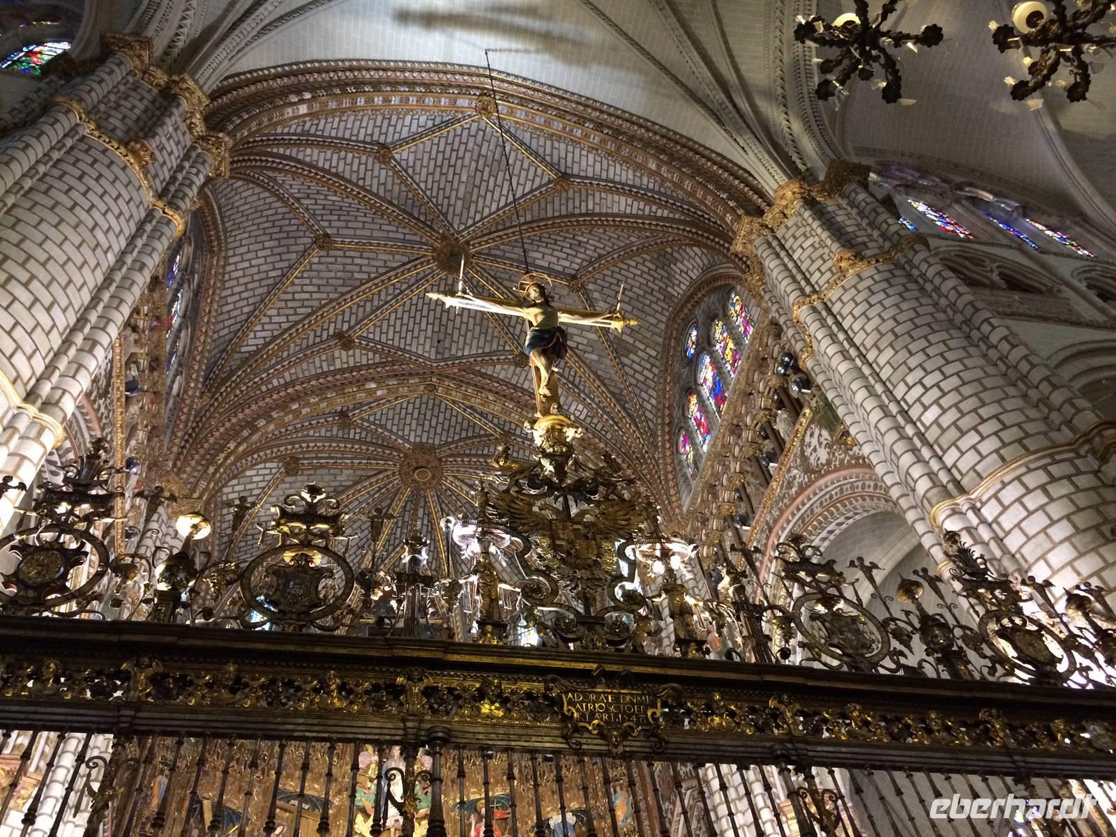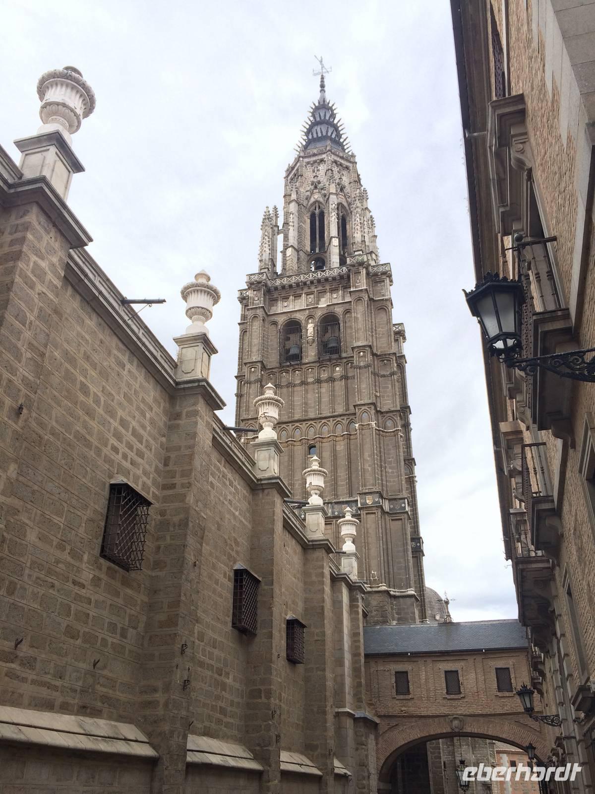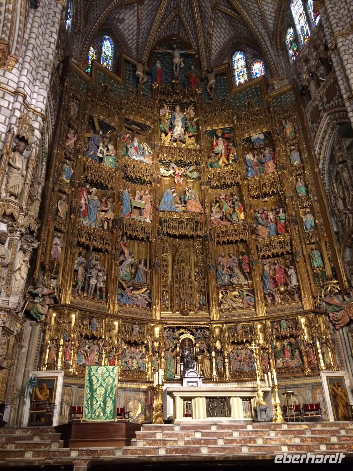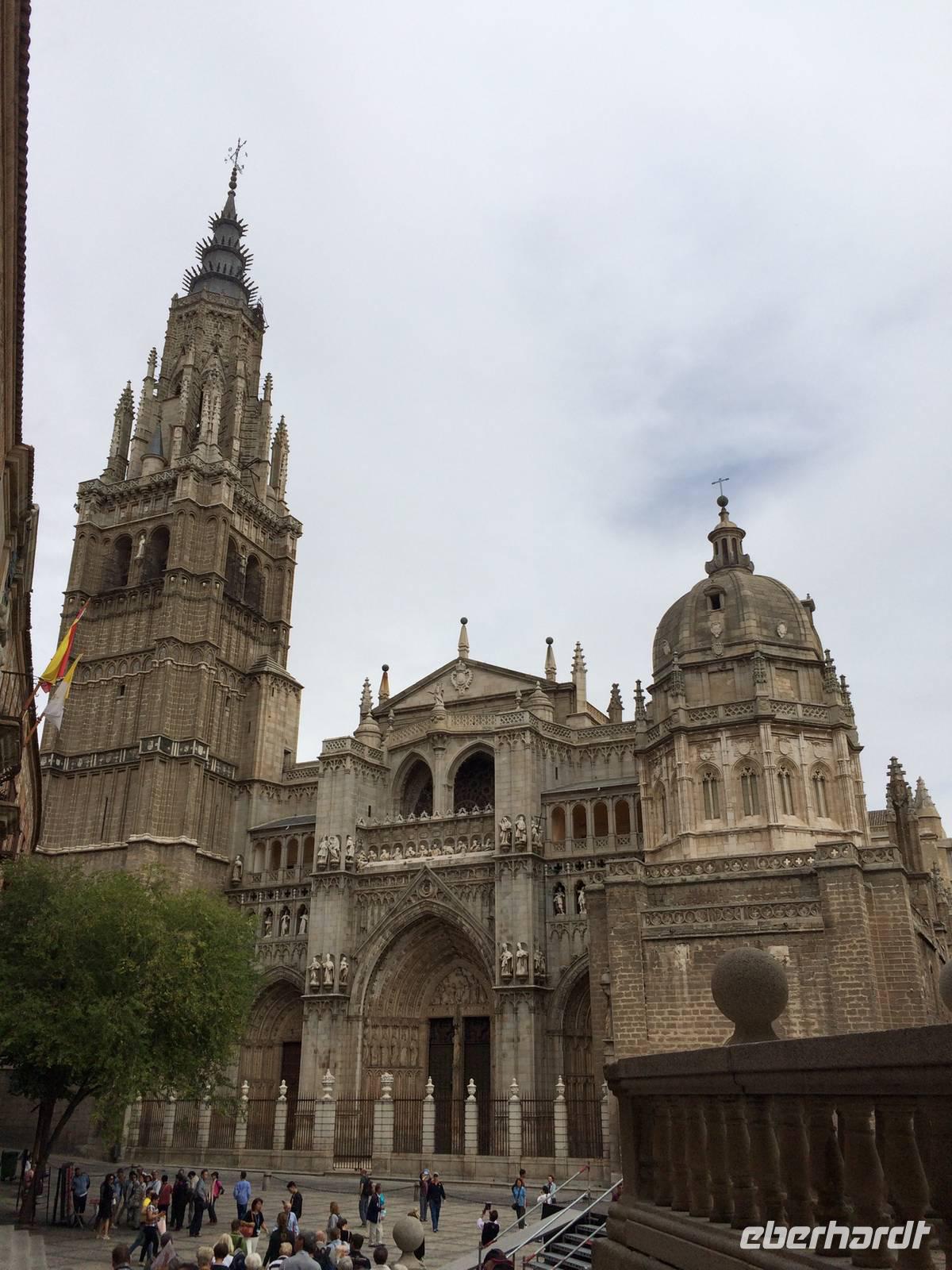 Weil hier über Jahrhunderte hinweg Christen, Muslime und Juden zusammenlebten, ist Toledo auch als "Stadt der drei Kulturen" bekannt. Wir umrunden einmal die Stadt bei einer Panoramatour und werfen einen himmlischen Blick auf die Dächer der Altstadt und über den Tajo, der sich tief in das Hochland eingeschnitten. Ein Künstler, den wir auf dem Aussichtspunkt treffen, malt sogar alle Turmspitzen genaustens auf seine Gemälde ab. Nun wollen wir auch hinter den Mauern einen Blick oder zwei der Stadt haben und finden ein künstlerisches sowie kulturelles Erbe aus Kirchen, Palästen, Festungen, Moscheen und Synagogen. Kein Wunder also, dass Toledo auch die Hauptstadt von Kastilien-La Mancha ist. Viele Gäste haben bereits über Toledo und El Greco gelesen. Live alles zu erleben ist natürlich umso schöner. Eines der Wahrzeichen der Stadt, dem Arco de la Sangre, lernen wir beim Stadtbummel kennen. Der aus Cervantes "Don Quijote" bekannte Bogen mit dem dahinter liegenden Alcazar (Palast) ist für uns ein perfektes Fotomotiv. Als nächstes sehen wir die Kathedrale, ein vorblidliches Werk für spanische Gotik. Sie wurde über eine moslimische Moschee gebaut und besitzt zwei Türme, doch eine davon wurde aufgrund von Geldmangel nicht zu Ende gebaut. Im El Greco-Museum entdecken wir ein berühmtes Bild von El Greco "Das Begräbnis vom Graf Orgaz". Anschließend besichtigen wir die Synagog im Judenviertel "Santa Mara La Blanca". Einen letzten kirchlicher Stopp für den Tag legen wir in der Kirche Juan de los Reyes ein, die für Hochzeiten wegen der Helligkeit sehr beliebt ist.