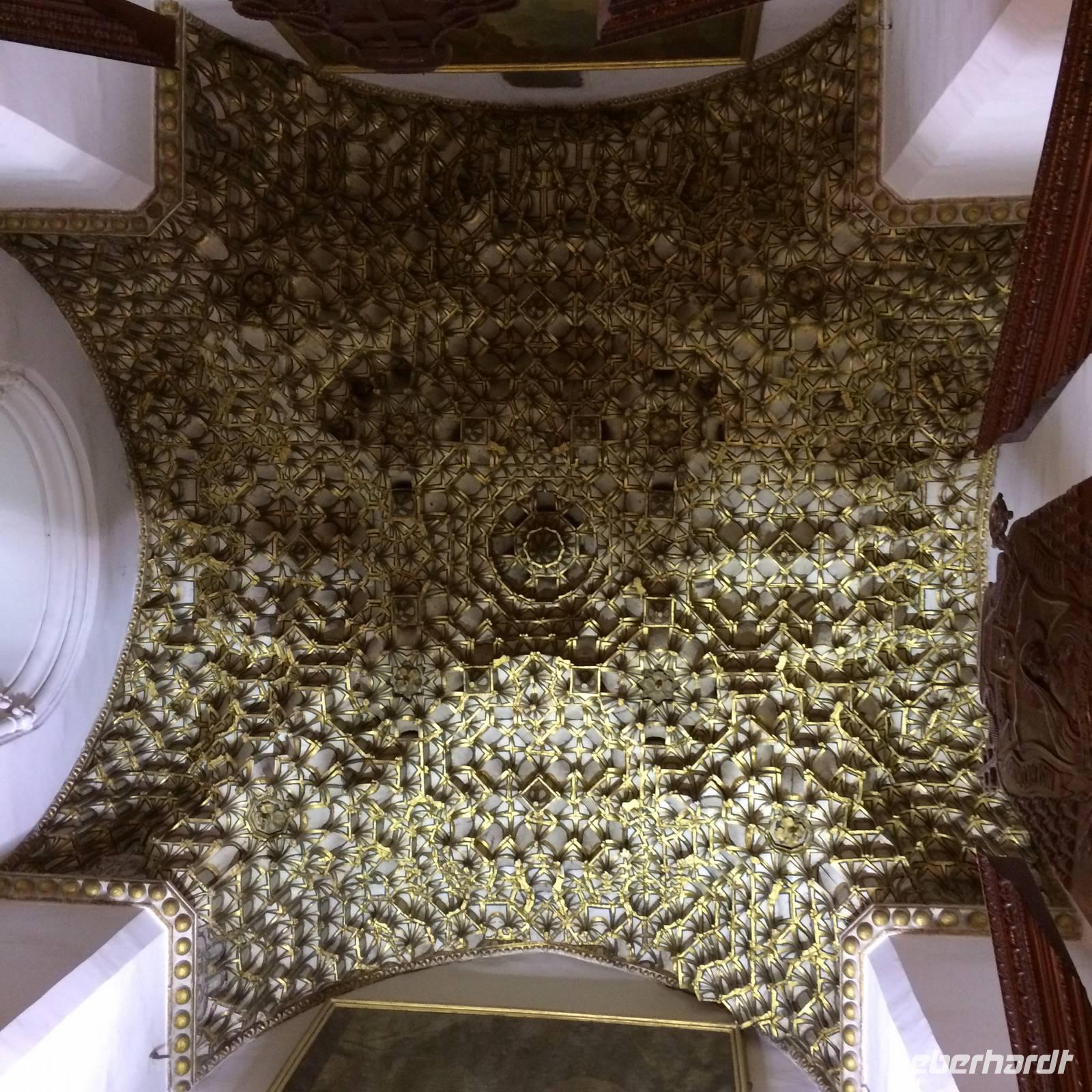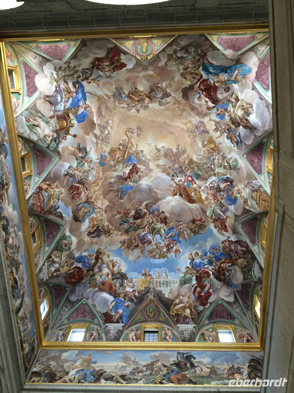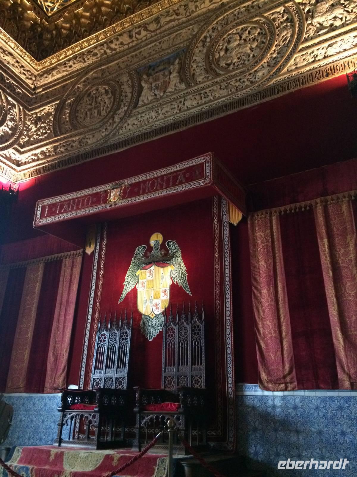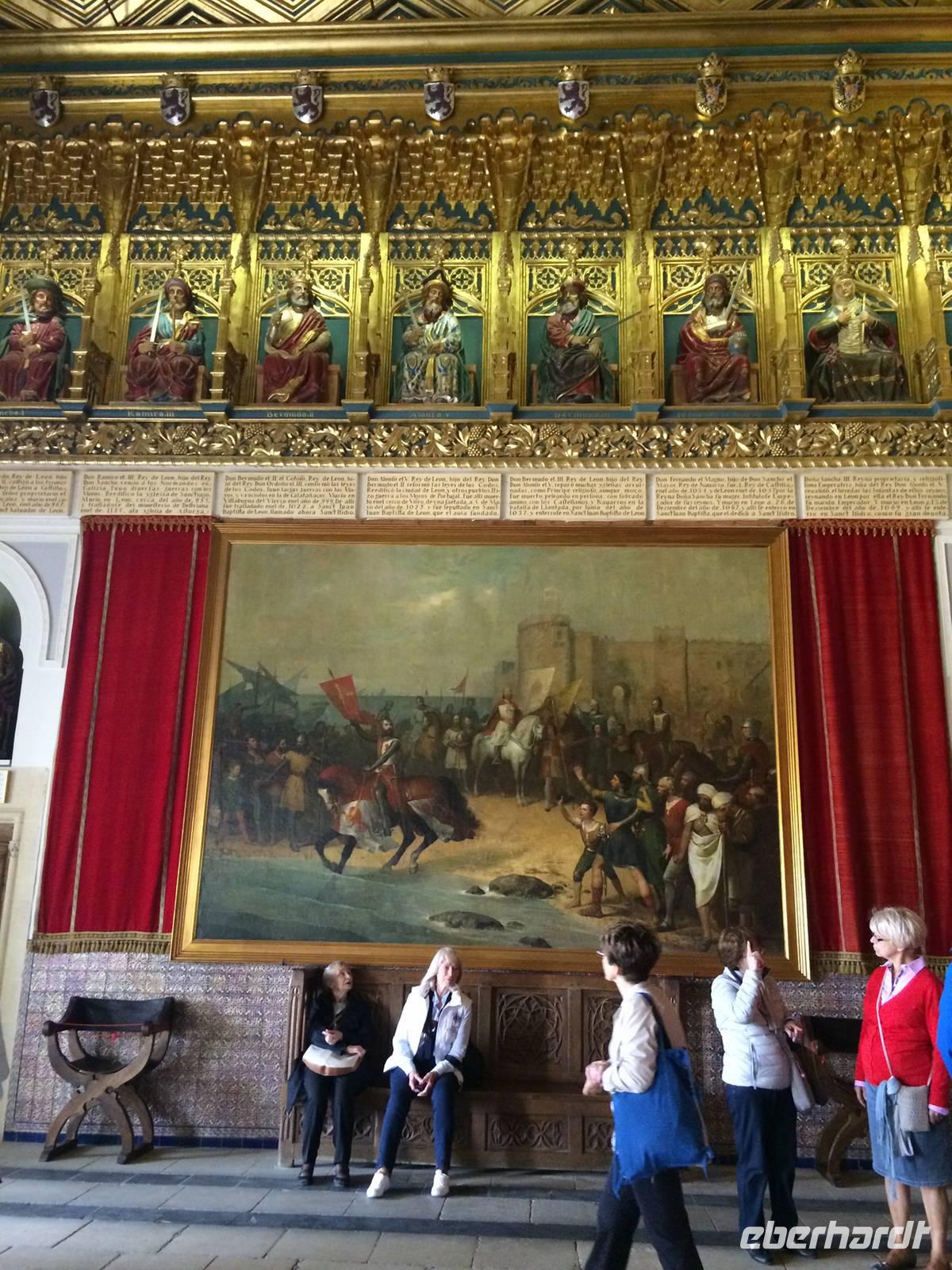 Schon lange Zeit, bevor Madrid überhaupt zur Hauptstadt erkoren wurde, ließen die Araber eine Festung um Toledo bauen, um sich vor dem Vordringen der Christen zu schützen. Später nutzten Karl I und sein Sohn Philipp II dieswe Wehranlage als permanente Residenz. Seitdem wurde die Anlage um- und ausgebaut. Wir genießen Einblicke in viele der 30.000 schmucken Innenräume. Besonders zu bemerken sind unter anderem der Tronsaal mit einer vom berühmten Künstler Tiépolo bemalten Decke oder die Königliche Kapelle, in der eine große Sammlung von Streichinstrumenten des legendären Antonio Stradivari ausgestellt werden. Auch zahlreiche wertvolle Gemälde von Luis Morales, Velázquez oder Goya sind in den Räumlichkeiten zu bewundern.