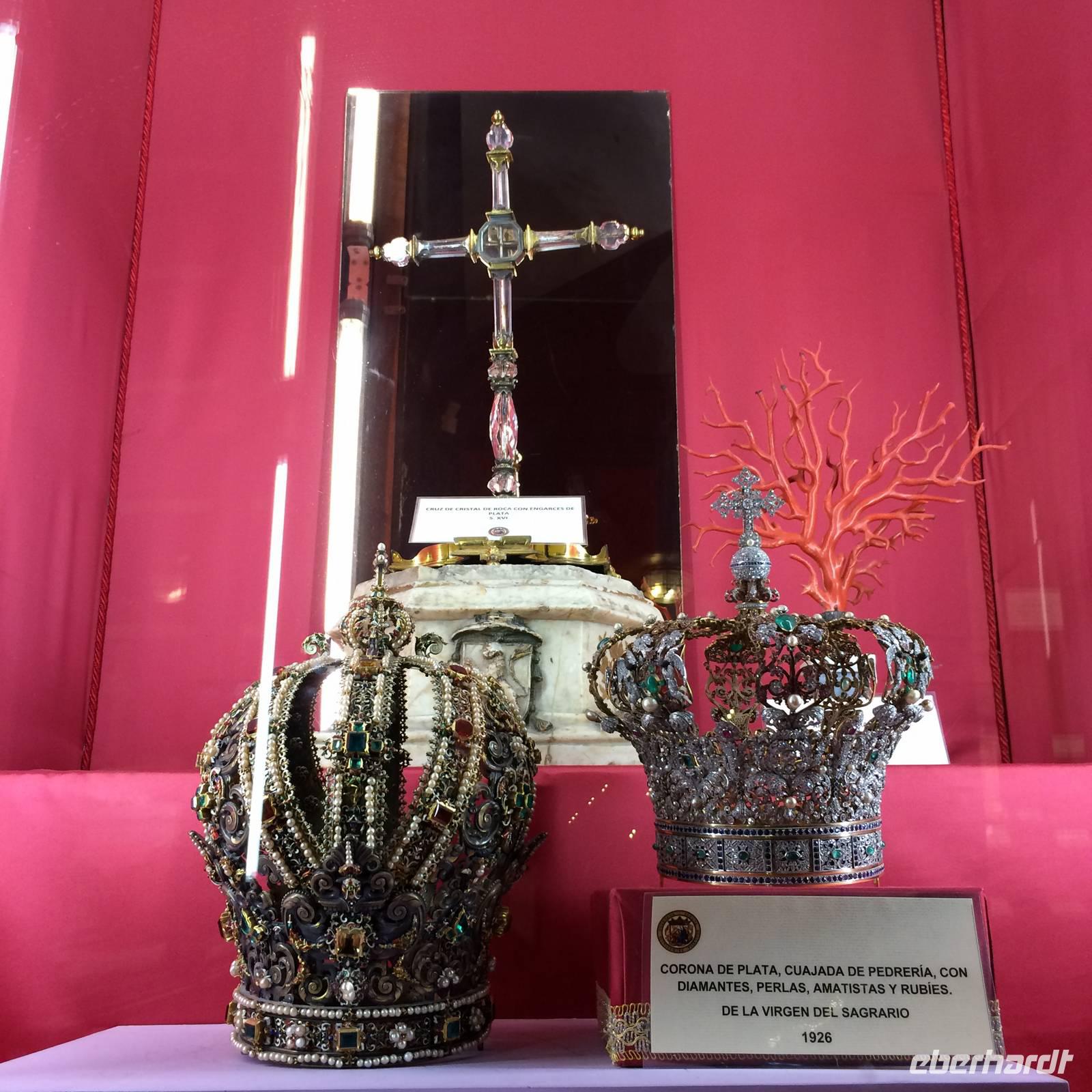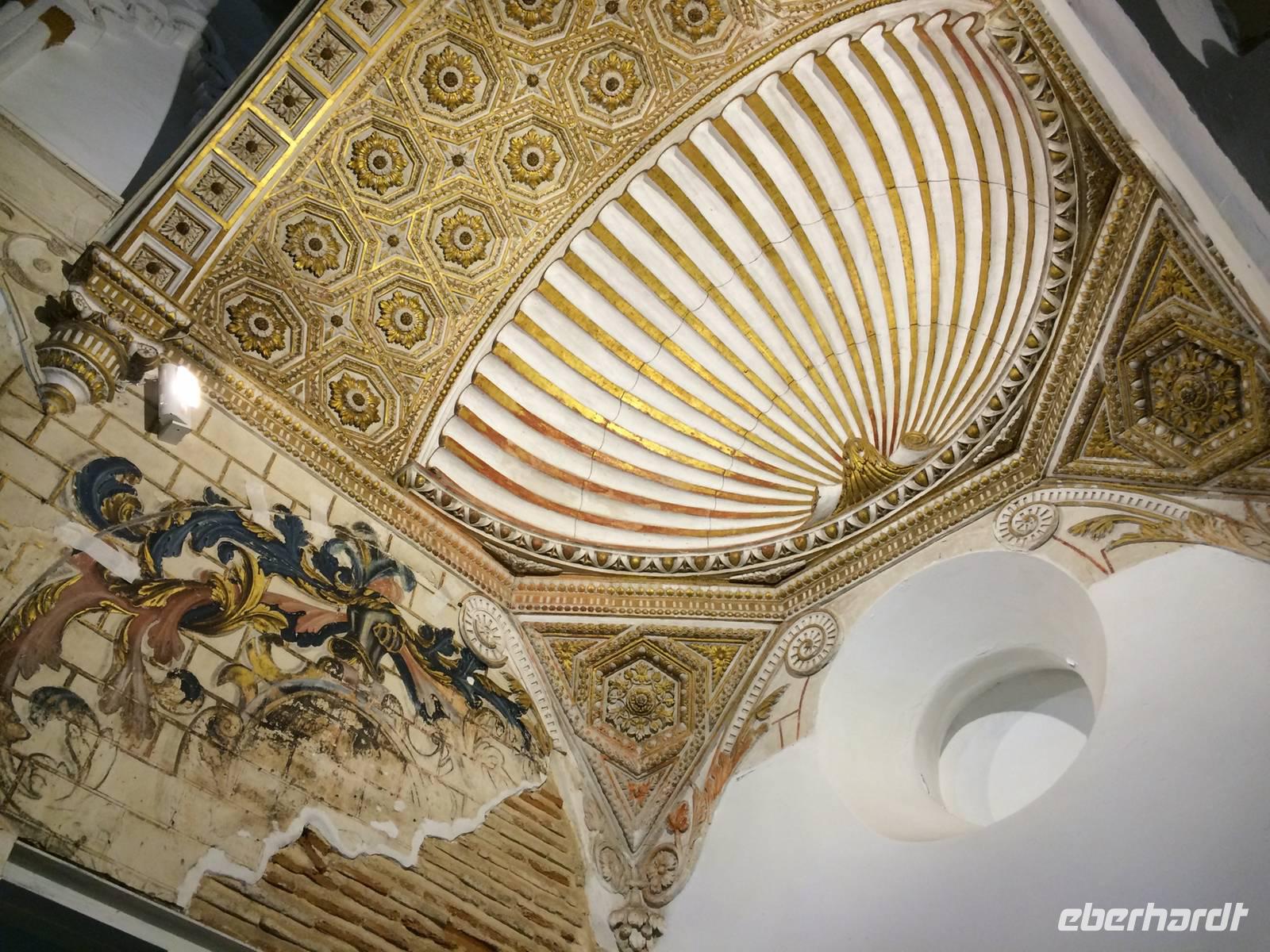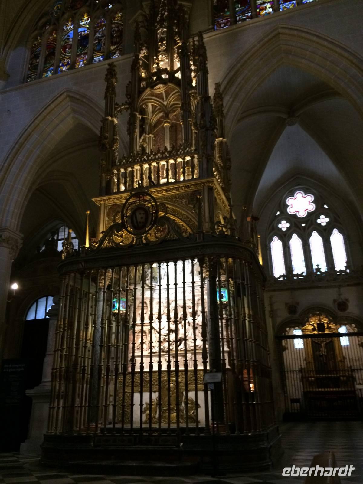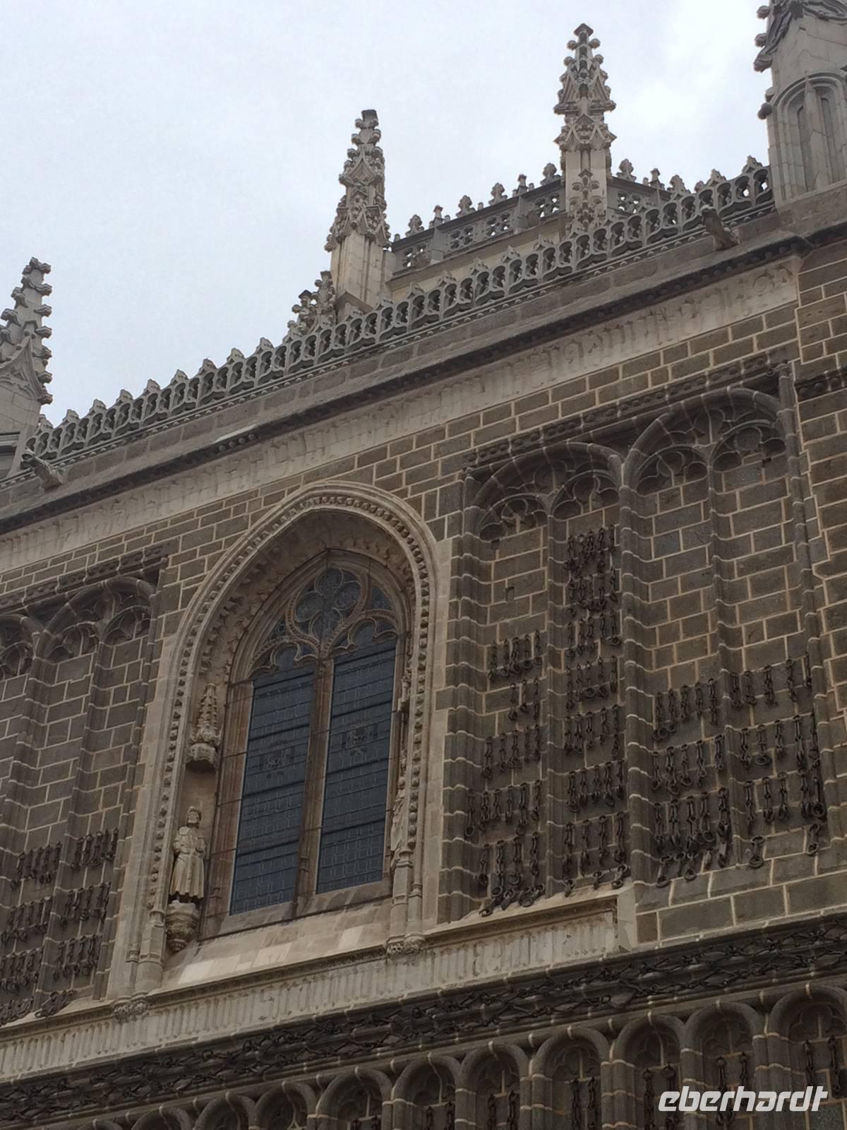 Schon lange Zeit, bevor Madrid überhaupt zur Hauptstadt erkoren wurde, ließen die Araber eine Festung um Toledo bauen, um sich vor dem Vordringen der Christen zu schützen. Später nutzten Karl I und sein Sohn Philipp II dieswe Wehranlage als permanente Residenz. Seitdem wurde die Anlage um- und ausgebaut. Wir genießen Einblicke in viele der 30.000 schmucken Innenräume. Besonders zu bemerken sind unter anderem der Tronsaal mit einer vom berühmten Künstler Tiépolo bemalten Decke oder die Königliche Kapelle, in der eine große Sammlung von Streichinstrumenten des legendären Antonio Stradivari ausgestellt werden. Auch zahlreiche wertvolle Gemälde von Luis Morales, Velázquez oder Goya sind in den Räumlichkeiten zu bewundern.