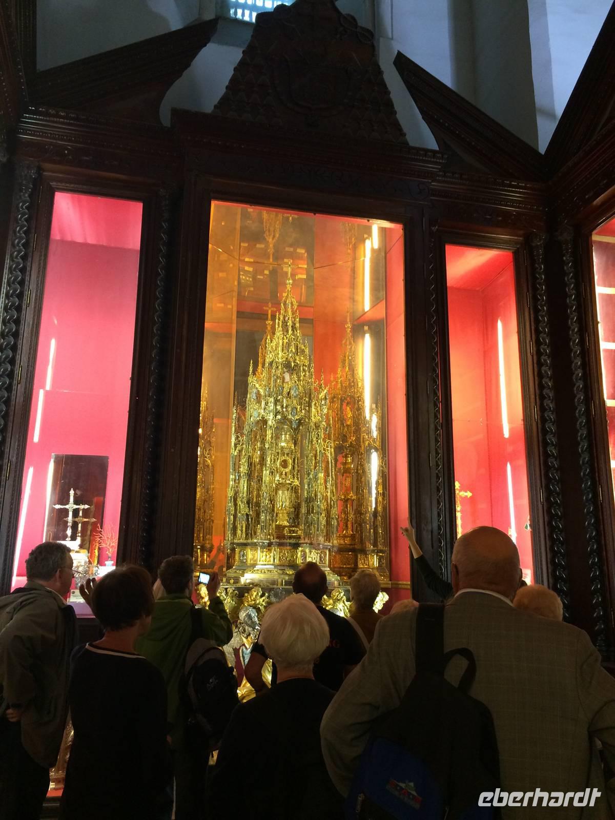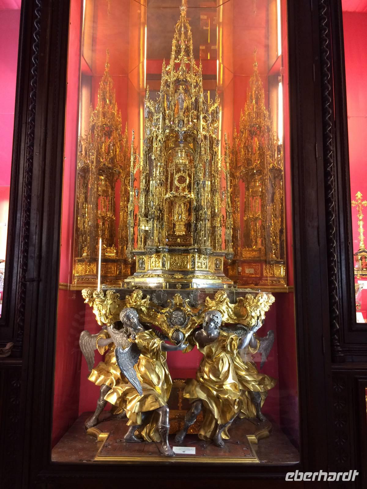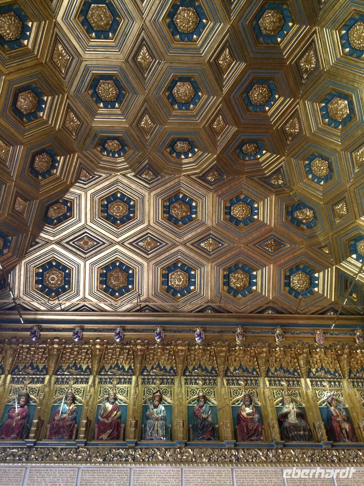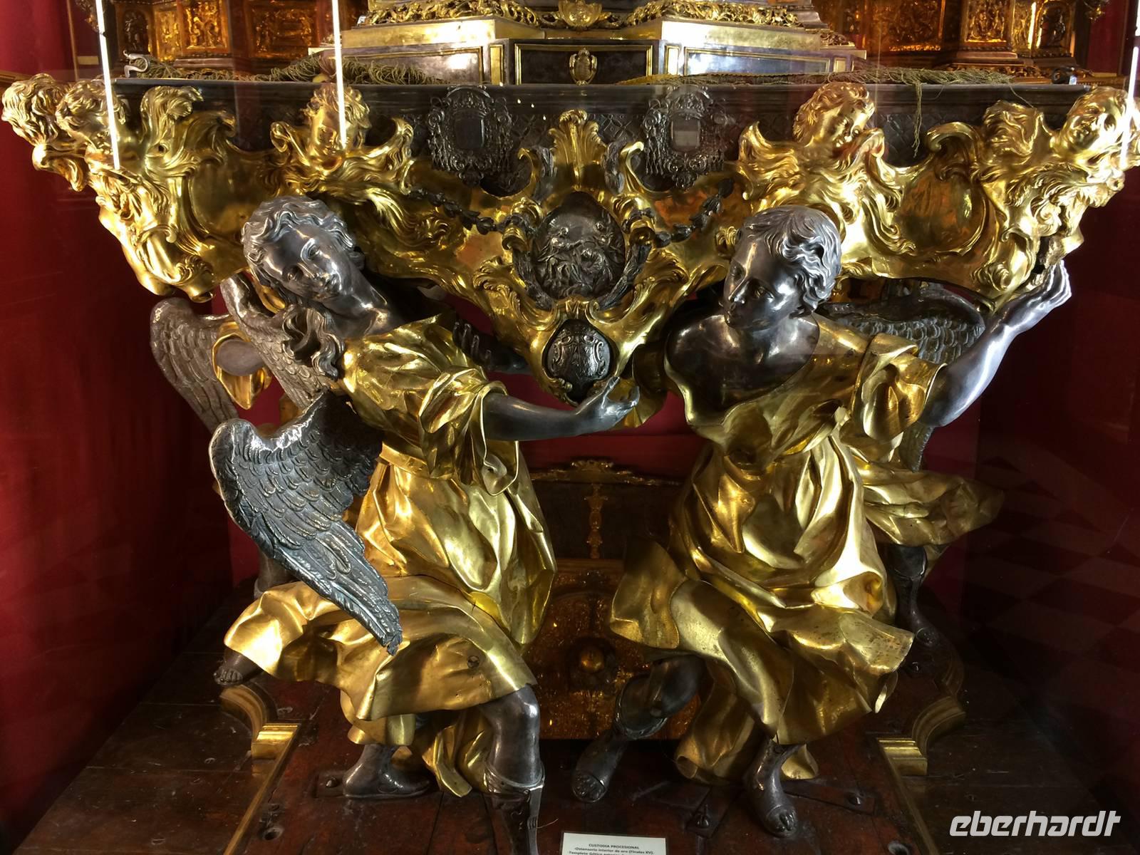 Schon lange Zeit, bevor Madrid überhaupt zur Hauptstadt erkoren wurde, ließen die Araber eine Festung um Toledo bauen, um sich vor dem Vordringen der Christen zu schützen. Später nutzten Karl I und sein Sohn Philipp II dieswe Wehranlage als permanente Residenz. Seitdem wurde die Anlage um- und ausgebaut. Wir genießen Einblicke in viele der 30.000 schmucken Innenräume. Besonders zu bemerken sind unter anderem der Tronsaal mit einer vom berühmten Künstler Tiépolo bemalten Decke oder die Königliche Kapelle, in der eine große Sammlung von Streichinstrumenten des legendären Antonio Stradivari ausgestellt werden. Auch zahlreiche wertvolle Gemälde von Luis Morales, Velázquez oder Goya sind in den Räumlichkeiten zu bewundern.