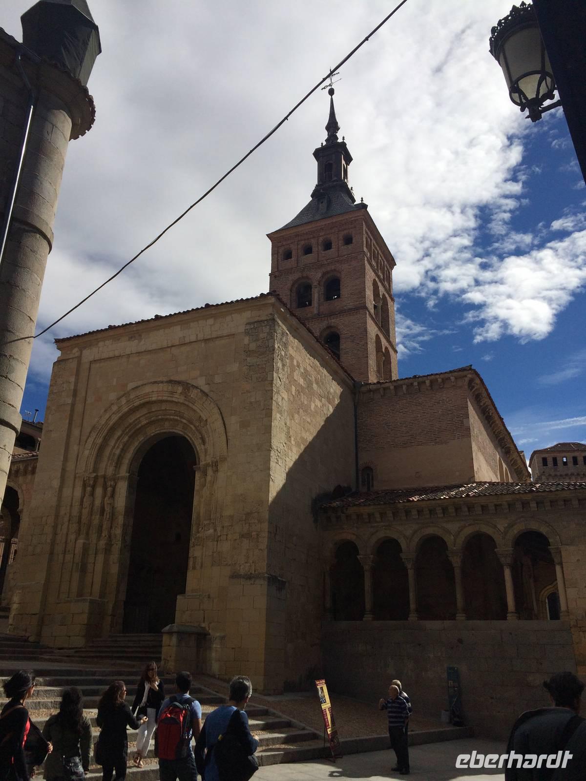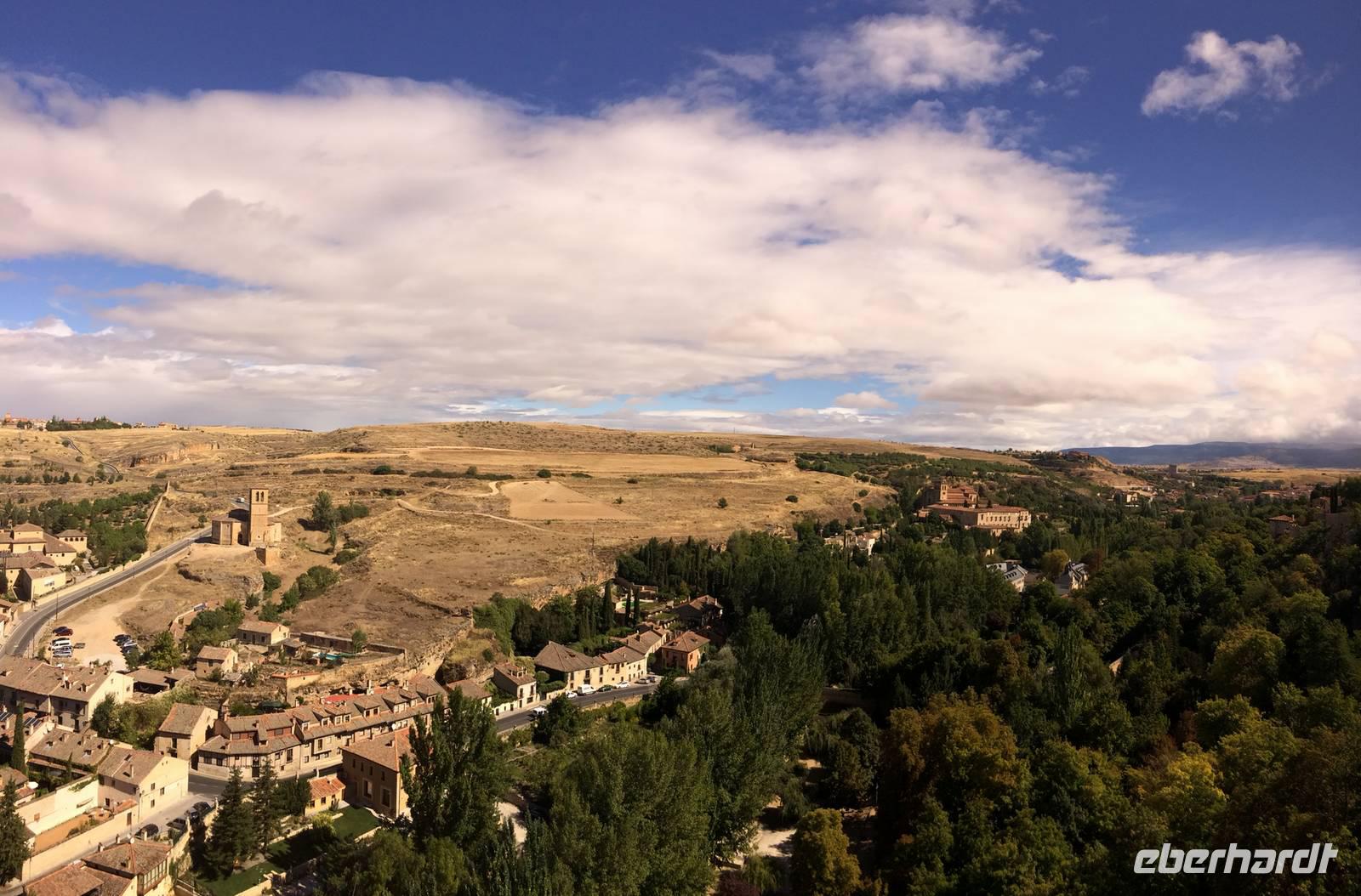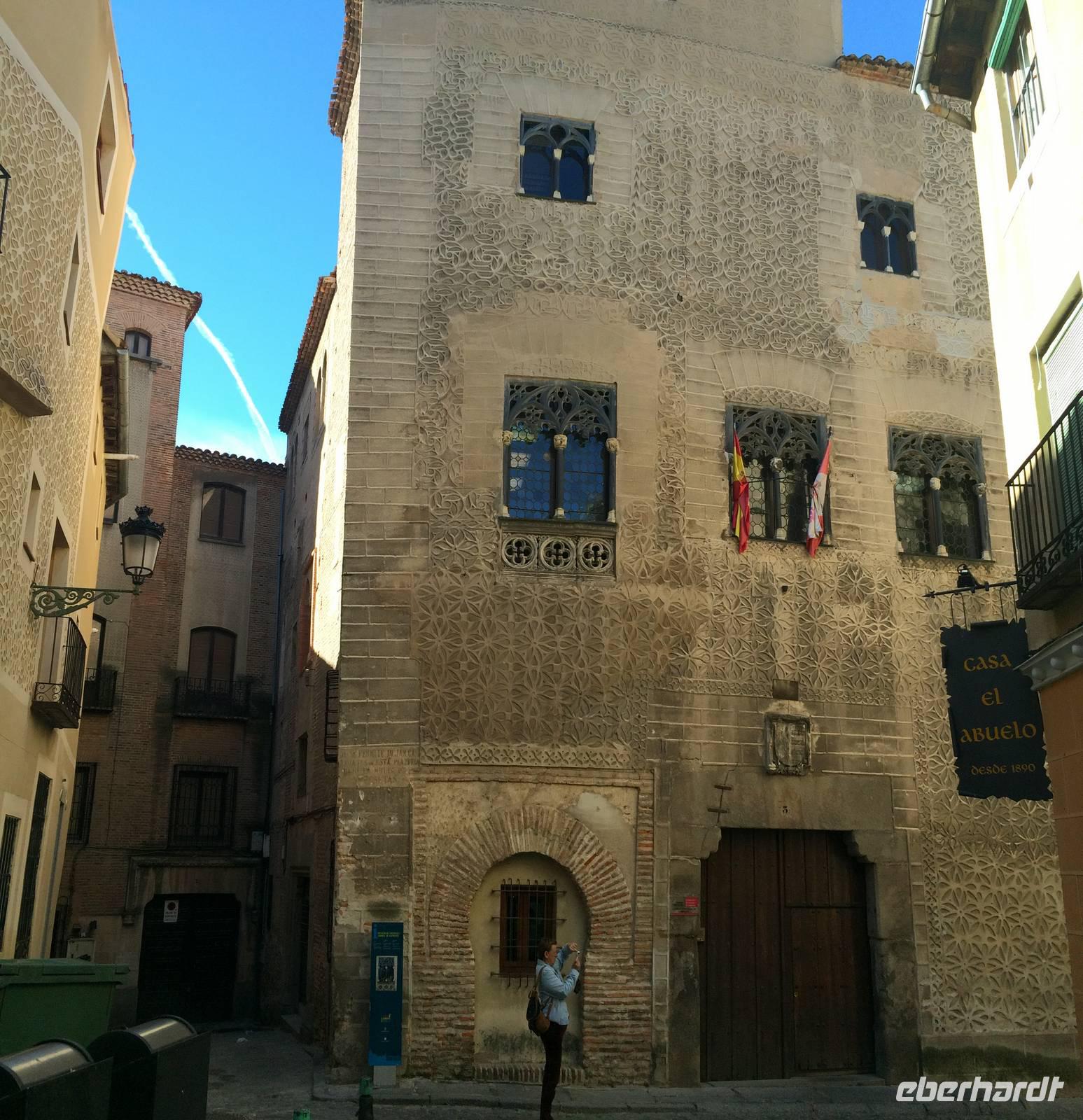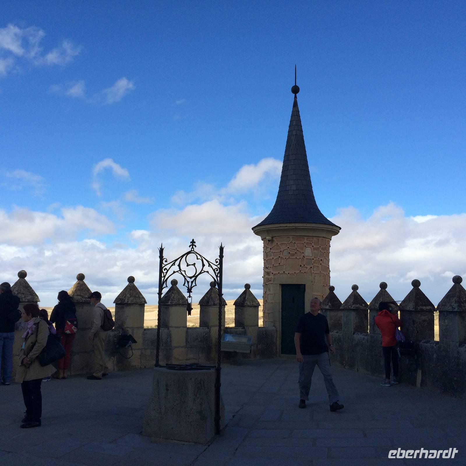 Ein aufregender Tag steht uns bevor. Es geh dieses Mal in das nördliche Umland von Madrid. Erstes Tagesziel: Segovia, die insbesondere für zahlreiche Kirchen aus romanischer Zeit Berühmtheit genießt. Aber noch bekannter ist das 28 Meter hohe römische Aquädukt, welches eine majestätische Kulisse hinter der Altstadt bildet. Genüsslich spazieren wir hinauf zum Alcazar von Segovia. Einige lassen es sich noch besser gehen und lassen sich mit dem Taxi bergauf fahren Unsere Reiseleiterin Petra erzählt uns von der kulinarischen Spezialität der Stadt: Gebratenes Spanferkel. Mhmm... lecker, da läuft uns das Wasser im Mund... Nach einer Stadtbesichtigung mit wunderschöner Kathedrale und den vielen Häusern mit verzierten Wänden (Mudejar-Stil), die es nur hier in Segovia in der Menge gibt, kehren wir ein in einer kleinen Stube eines Delikatessenladens. Anh lädt unsere Gäste ein, kleine Kostproben wie Chorizo (Paprika-Salamiwurs), Käse, Olivenöl und Kekse zu kosten. Buen provecho! Guten Apetit!