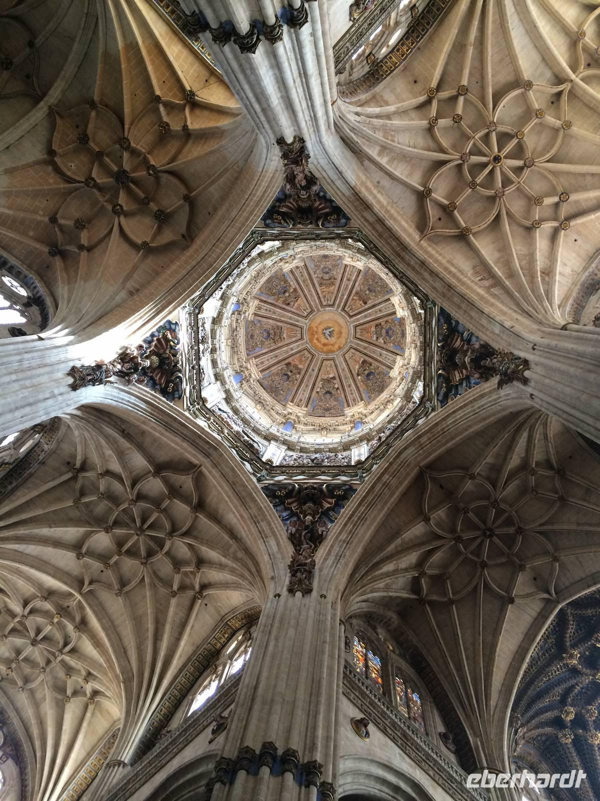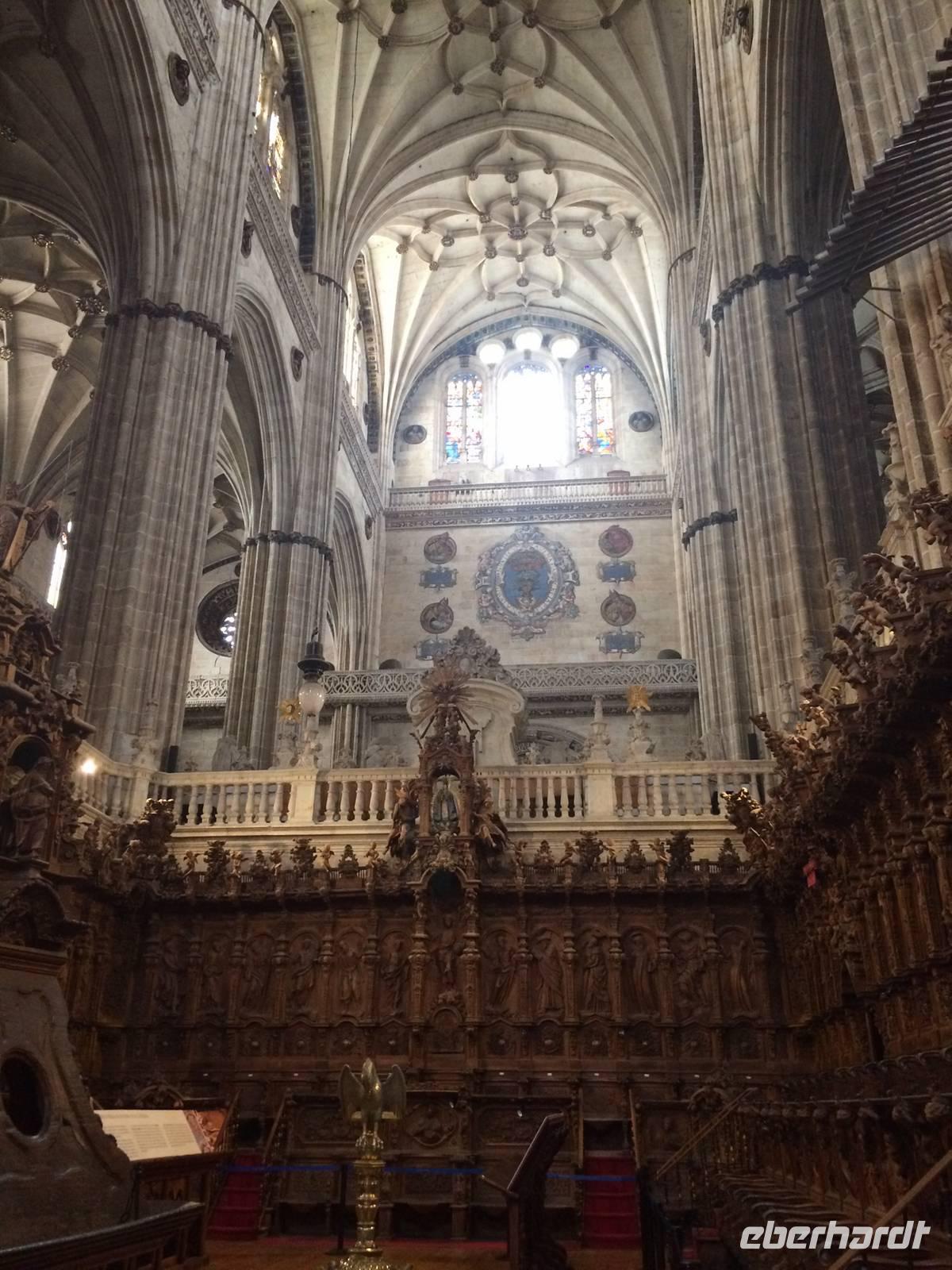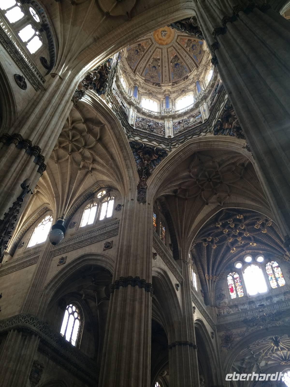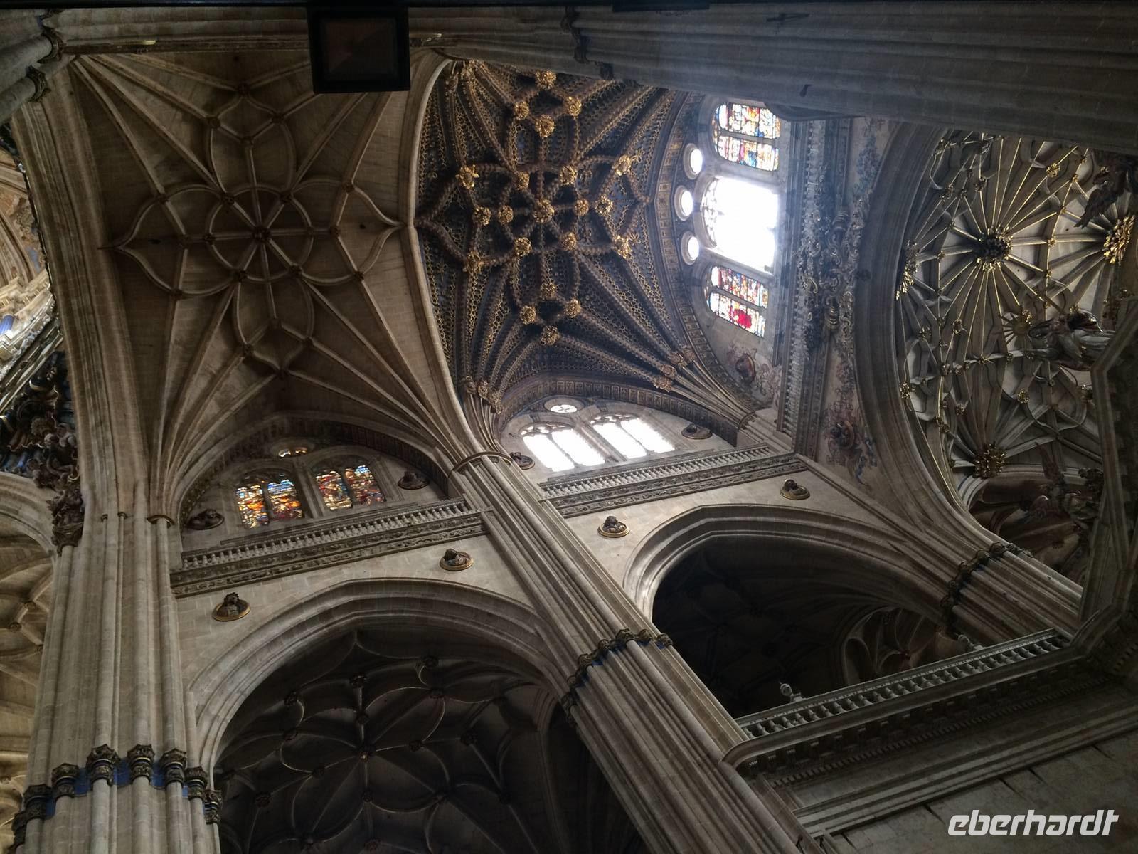 Das perfekte Wetter für eine Fahrt durch die schöne Landschaft von Kastilien-Leon. Wir bekommen die Außmaße und Schönheit des iberischen Scheidengebirges Sierra Guadarrama vor Augen zu sehen. Wir bewundern auch schon einen ersten Blick auf das Städtchen Ávila. Unser Ziel ist zunächst die Universitätenstadt Salamanca. Hier wird das reinste Castellano-Spanisch (Hochspanisch) im ganzen Land gesprochen und so kommen jährlich tausende Schüler und Studenten um die Weltsprache zu erlernen. Architektonisch hat sie ebenfalls jede Menge zu bieten. Die Gebäude verfügen über Fassaden aus goldfarbenen Sandsein, die dieser Stadt eine einzigartige Persönlichkeit verleiht. Die UNESCO hat Salamanca zum "Kulturgut der Menschheit" erklärt. Nach Besichtigung der Kathedrale spazieren wir zur ältesten Universität Spaniens, auch eine der ältesten in Europa. Dessen Fassade ist sehr prunkvoll geziert und wir halten Ausschau nach einem Frosch, den wir dann mit Müh letztendlich erblicken. Am Plaza Mayor beenden wir den Rundgang und streuen aus in die kleinen Bars, um etwas zu Trinken. In Salamanca ist es gängig, dass man zu jeder Getränkebestellung in jeder Bar eine Tapas kostenfrei erhält.