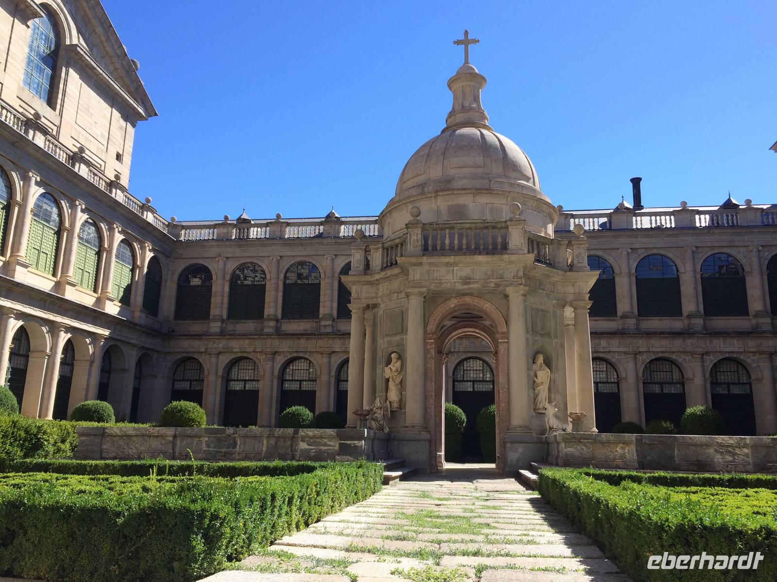 Gut gelaunt und gespannt auf die berühmte Grabstätte der spanischen Königsfamilie reisen wir nach El Escorial. Die Spanier sprechen hier gern vom „Achten Weltwunder", denn die gewaltige Klosteranlage ist der größte Renaissancebau der Welt.