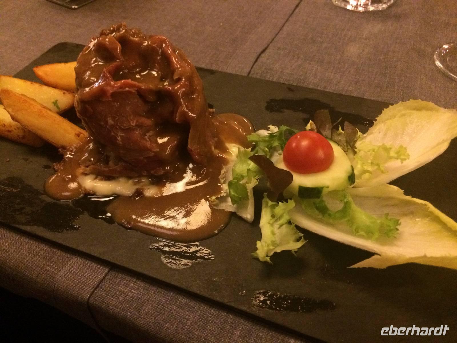 Gemütlich lassen wir den Tag bei Wein und Spanischen Köstlichkeiten in einem Spitzenrestaurant mit Blick auf die am Abend beleutchtete Franziskanerkirche ausklingen.