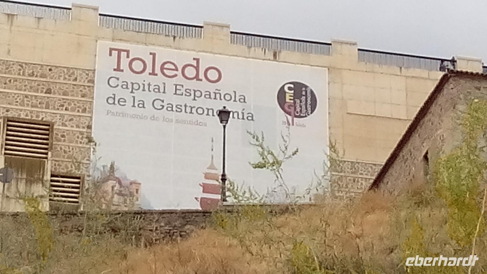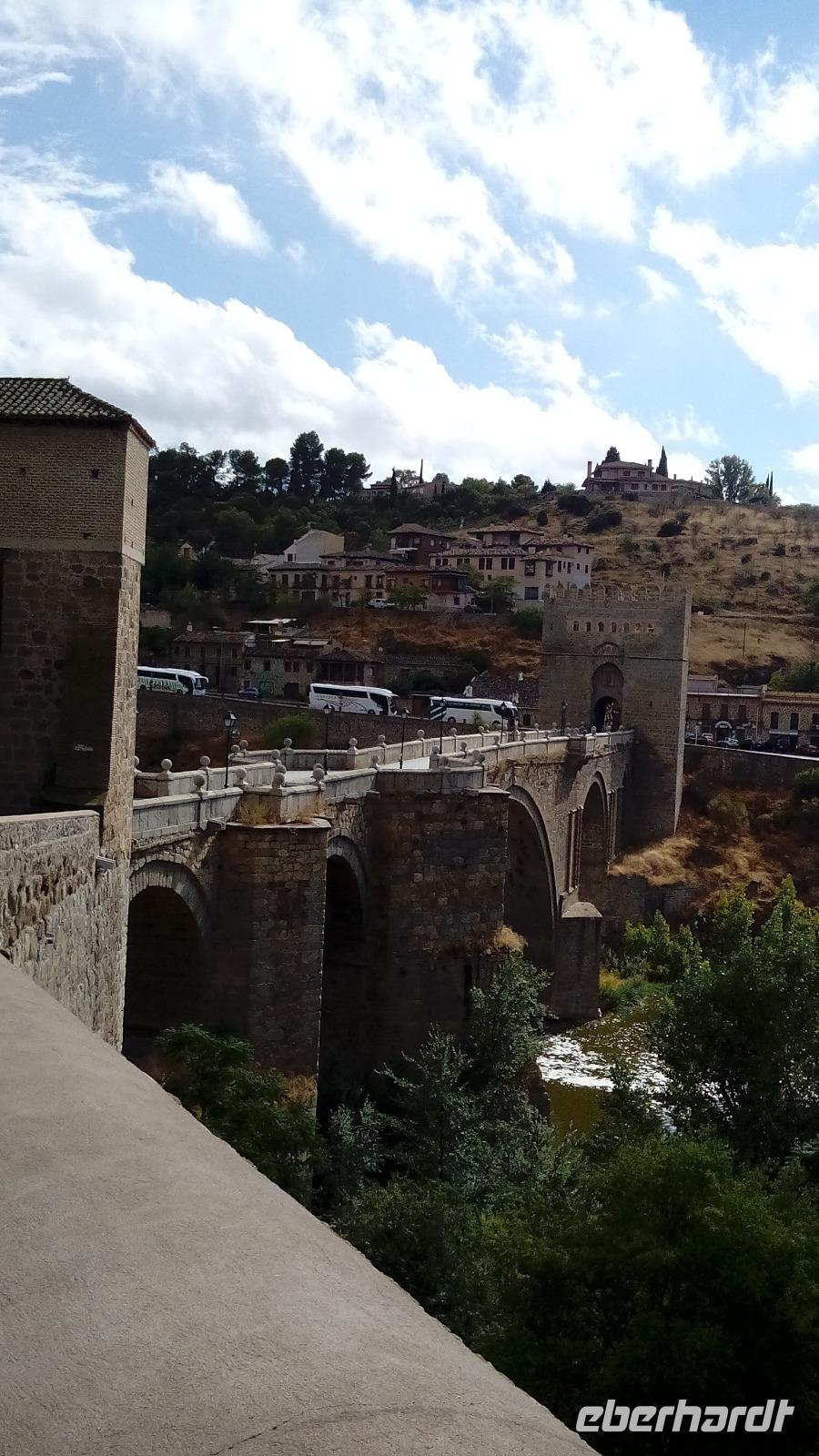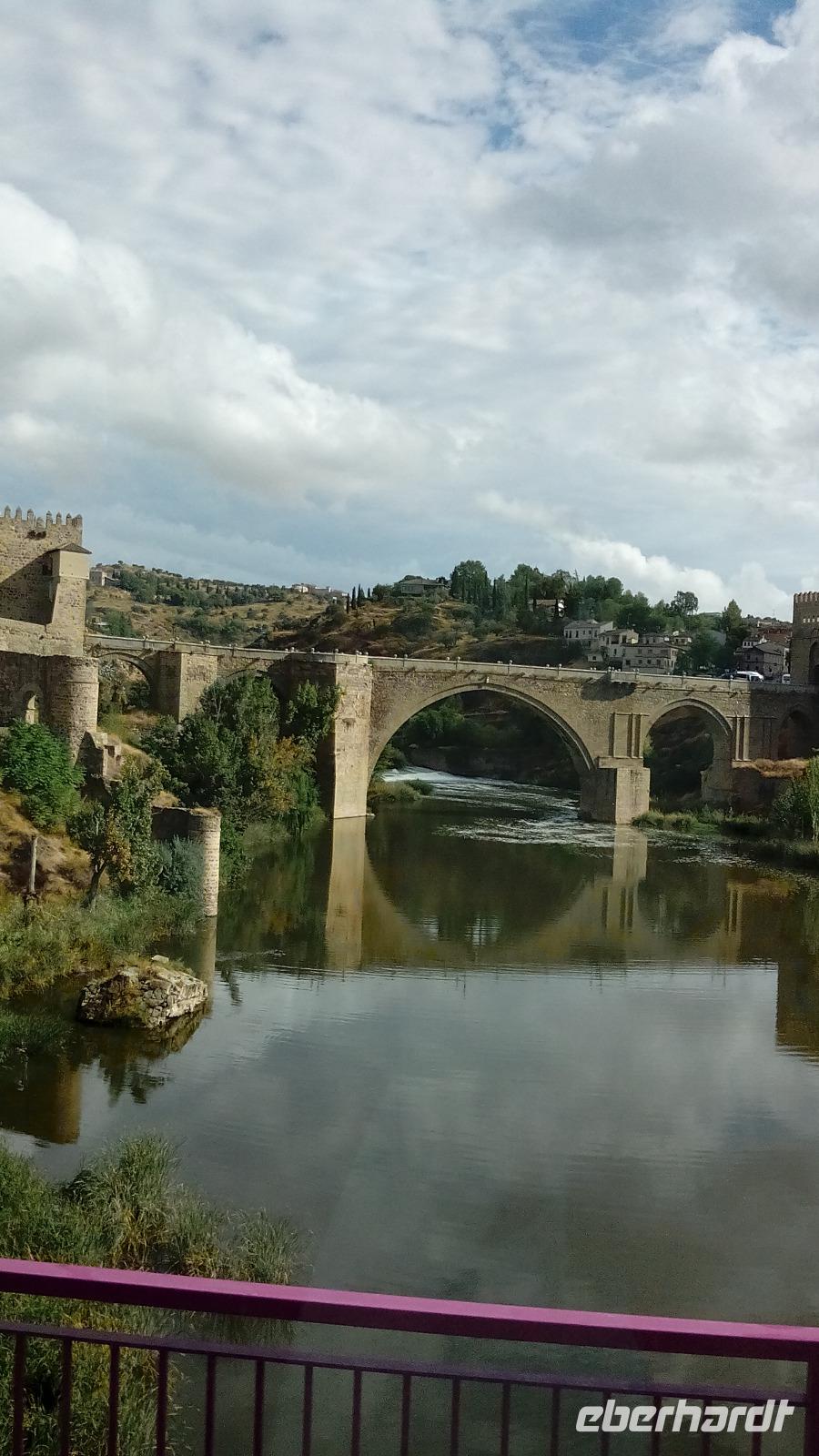Weiter ging es nach Toledo, was sich uns schon von Weitem wunderschön auf dem Felsen zeigte. Nach einem teilweise gemeinsamen Mittagessen wurden wir auf dem Weg zur Kathedrale etwas nass, aber dann, nach dem Besuch der Kathedrale, auf dem flotten Stadtrundgang mit drei weiteren Kirchen konnten wir die Regenschirme schon wieder als Sonnenschirme benutzen. Ein Schmankerl gab es zum Schluss: Die Mehrheit lief über die malerische Brücke zurück, zwei Damen flogen am Seil entlang neben der Brücke über den Fluss.