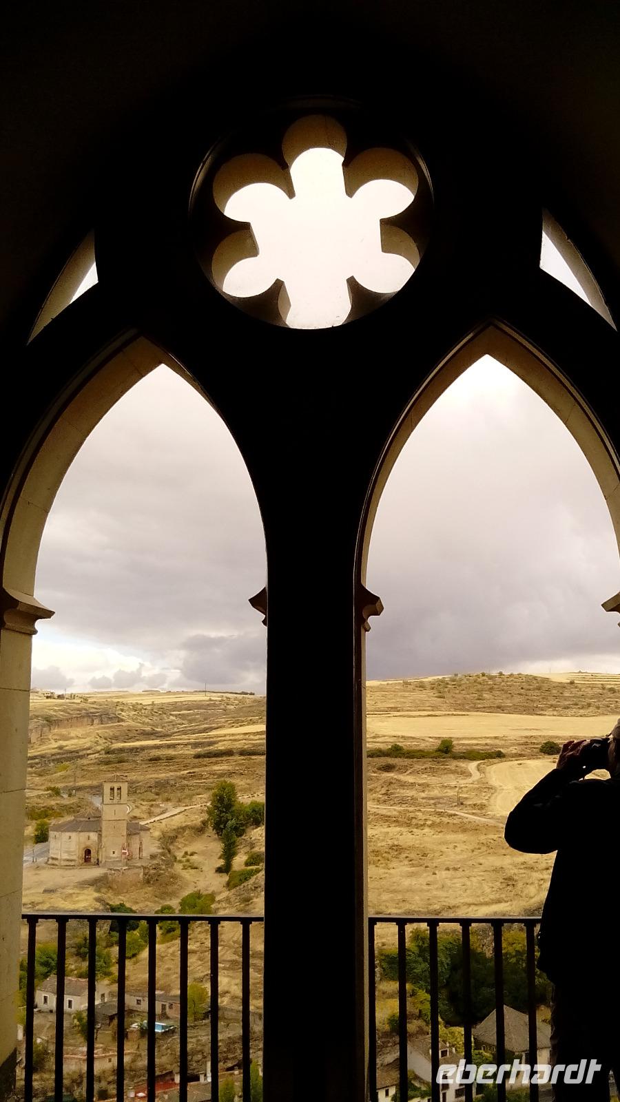 Auf unserem nächsten Ganztagesausflug fuhr uns José durch die Sierra de Guadarrama mit ihren Merino-wolligen Schafen in den Norden von Madrid. Segovia empfing uns mit einem imposanten "Hingucker": dem 700 Meter langen und 28 Meter hohen Aquädukt. Nachdem wir mit Petra die wunderschöne Kathedrale besichtigt hatten, steuerten wir auf den Alcázar zu. Dieser mutete von außen wie ein Märchenschloss an, und von innen genossen wir die Aussicht auf schöne Gebäude und Landschaft der unmittelbaren Umgebung.