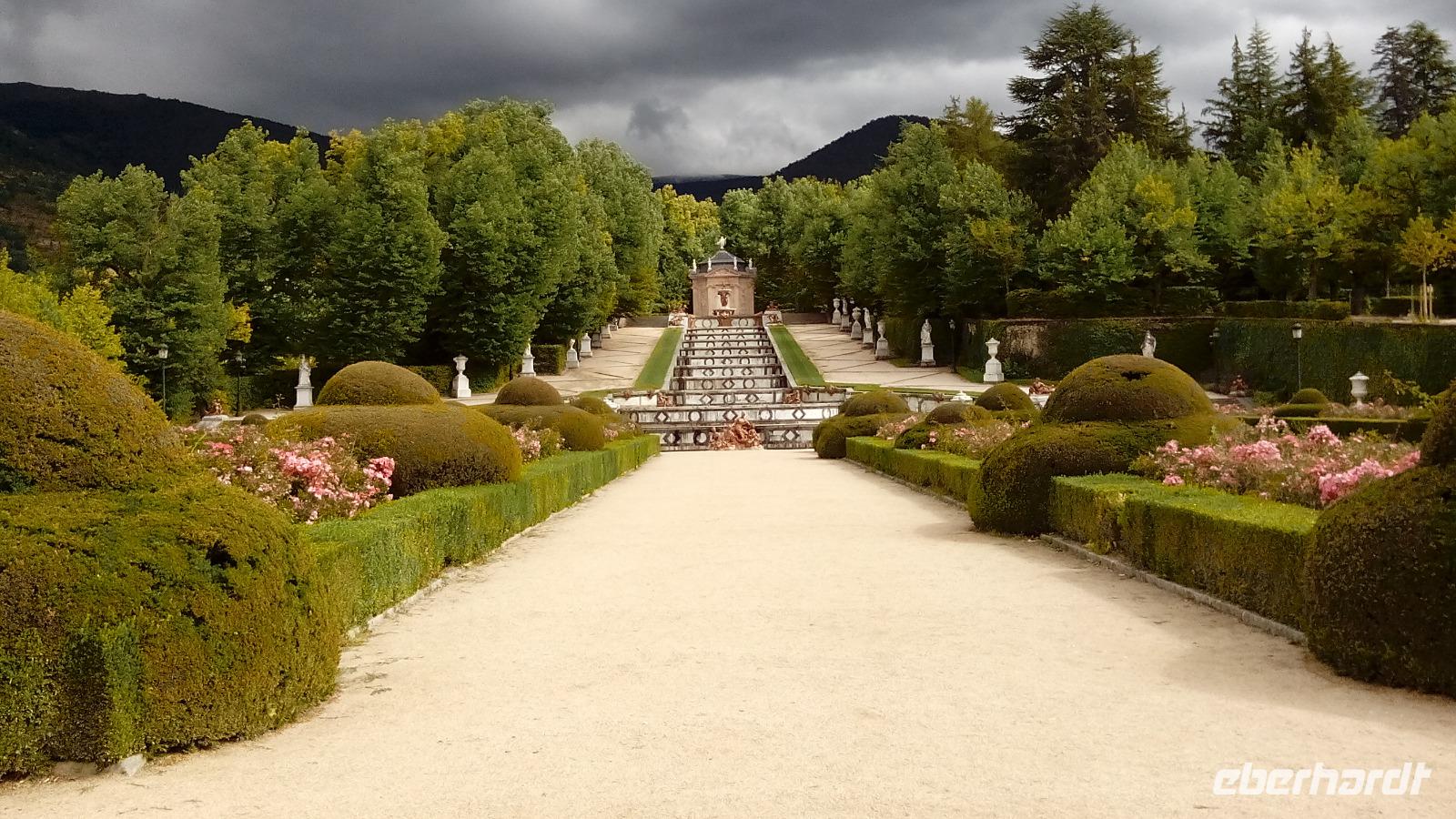 Nachmittags ging es weiter nach La Granja, dem königlichen Garten. Wir schauten Schloss und Schlosspark an, und trotzdem die Terrassen-Wasserspiele außer Betrieb waren, war die Schönheit der Anlage offenkundig und entschädigte uns für den massiven Temperatursturz von 34 auf 14 Grad Celsius.