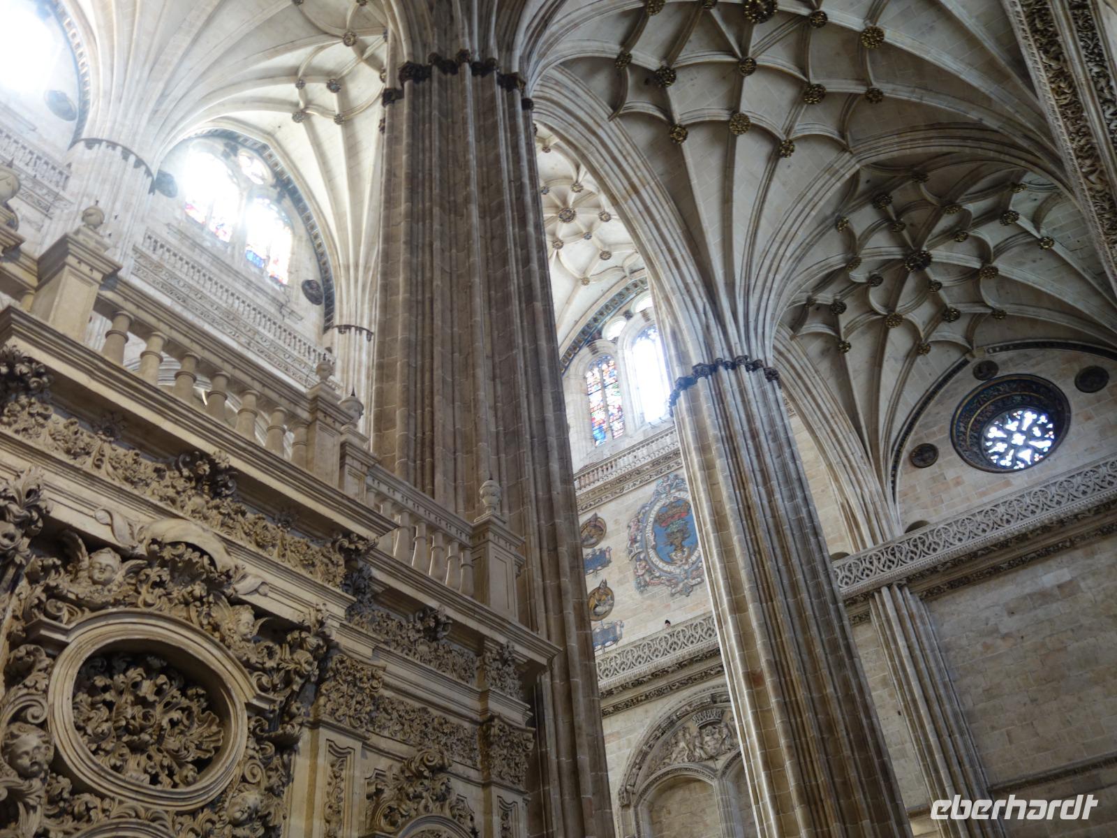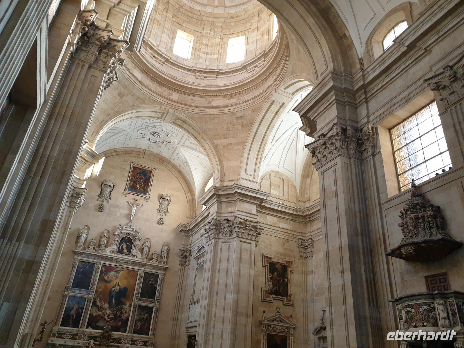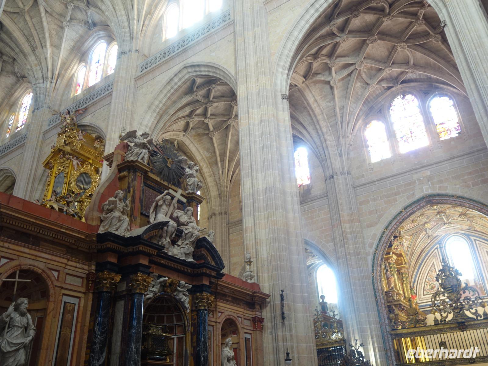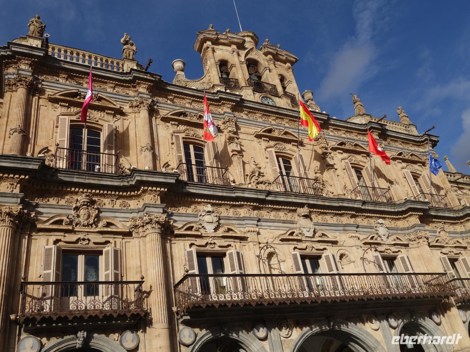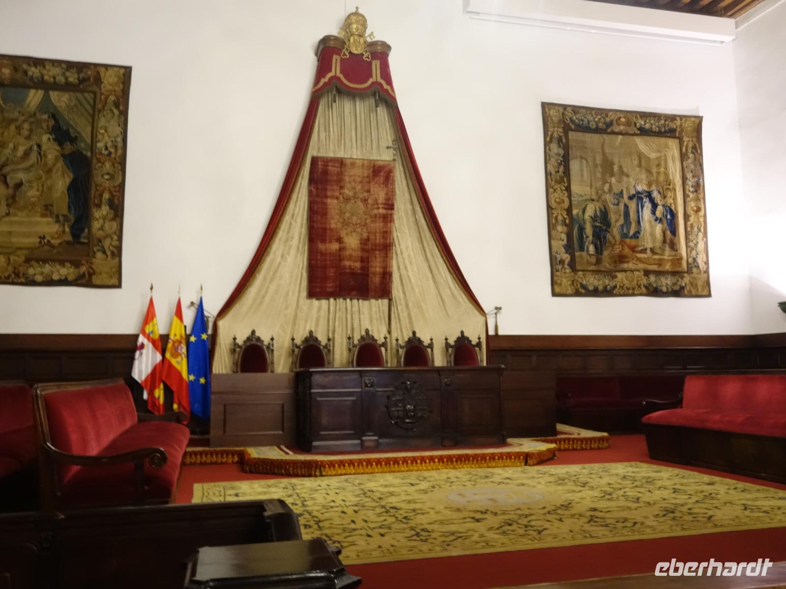 Auf dem Weg nach Salamanca bestaunen wir eine total andere Landschaft mit den grünen Wiesen mit Schafen oder Stieren. Salamanca begrüßt uns mit der römischen Brücke, über die wir morgen den Fluss Tormes überqueren. Die am Fluss Tormes gelegene Stadt galt lange Zeit als maurisches Handelszentrum, ehe sie von den katholischen Herrschern zurückerobert wurde. Die bedeutenden Sehenswürdigkeiten lernten wir bei einem Stadtrundgang kennen. Wir besichtigen auch die bekannte Universität und den Saal, wo die Doctoris Causa heutzutage gefeiert sind. Danach gingen wir unterwegs am Stadtpalast vorbei, und morgen freiwillig besichtigten die neue Kathedrale der Stadt. Auf dem Plaza Mayor gönnten wir Freizeit, um diese Stadt mit mehr als 30.000 Stundenten auf eigene Faust weiter zu erkunden. Einige fanden einen Supermarkt nicht weit von Hotel. Abendessen war heute im Hotel. Wir waren bisschen müde von der langen Reise seit heute morgen früh von zu Hause in Deutschland und freuen uns auf morgen mit Sonne.