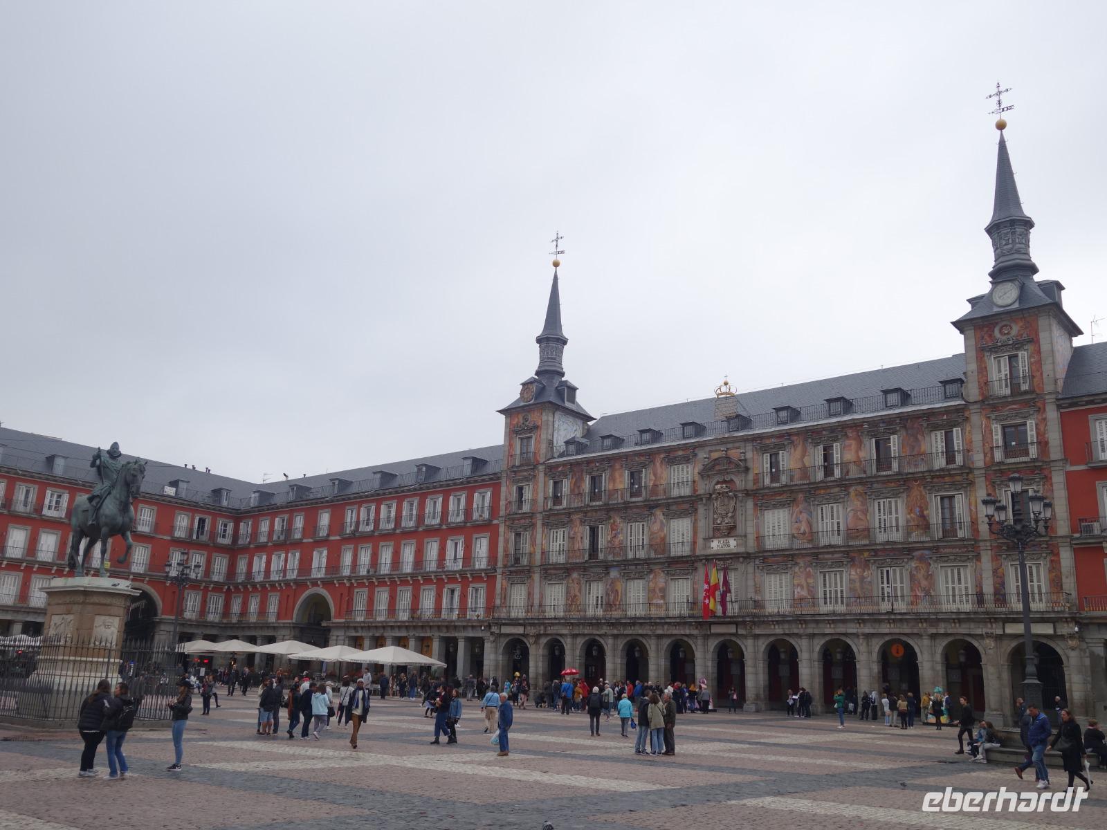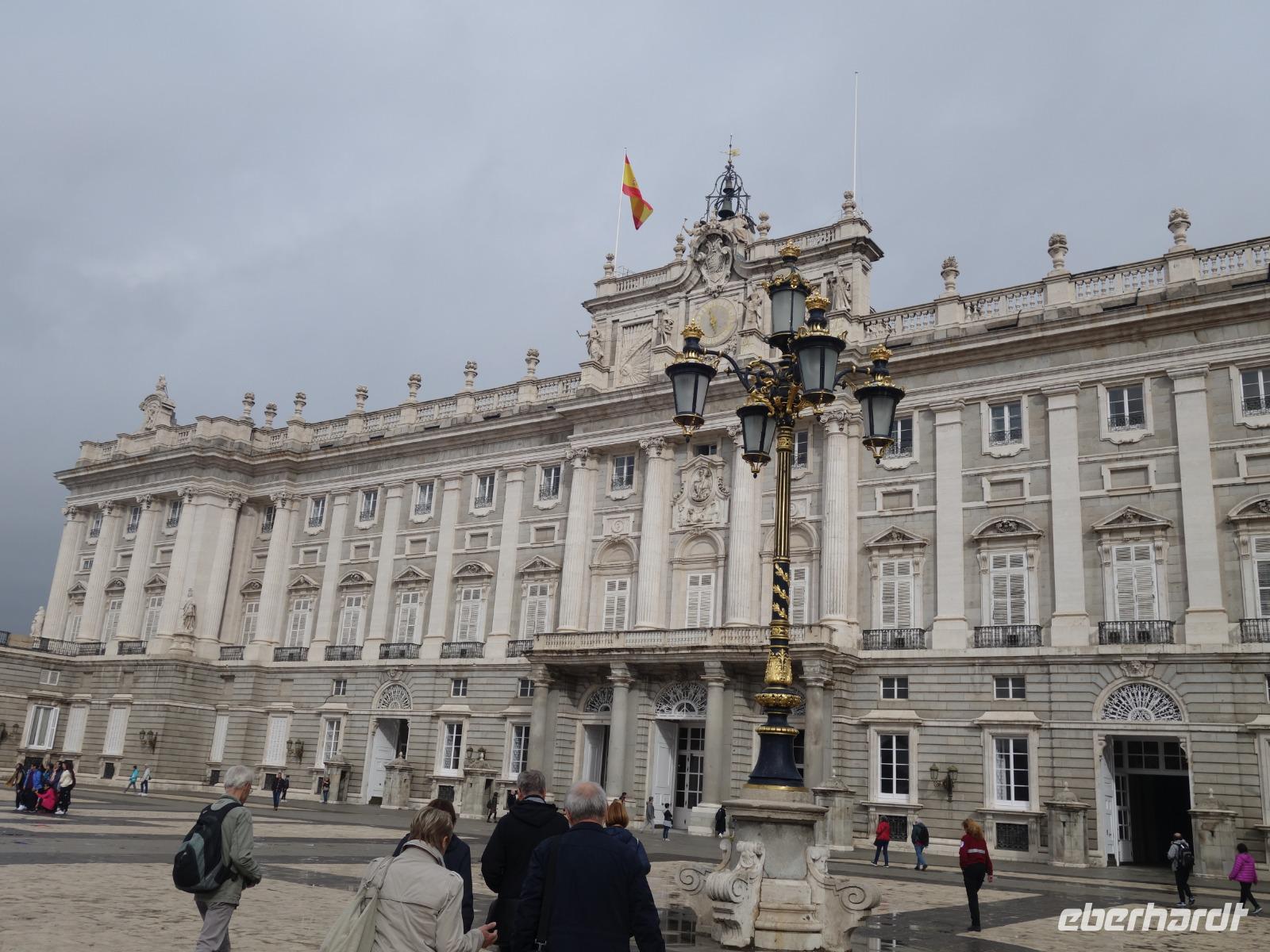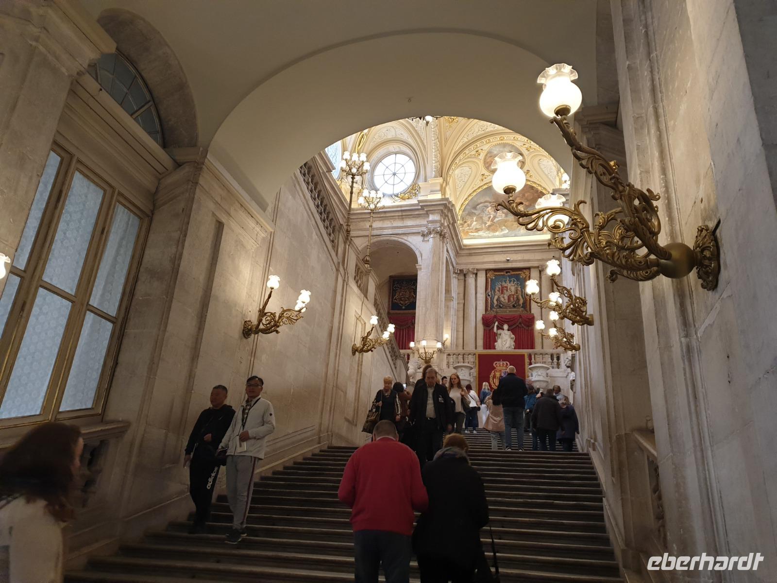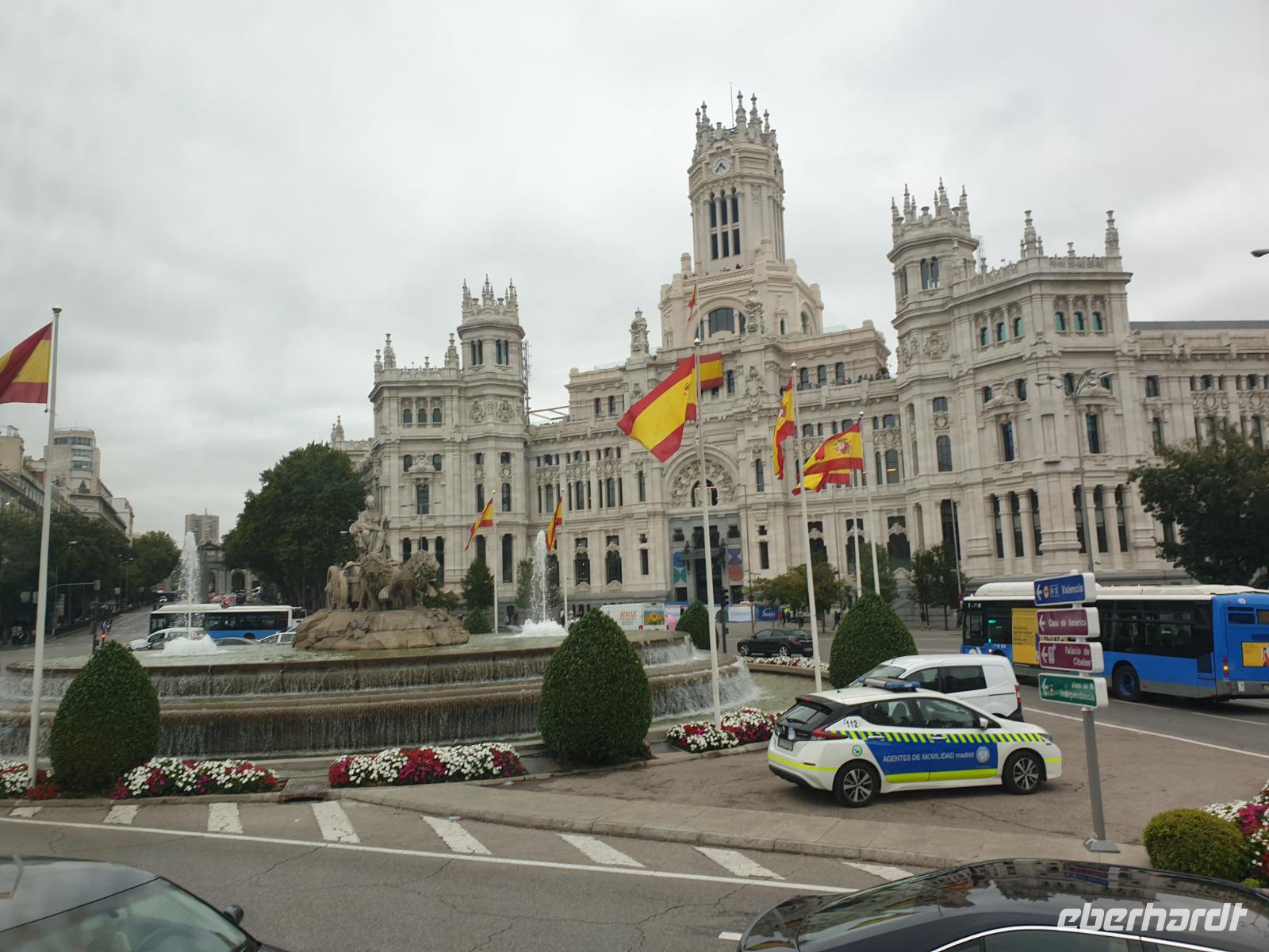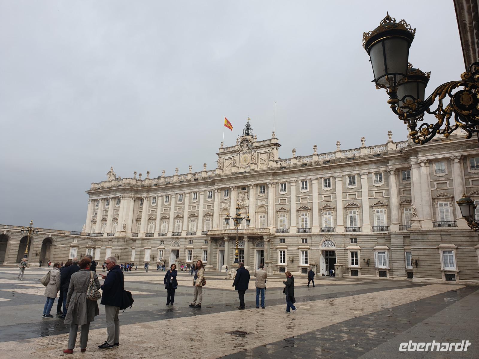 Während des Tages, wenn die Sonne scheint, ist es herrlich in Madrid, aber nachts sinken die Temperaturen. Man darf nicht vergessen, dass sich Madrid in einer Höhe von 665 Metern befindet. Wie gesagt, wenn die Sonne scheint, ist es sehr angenehm, aber am Abend und in der Nacht kann es richtig frisch sein. Heute Morgen entdeckten wir im Hotel den Frühstücksraum und sammelten dort Kraft für den Tag. Um 9 Uhr starteten wir eine Stadtrundfahrt durch Madrid zu den bedeutenstens Sehenwürdigkeiten. Erstmal fuhren wir zu der schönsten und wichtigsten Stierkampf Arena der Welt, im Mudejar-Stil gebaut, die sogennnate Las Ventas. Die Fahrt führte uns über den Retiro Park, die Puerta de Alcala, und das Prado Museum, welches einige heute Nachmittag nochmals individuell besuchen wollten. Wir müssen weiter, da wir einen Termin mit dem König Felipe und Letizia um 11.30 Uhr haben. Die Fahrt führt über Plaza de Cibeles und die schöne 100 Jahre alte Gran Via. Wir verlassen den Bus und fangen einen Stadtrundgang mit Petra durch Madrid an. Auf diese Weise lernten wir die bedeutendsten Sehenswürdigkeiten wie den Königspalast und die Kathedrale La Almudena kennen. Um 11.30 Uhr besuchten wir den imposanten Königspalast, wo wir die verschiedenen Räume und den Thronsaal bestaunen konnten. Gemeinsam mit unserer Reiseleiterin Petra erkundeten wir nun die wunderschöne Altstadt. Wir schlenderten über den weltbekannten Platz, den Plaza de Mayor, wo der San Miguel Markt ist. Unseren Stadtrundgang beendeten wir hier, aber man konnte weiter zum Puerta del Sol oder dem Platz Santa Ana gehen, wo man auf den verschiedenen Terrassen die Sonne geniessen kann.
