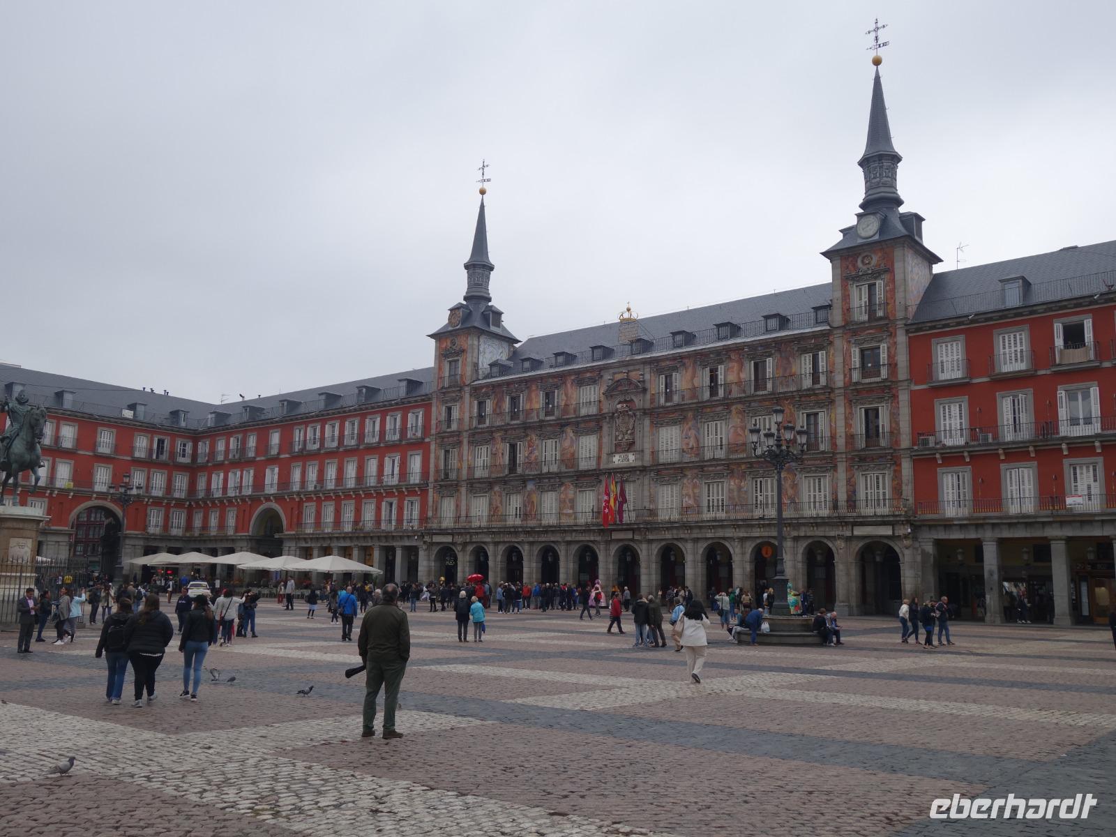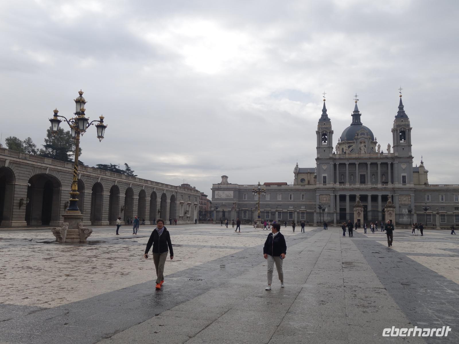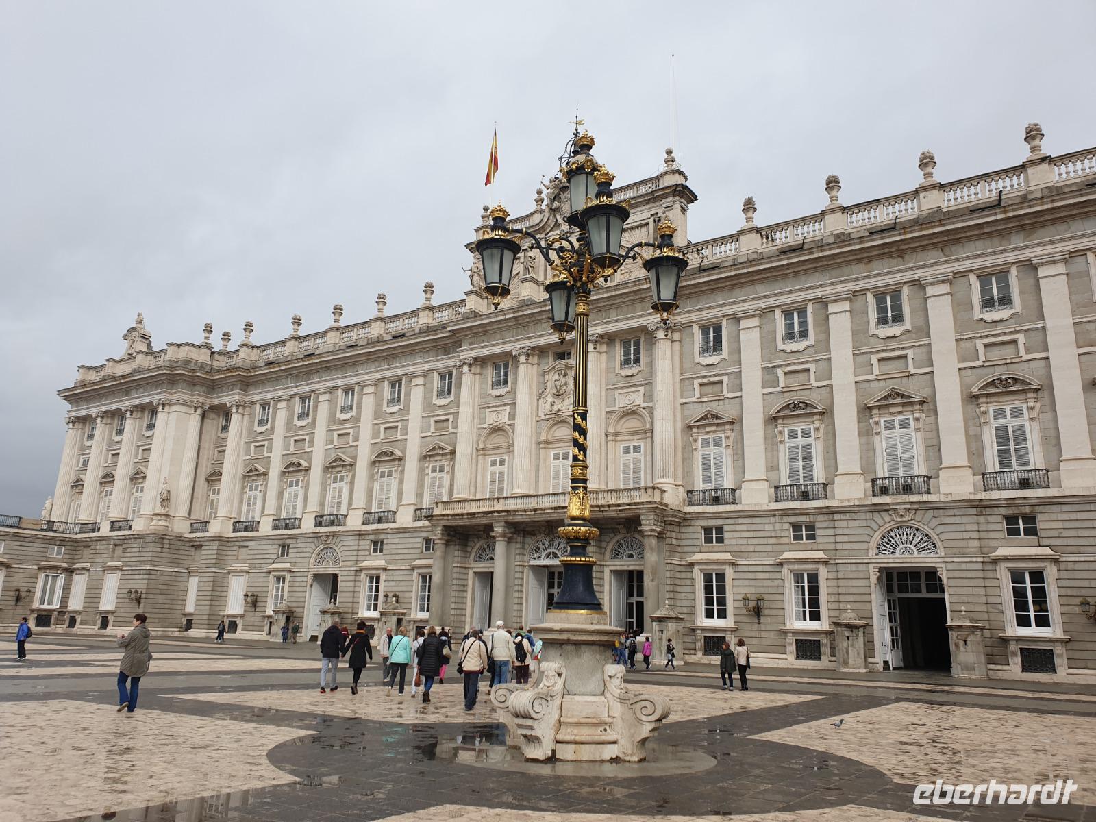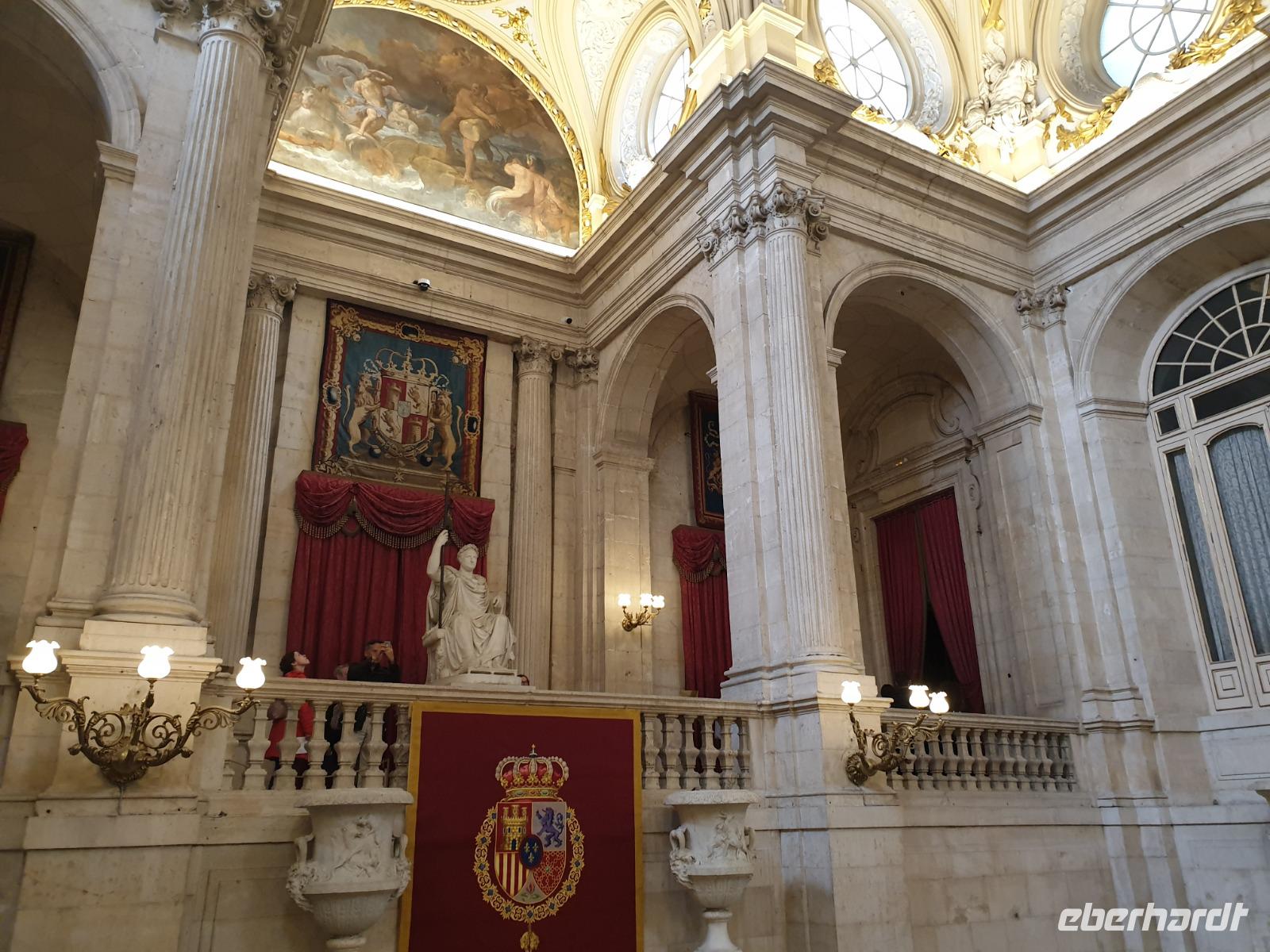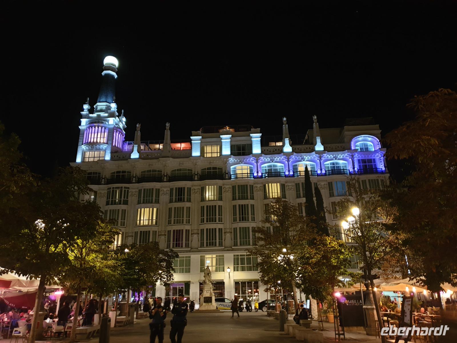 Während des Tages, wenn die Sonne scheint, ist es herrlich in Madrid, aber nachts sinken die Temperaturen. Man darf nicht vergessen, dass sich Madrid in einer Höhe von 665 Metern befindet. Wie gesagt, wenn die Sonne scheint, ist es sehr angenehm, aber am Abend und in der Nacht kann es richtig frisch sein. Heute Morgen entdeckten wir im Hotel den Frühstücksraum und sammelten dort Kraft für den Tag. Um 9 Uhr starteten wir eine Stadtrundfahrt durch Madrid zu den bedeutenstens Sehenwürdigkeiten. Erstmal fuhren wir zu der schönsten und wichtigsten Stierkampf Arena der Welt, im Mudejar-Stil gebaut, die sogennnate Las Ventas. Die Fahrt führte uns über den Retiro Park, die Puerta de Alcala, und das Prado Museum, welches einige heute Nachmittag nochmals individuell besuchen wollten. Wir müssen weiter, da wir einen Termin mit dem König Felipe und Letizia um 11.30 Uhr haben. Die Fahrt führt über Plaza de Cibeles und die schöne 100 Jahre alte Gran Via. Wir verlassen den Bus und fangen einen Stadtrundgang mit Petra durch Madrid an. Auf diese Weise lernten wir die bedeutendsten Sehenswürdigkeiten wie den Königspalast und die Kathedrale La Almudena kennen. Um 11.30 Uhr besuchten wir den imposanten Königspalast, wo wir die verschiedenen Räume und den Thronsaal bestaunen konnten. Gemeinsam mit unserer Reiseleiterin Petra erkundeten wir nun die wunderschöne Altstadt. Wir schlenderten über den weltbekannten Platz, den Plaza de Mayor, wo der San Miguel Markt ist. Unseren Stadtrundgang beendeten wir hier, aber man konnte weiter zum Puerta del Sol oder dem Platz Santa Ana gehen, wo man auf den verschiedenen Terrassen die Sonne geniessen kann.
