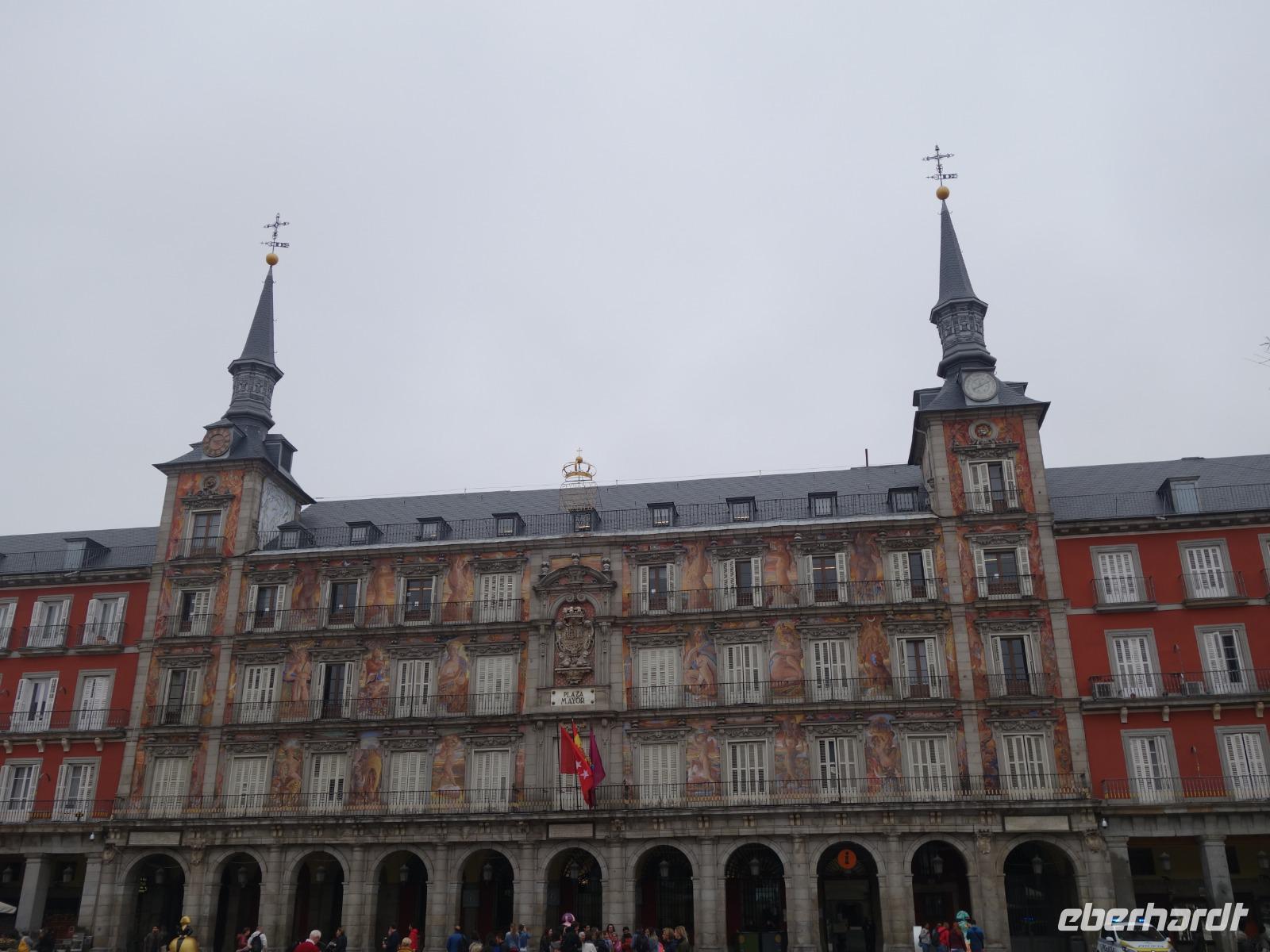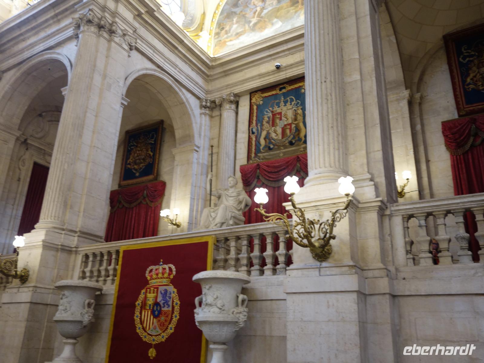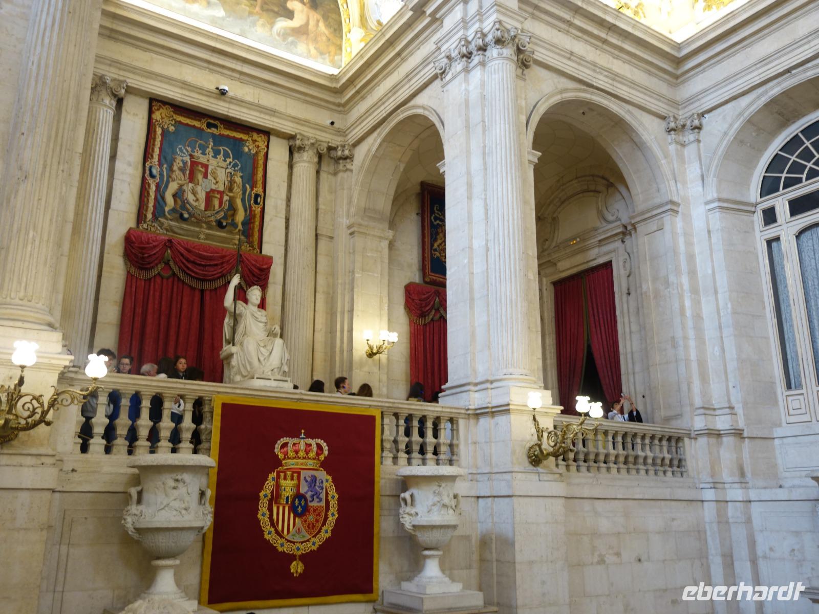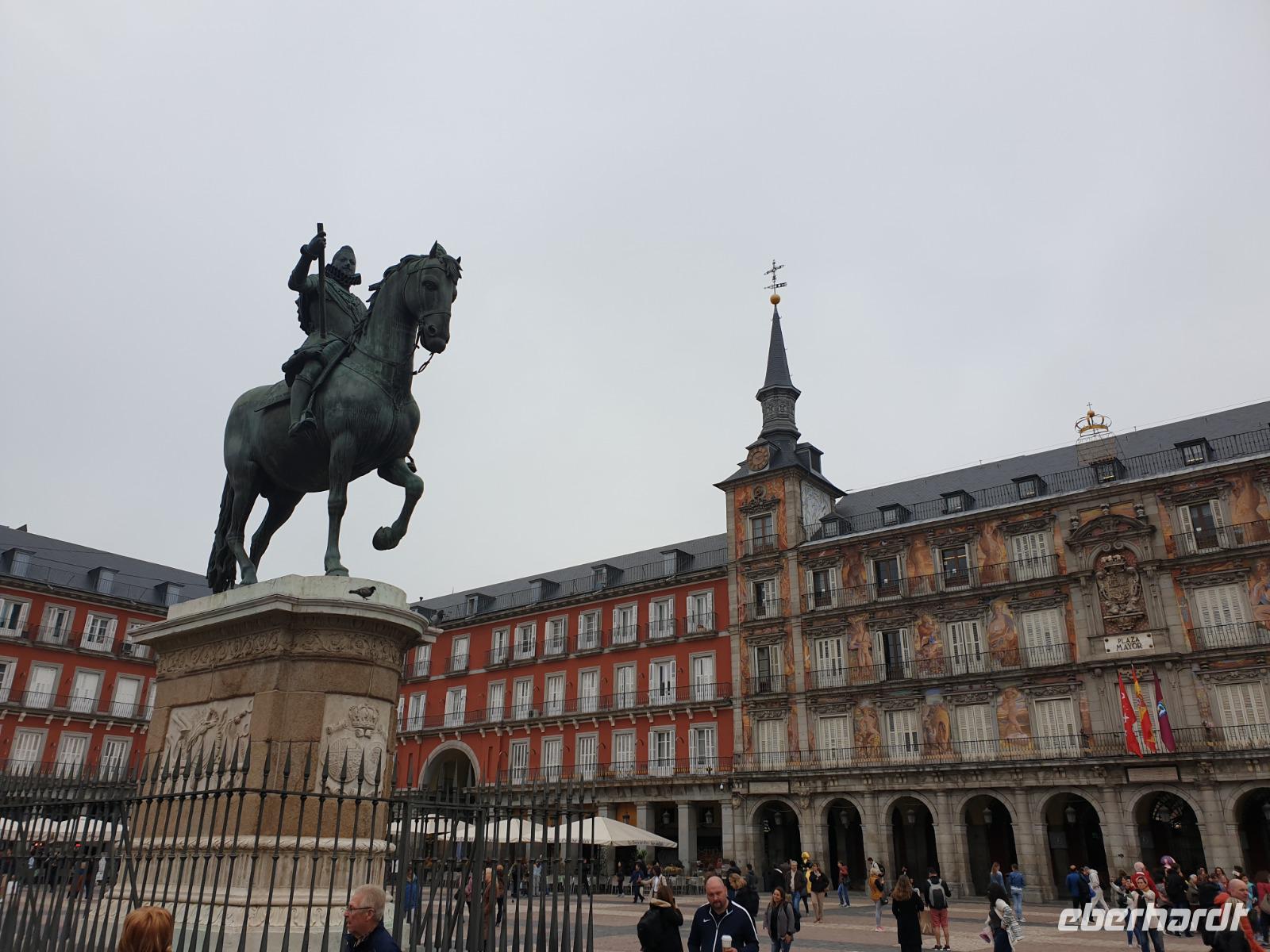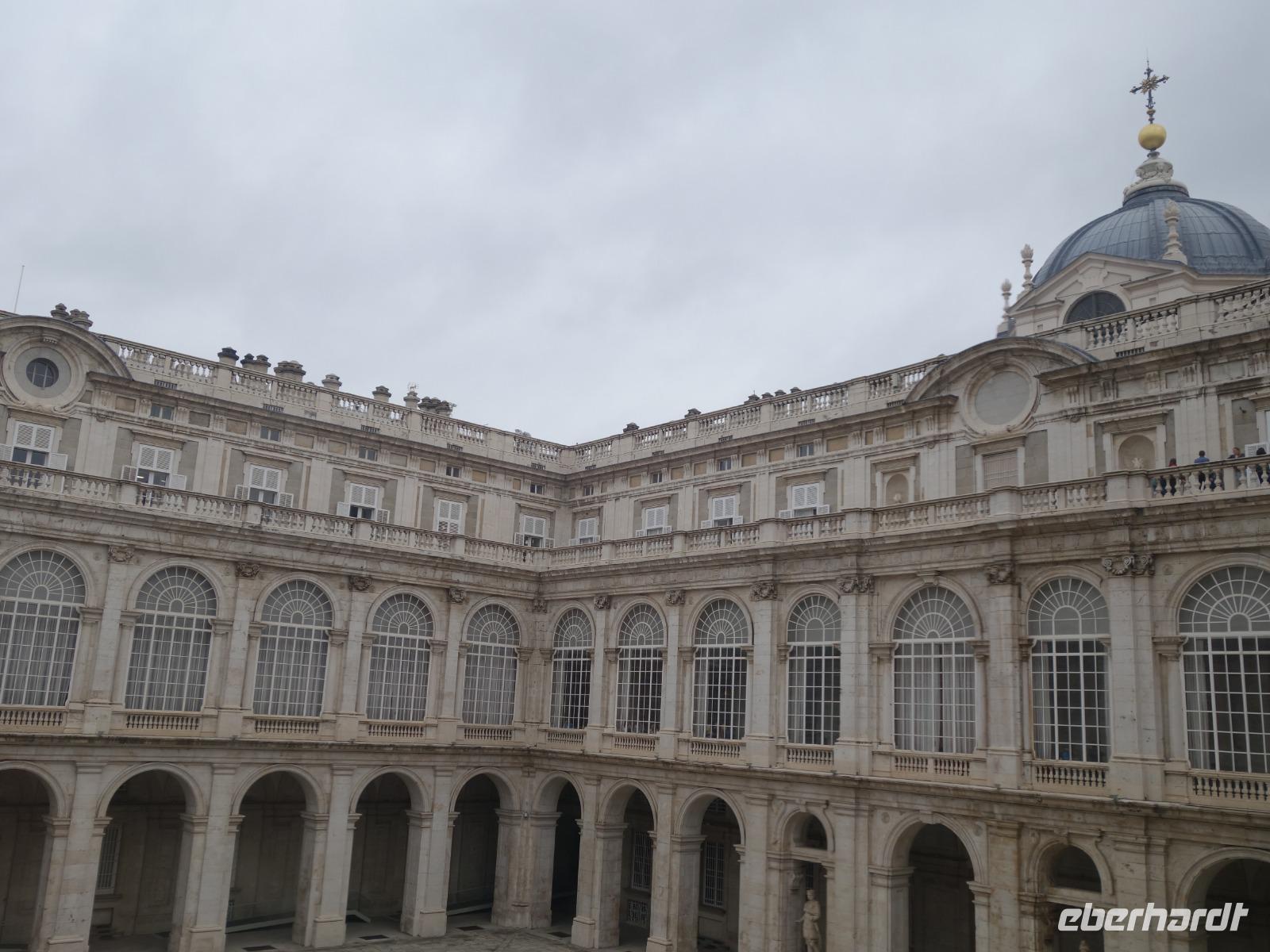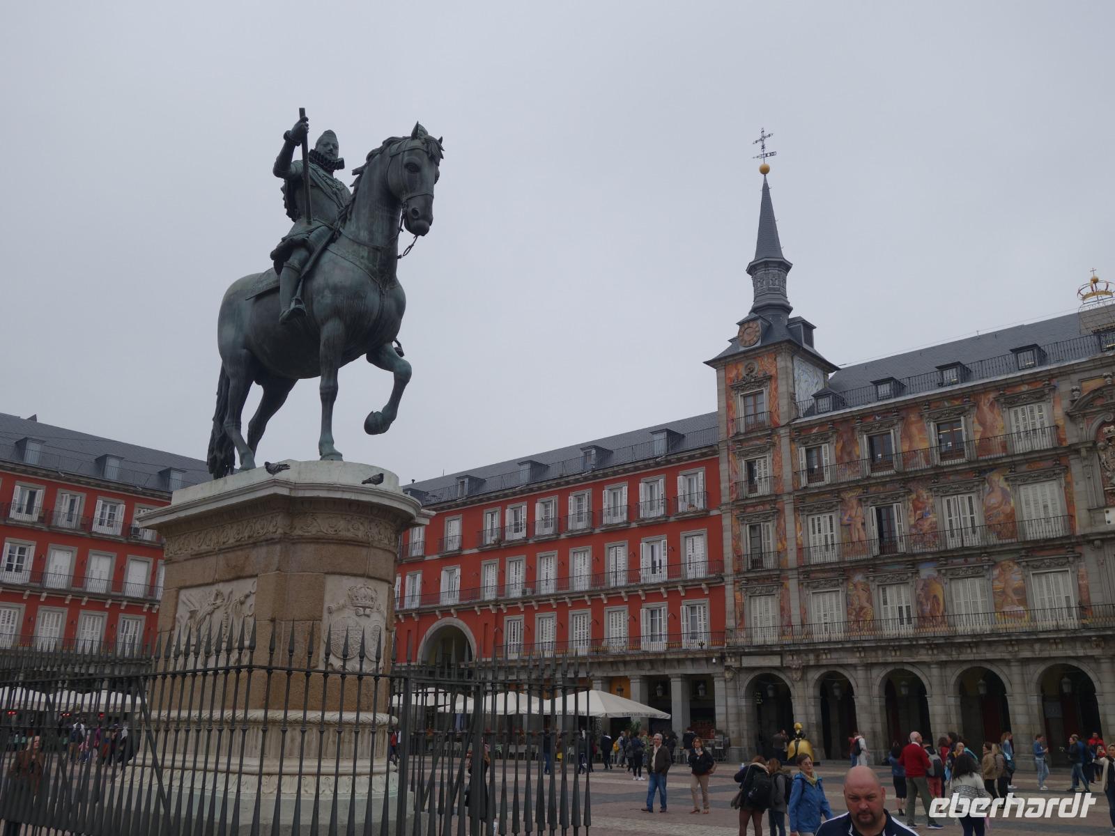 Während des Tages, wenn die Sonne scheint, ist es herrlich in Madrid, aber nachts sinken die Temperaturen. Man darf nicht vergessen, dass sich Madrid in einer Höhe von 665 Metern befindet. Wie gesagt, wenn die Sonne scheint, ist es sehr angenehm, aber am Abend und in der Nacht kann es richtig frisch sein. Heute Morgen entdeckten wir im Hotel den Frühstücksraum und sammelten dort Kraft für den Tag. Um 9 Uhr starteten wir eine Stadtrundfahrt durch Madrid zu den bedeutenstens Sehenwürdigkeiten. Erstmal fuhren wir zu der schönsten und wichtigsten Stierkampf Arena der Welt, im Mudejar-Stil gebaut, die sogennnate Las Ventas. Die Fahrt führte uns über den Retiro Park, die Puerta de Alcala, und das Prado Museum, welches einige heute Nachmittag nochmals individuell besuchen wollten. Wir müssen weiter, da wir einen Termin mit dem König Felipe und Letizia um 11.30 Uhr haben. Die Fahrt führt über Plaza de Cibeles und die schöne 100 Jahre alte Gran Via. Wir verlassen den Bus und fangen einen Stadtrundgang mit Petra durch Madrid an. Auf diese Weise lernten wir die bedeutendsten Sehenswürdigkeiten wie den Königspalast und die Kathedrale La Almudena kennen. Um 11.30 Uhr besuchten wir den imposanten Königspalast, wo wir die verschiedenen Räume und den Thronsaal bestaunen konnten. Gemeinsam mit unserer Reiseleiterin Petra erkundeten wir nun die wunderschöne Altstadt. Wir schlenderten über den weltbekannten Platz, den Plaza de Mayor, wo der San Miguel Markt ist. Unseren Stadtrundgang beendeten wir hier, aber man konnte weiter zum Puerta del Sol oder dem Platz Santa Ana gehen, wo man auf den verschiedenen Terrassen die Sonne geniessen kann.