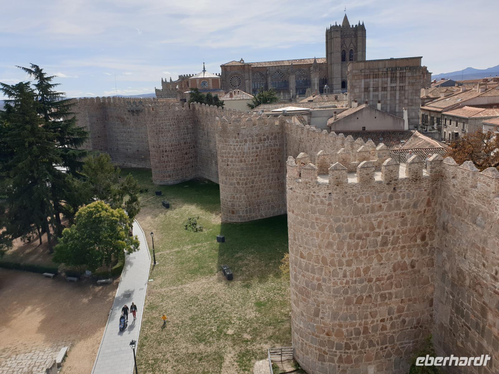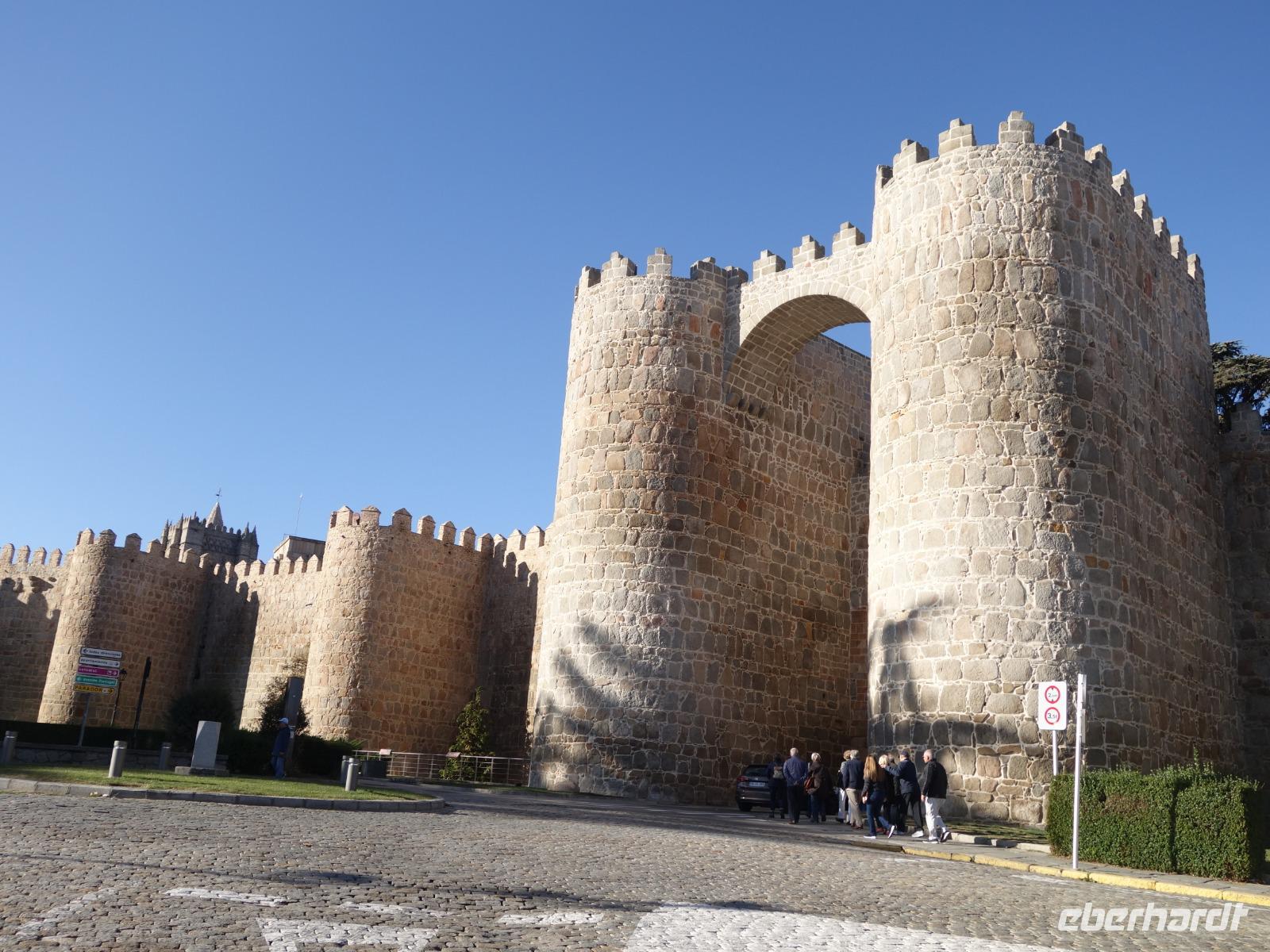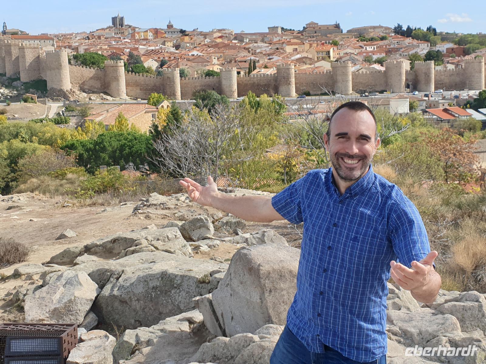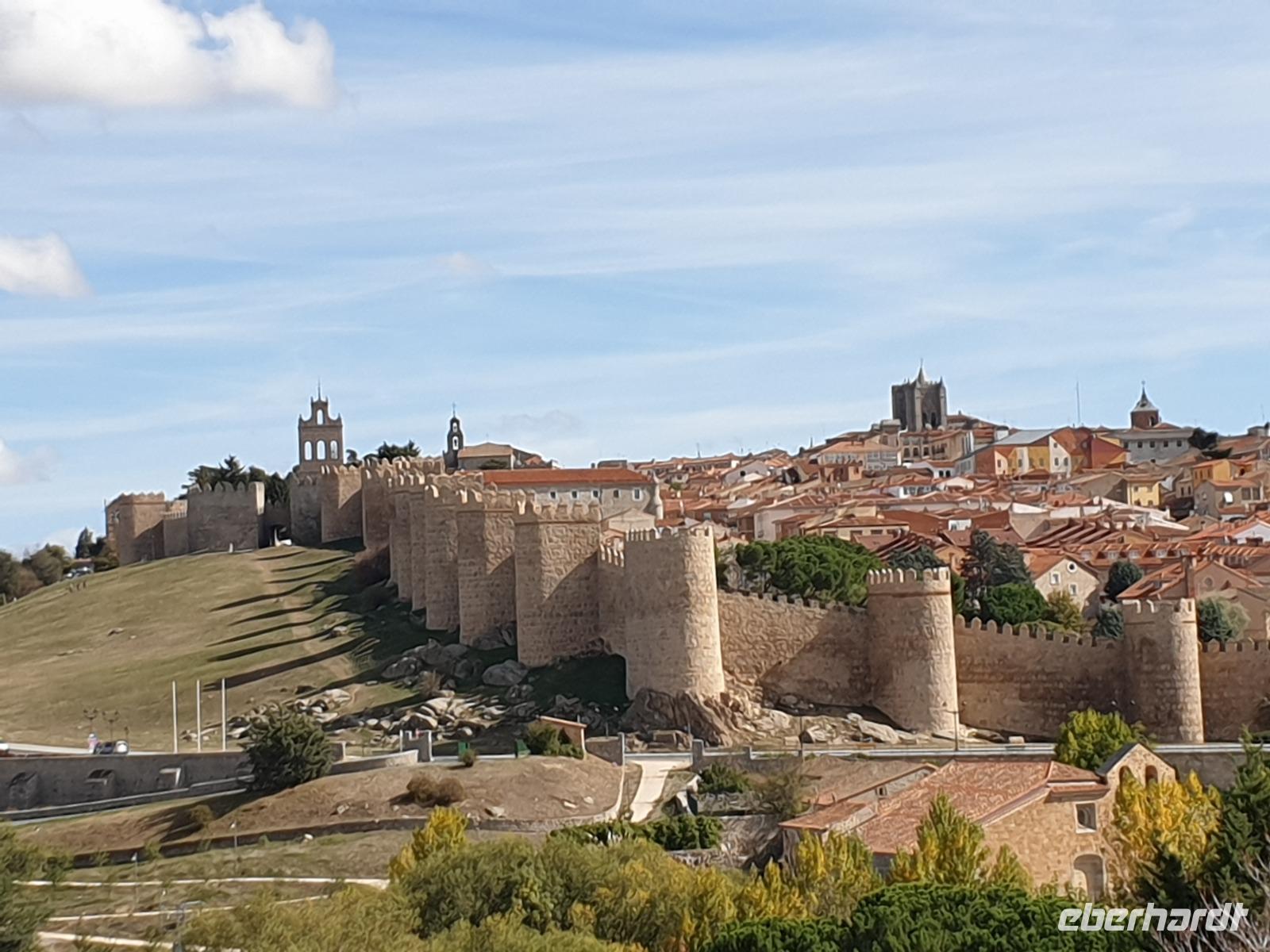 Am früh Vormittag führen wir nach Avila. Mit einer Höhenlage von über 1.000 Metern bietet die Provinzhauptstadt aus römischer Zeit einen ganz besonderen Charme. Vom Aussichtspunkt Cuatro Postes genießen wir am Nachmittag dann einen wunderbaren Blick auf die majestätisch anmutende Stadtmauer mit ihren zahlreichen Türmchen und Toren. Bei diesem Ausblick der vier Pfähle (Cuatro Postes) können wir richtig die ganze alt Mauer erstaunen. Die Sonne scheint gerade richtig, um diese wunderschöne lange Mauer zu fotografieren, die die ganze Stadt einkreist. Während eines Stadtrundgangs mit David sehen wir die Kathedrale und die Kirche Convento de Santa Teresa, die der heiligen Teresa von Avila gewidmet ist. Am späten Nachmittag fahren wir dann zurück nach Salamanca.