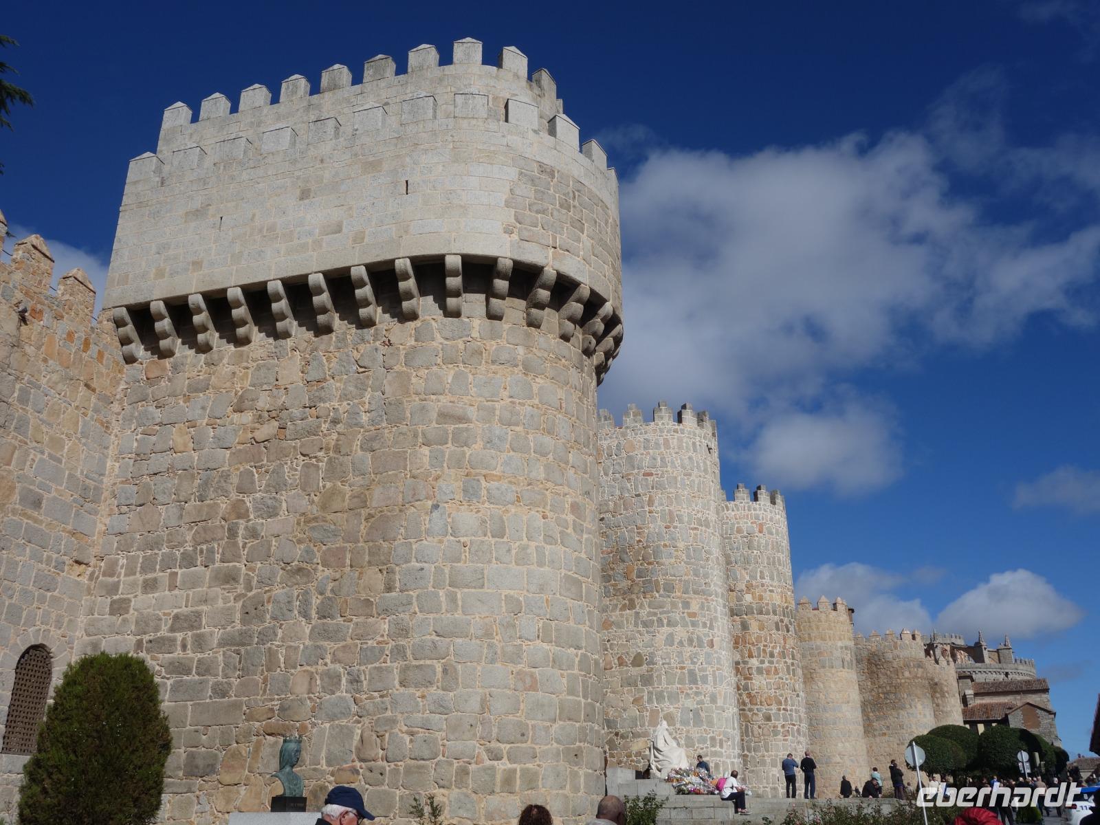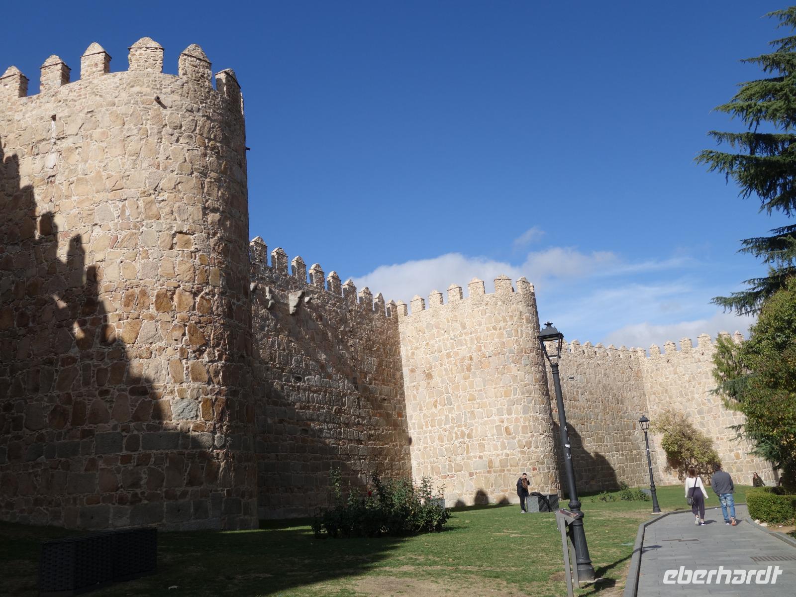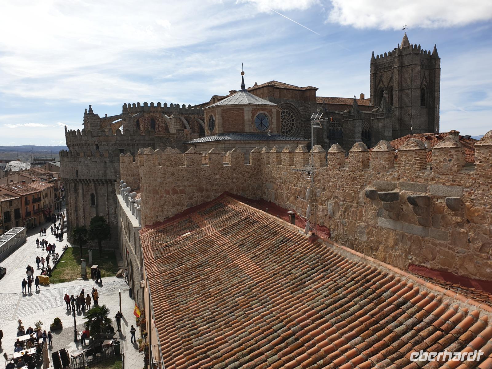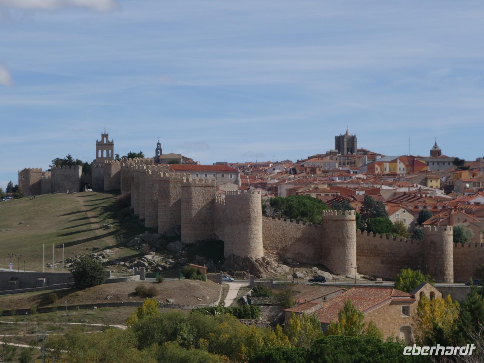 Am früh Vormittag führen wir nach Avila. Mit einer Höhenlage von über 1.000 Metern bietet die Provinzhauptstadt aus römischer Zeit einen ganz besonderen Charme. Vom Aussichtspunkt Cuatro Postes genießen wir am Nachmittag dann einen wunderbaren Blick auf die majestätisch anmutende Stadtmauer mit ihren zahlreichen Türmchen und Toren. Bei diesem Ausblick der vier Pfähle (Cuatro Postes) können wir richtig die ganze alt Mauer erstaunen. Die Sonne scheint gerade richtig, um diese wunderschöne lange Mauer zu fotografieren, die die ganze Stadt einkreist. Während eines Stadtrundgangs mit David sehen wir die Kathedrale und die Kirche Convento de Santa Teresa, die der heiligen Teresa von Avila gewidmet ist. Am späten Nachmittag fahren wir dann zurück nach Salamanca.