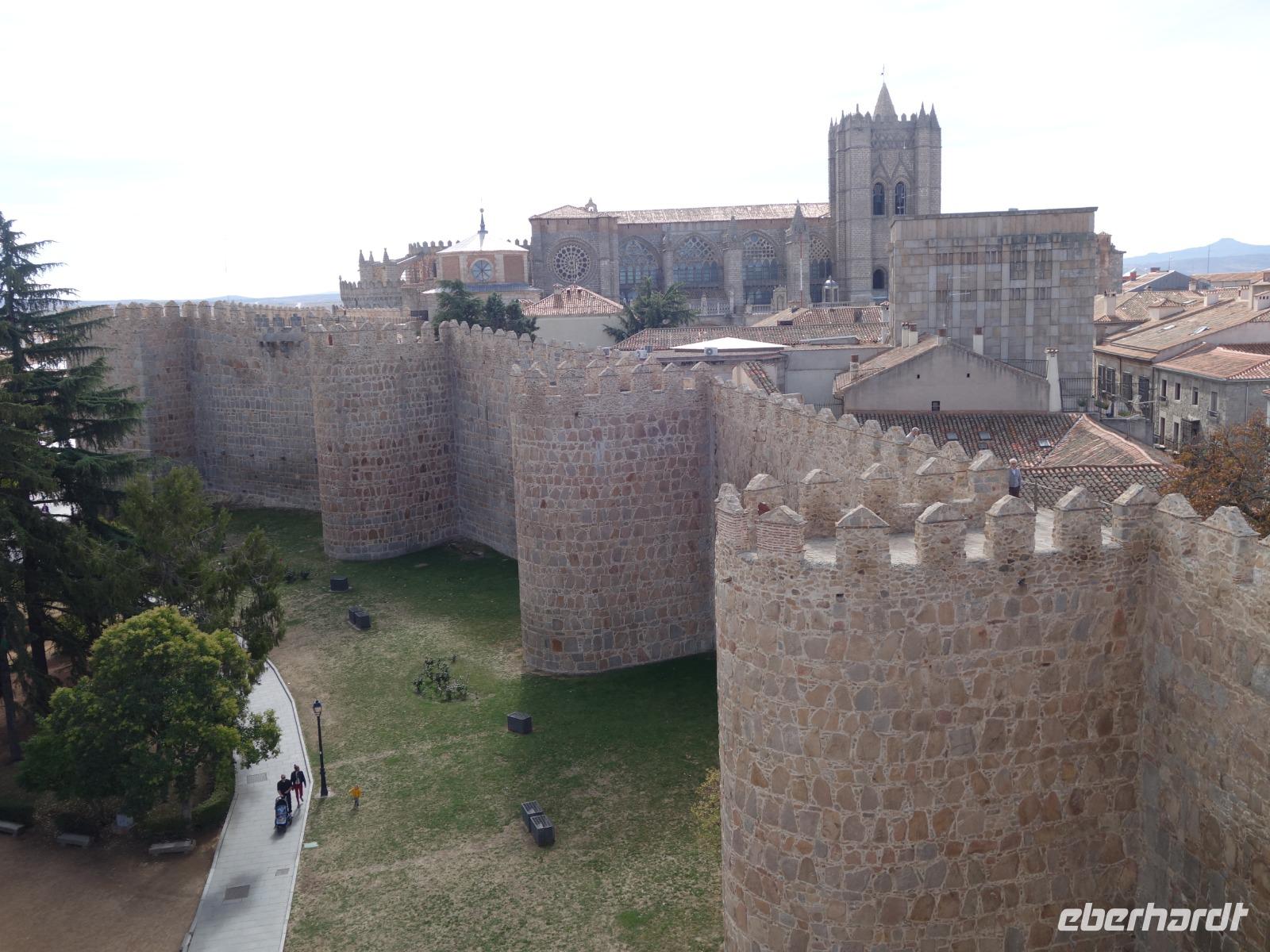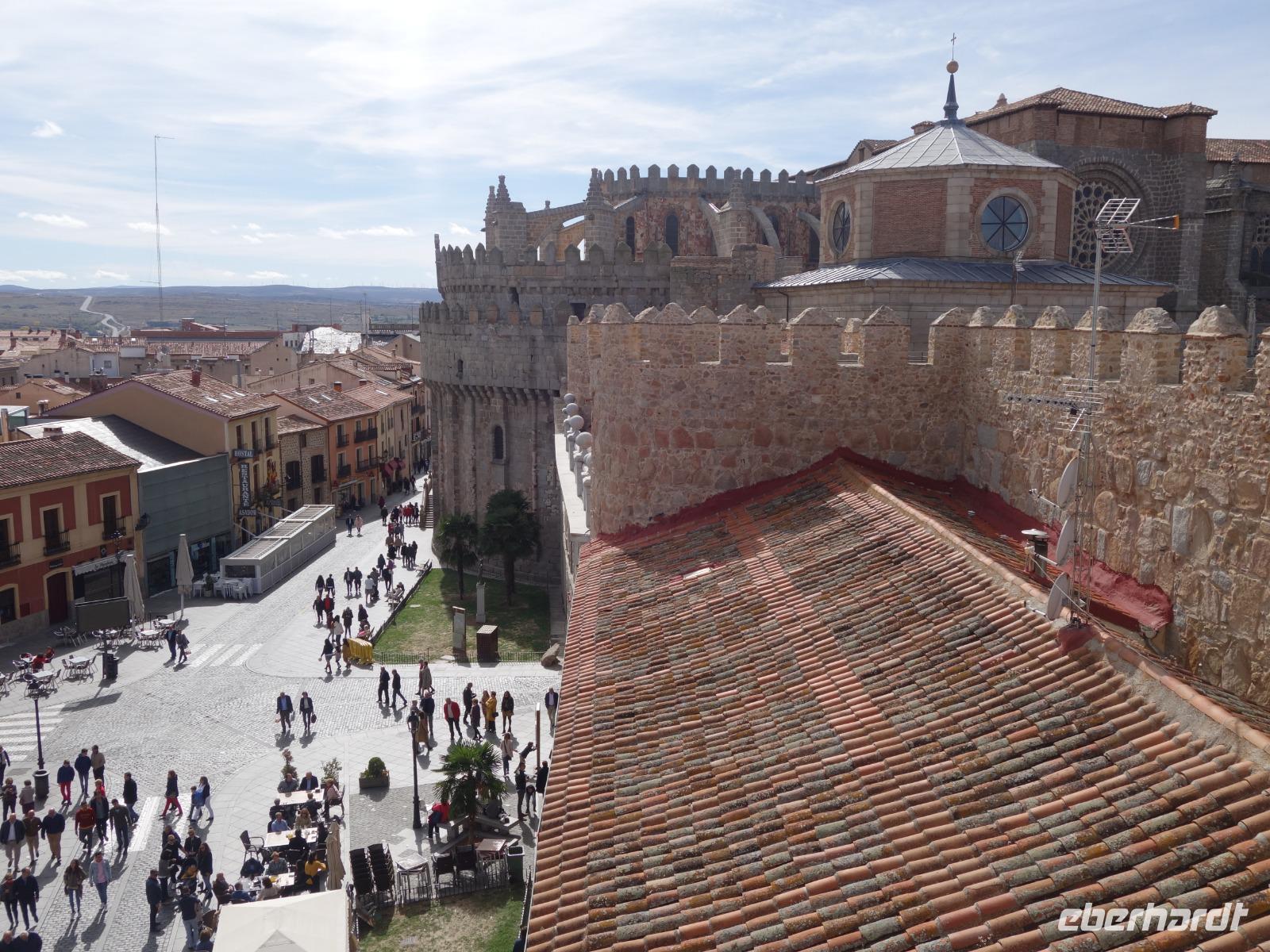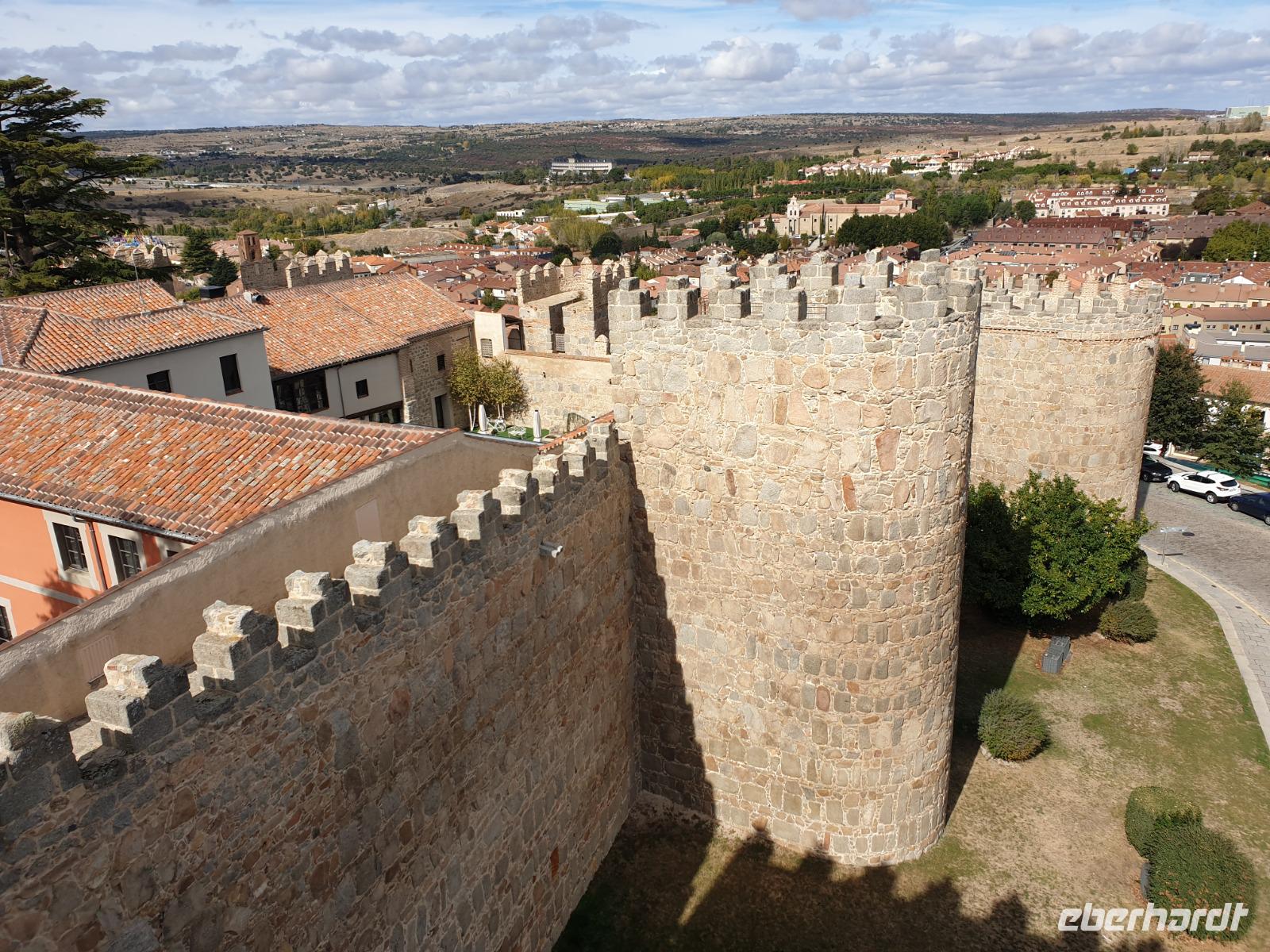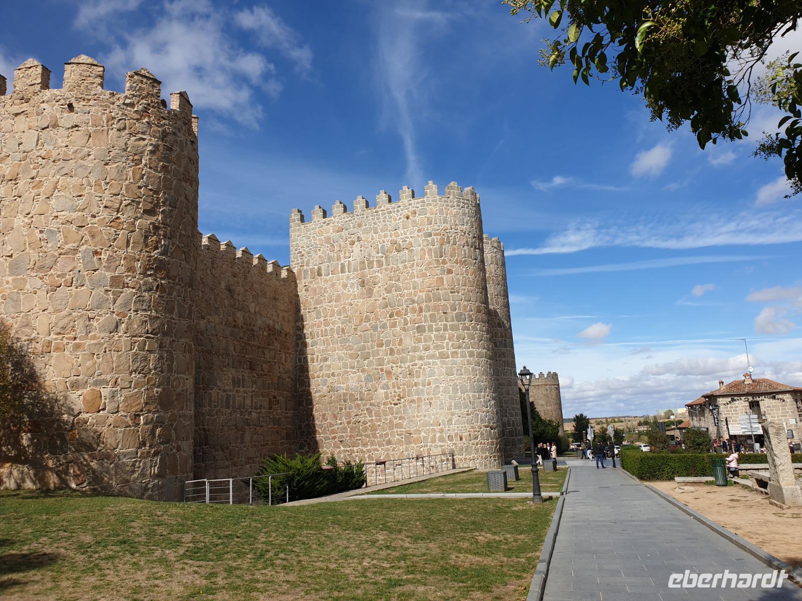 Am früh Vormittag führen wir nach Avila. Mit einer Höhenlage von über 1.000 Metern bietet die Provinzhauptstadt aus römischer Zeit einen ganz besonderen Charme. Vom Aussichtspunkt Cuatro Postes genießen wir am Nachmittag dann einen wunderbaren Blick auf die majestätisch anmutende Stadtmauer mit ihren zahlreichen Türmchen und Toren. Bei diesem Ausblick der vier Pfähle (Cuatro Postes) können wir richtig die ganze alt Mauer erstaunen. Die Sonne scheint gerade richtig, um diese wunderschöne lange Mauer zu fotografieren, die die ganze Stadt einkreist. Während eines Stadtrundgangs mit David sehen wir die Kathedrale und die Kirche Convento de Santa Teresa, die der heiligen Teresa von Avila gewidmet ist. Am späten Nachmittag fahren wir dann zurück nach Salamanca.