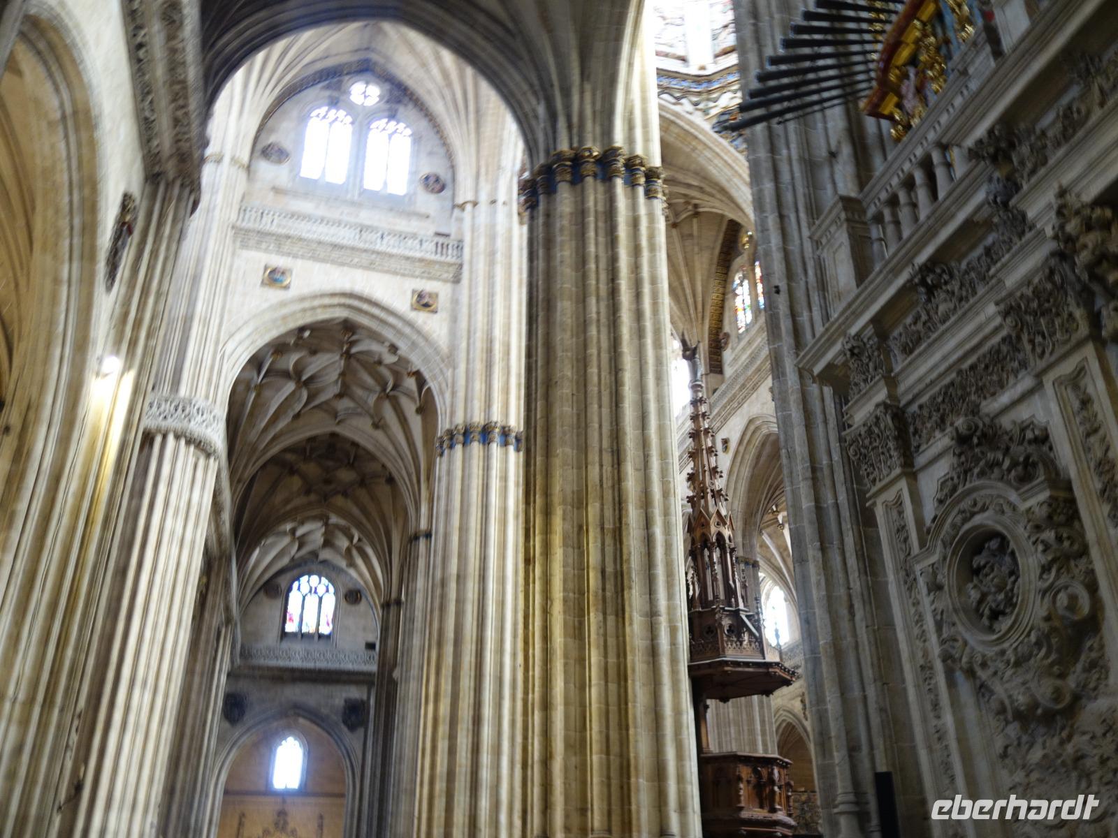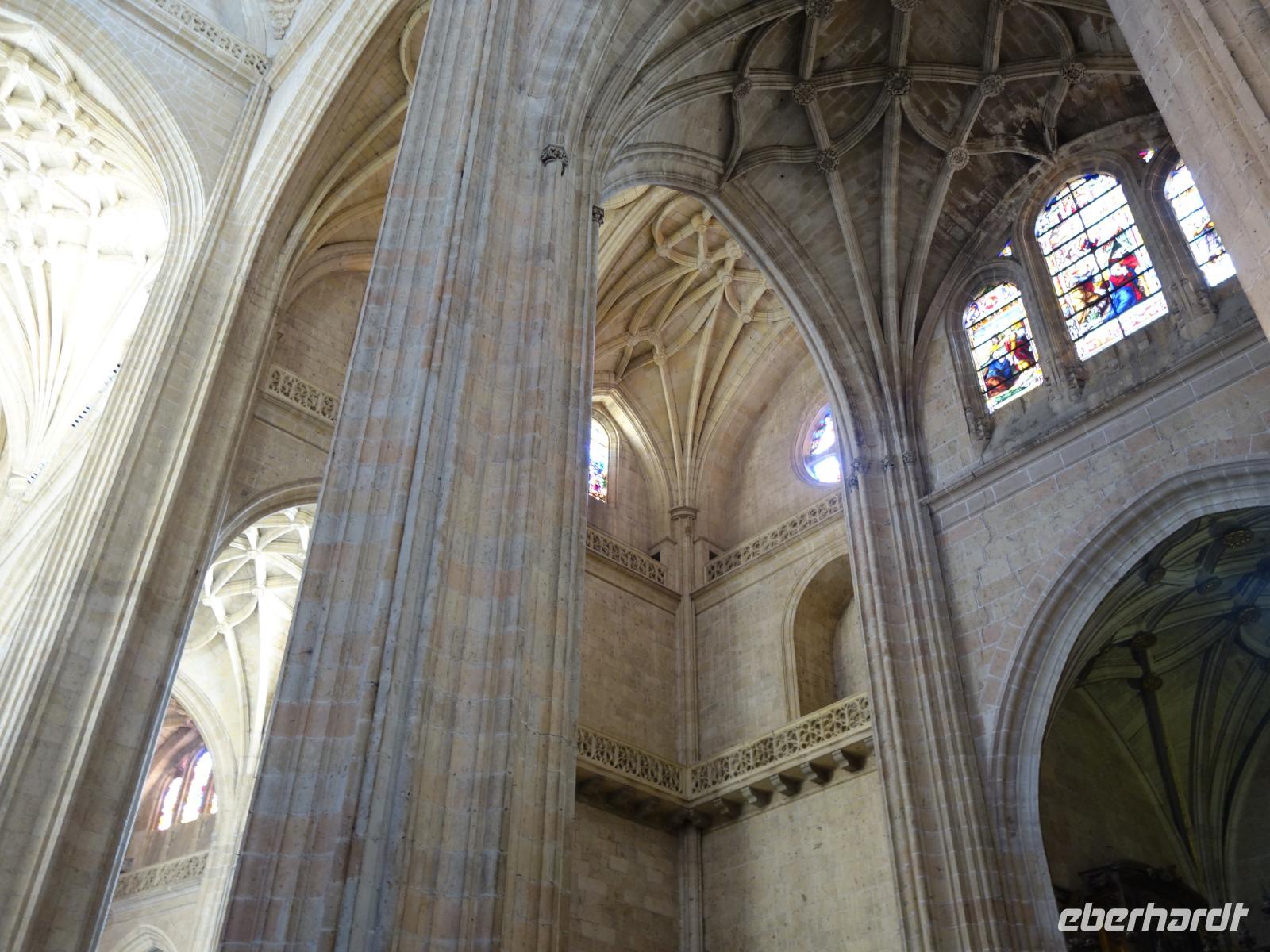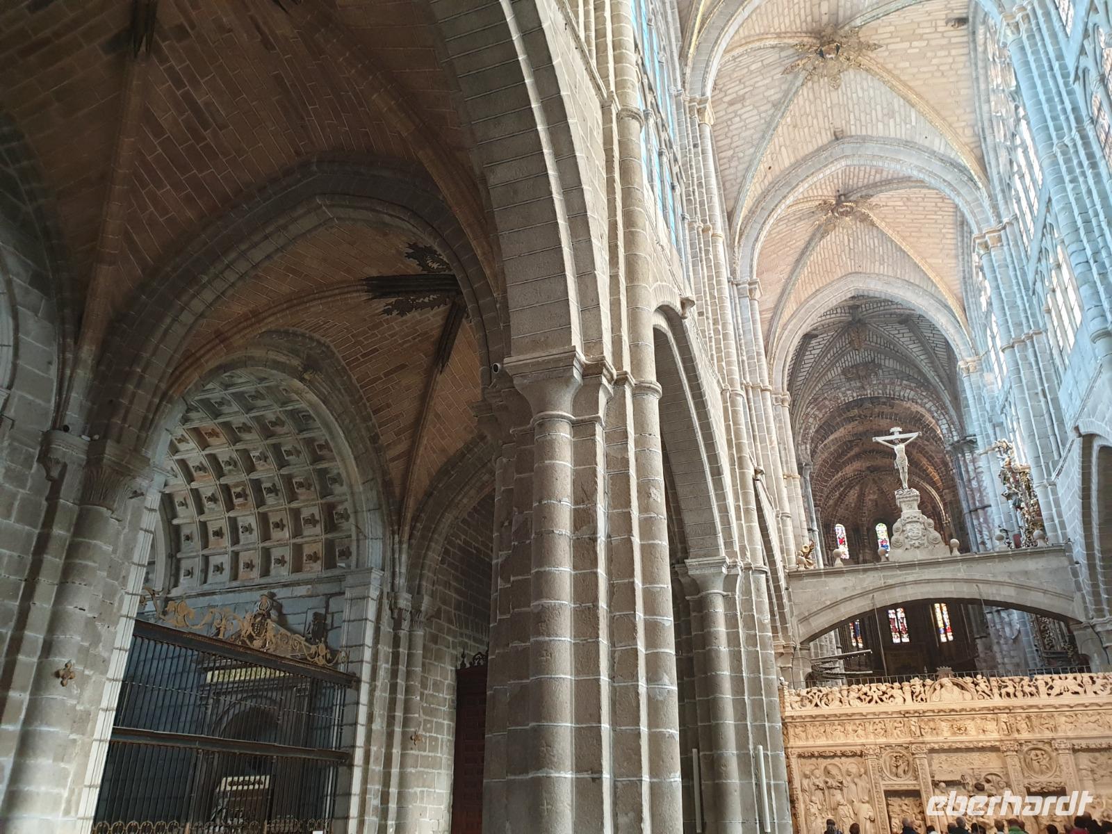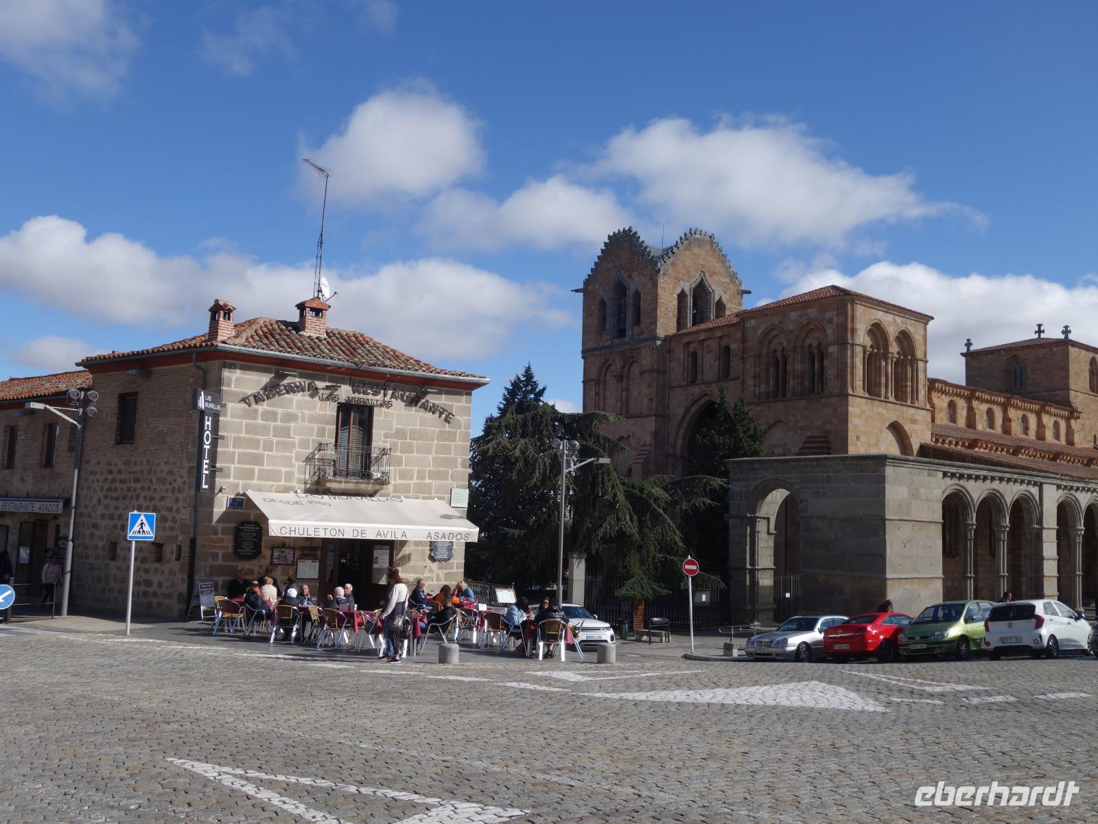 Am früh Vormittag führen wir nach Avila. Mit einer Höhenlage von über 1.000 Metern bietet die Provinzhauptstadt aus römischer Zeit einen ganz besonderen Charme. Vom Aussichtspunkt Cuatro Postes genießen wir am Nachmittag dann einen wunderbaren Blick auf die majestätisch anmutende Stadtmauer mit ihren zahlreichen Türmchen und Toren. Bei diesem Ausblick der vier Pfähle (Cuatro Postes) können wir richtig die ganze alt Mauer erstaunen. Die Sonne scheint gerade richtig, um diese wunderschöne lange Mauer zu fotografieren, die die ganze Stadt einkreist. Während eines Stadtrundgangs mit David sehen wir die Kathedrale und die Kirche Convento de Santa Teresa, die der heiligen Teresa von Avila gewidmet ist. Am späten Nachmittag fahren wir dann zurück nach Salamanca.