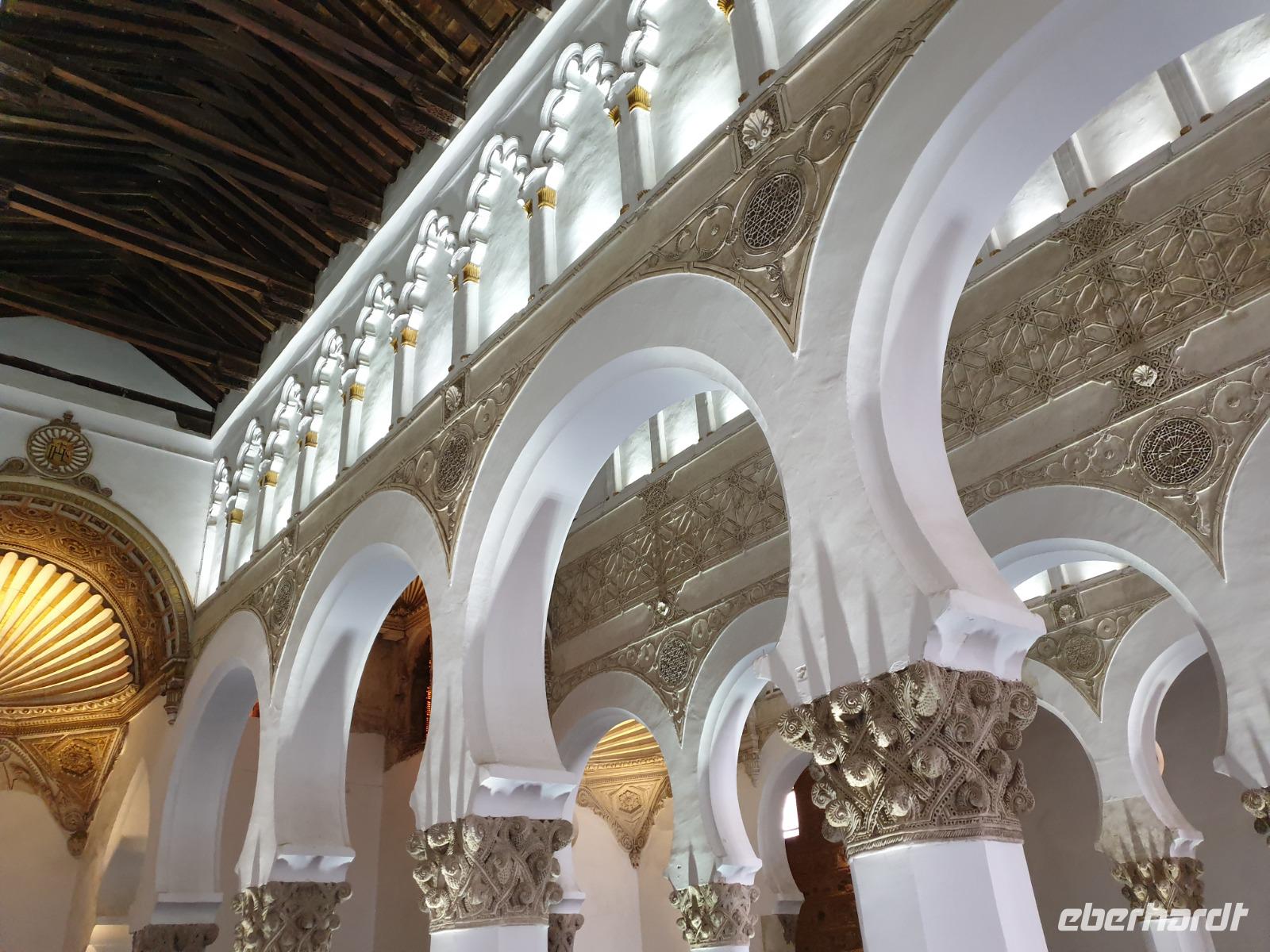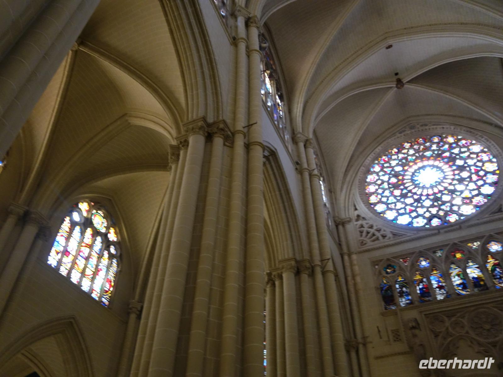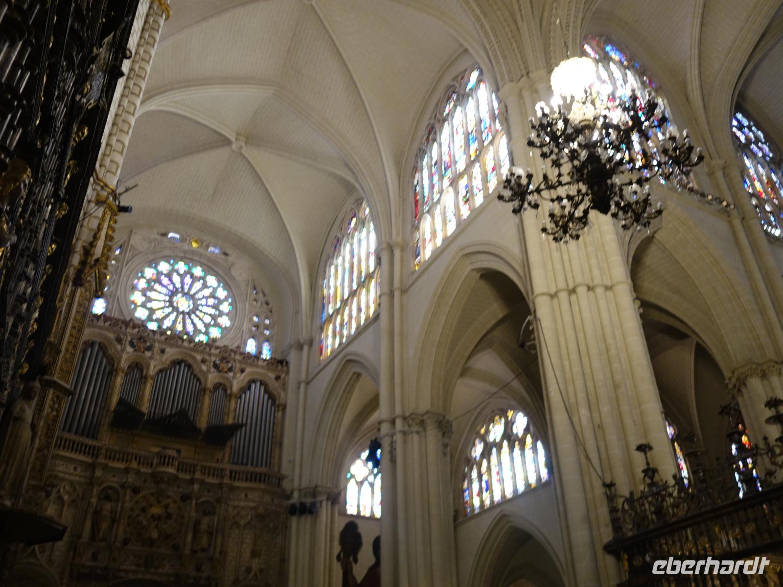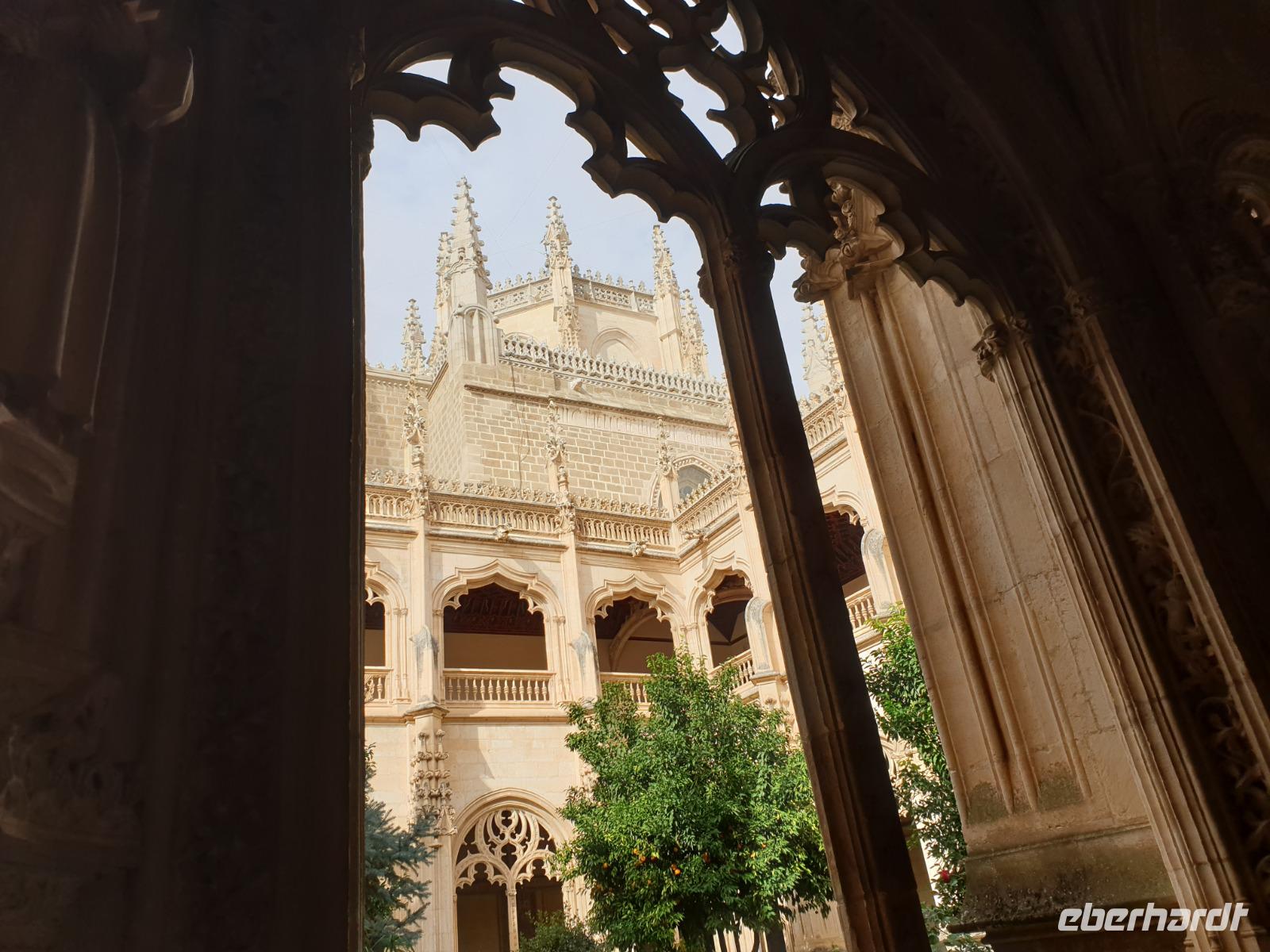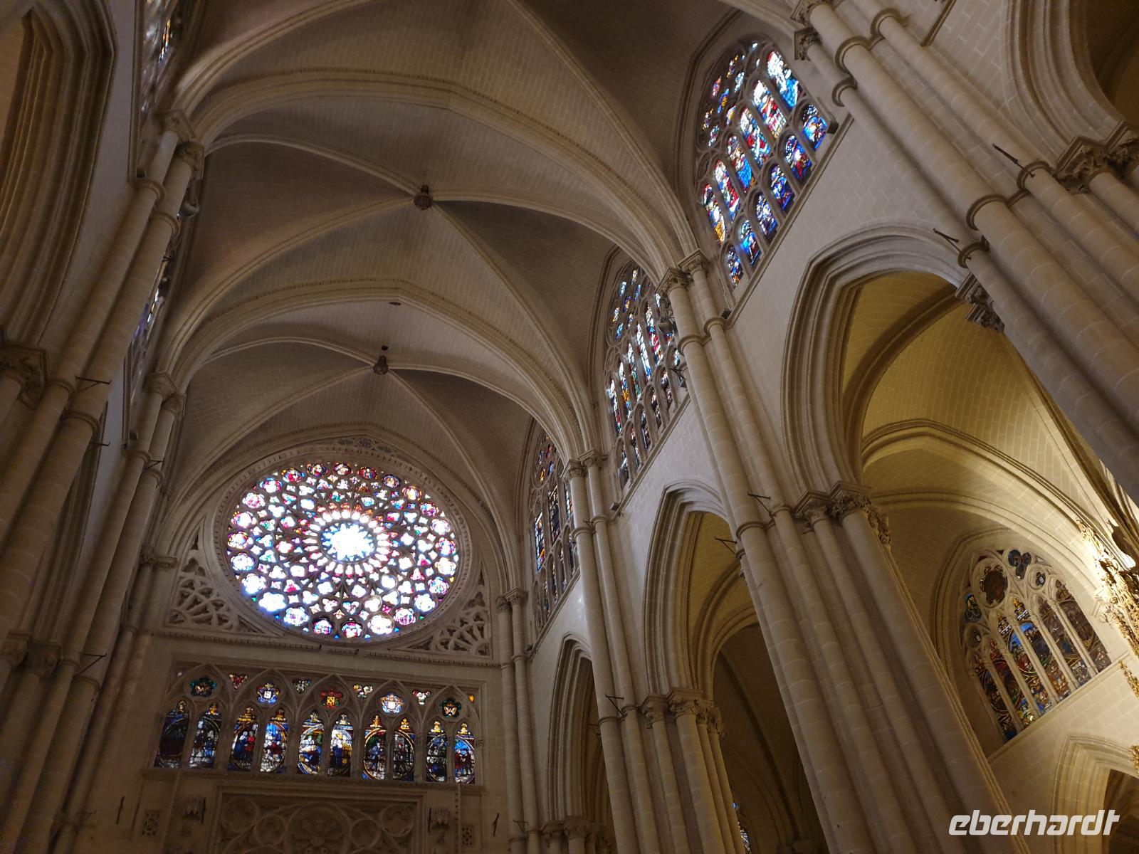 Wir spazierten gemeinsam durch die Straßen von Toledo. Ganz am Ende besuchten wir die imposante Kathedrale. Dieser Dom hat 2 Türme, aber einer war nicht zu Ende gebaut worden, da dann das Geld gefehlt hatte. Von innen erinnerte uns dieser Dom an den von Sevilla oder Malaga. Erstmals machten wir eine kleine Mittagspause an der Sonne. Weiter ging zu der jüdischen Synagoge „Santa Maria La Blanca". Toledo ist ein einzigartiges und gutes Beispiel, wie damals Christen, Juden und Muslime in Friede zusammenleben konnten. Unseren letzten Besuch machten wir bei der San Juan de Los Reyes Kirche. Nach dem Stadtbummel fuhren wir zurück zu unserem Hotel in Madrid, wo viele von uns in einer typischen Tapas-Bar den Tag in spanischem Ambiente ausklingen ließen. Wir hatten wieder Tapas heute. Wir wurden satt davon... und wie. Aber wir hatten noch Platz für Nachtisch. Einige von uns wollten noch richtig Madrid in die Nacht erleben und besuchten die Terrasse oben von Melia ME Hotel am Santa Ana Platz. Von hier oben hat man einen schönen Blick über die Stadt. Heute mit Vollmond. Zurück im Hotel mit sehr gute Stimmung und Laune wünschten wir uns alle eine gute Nacht.