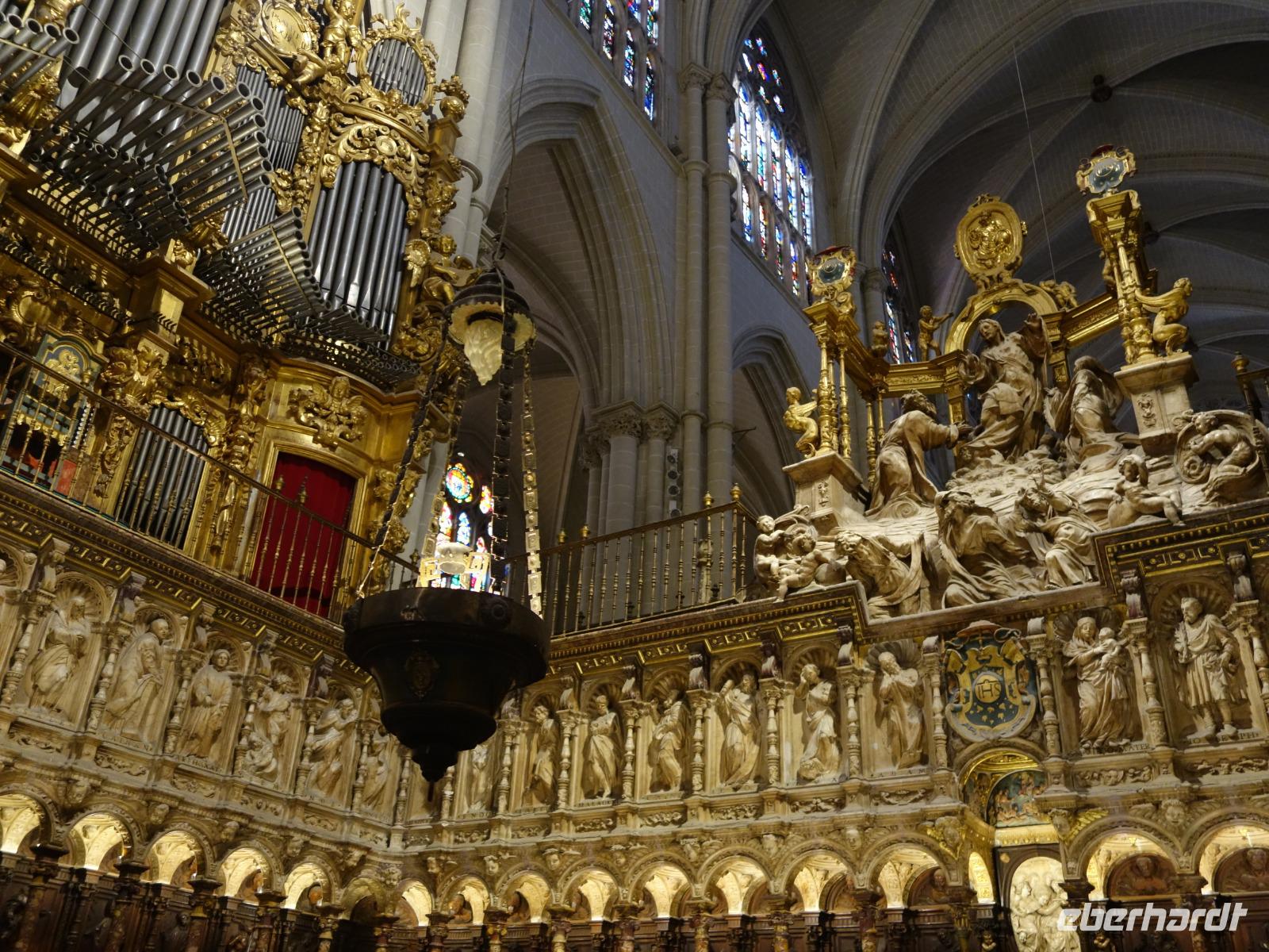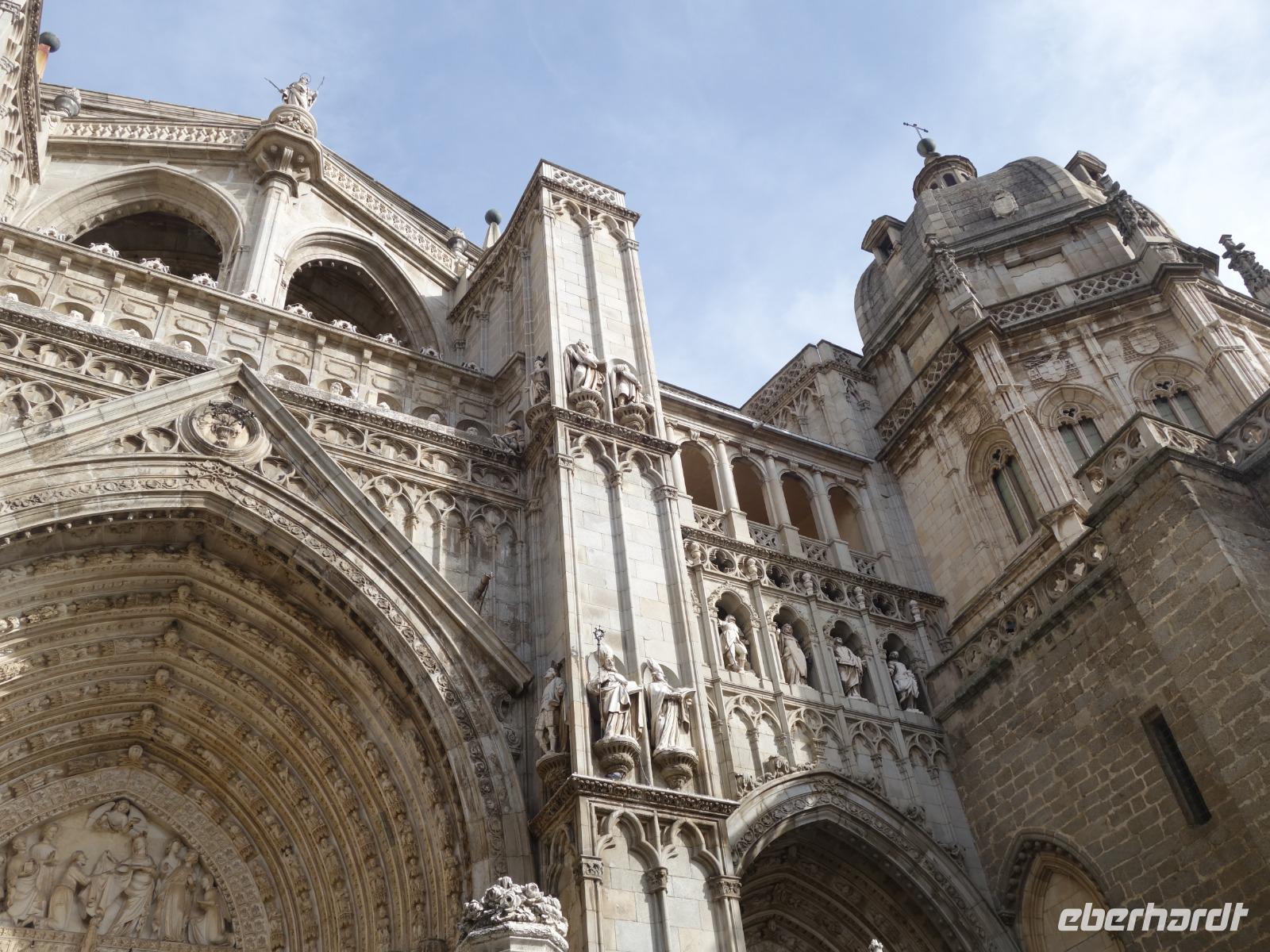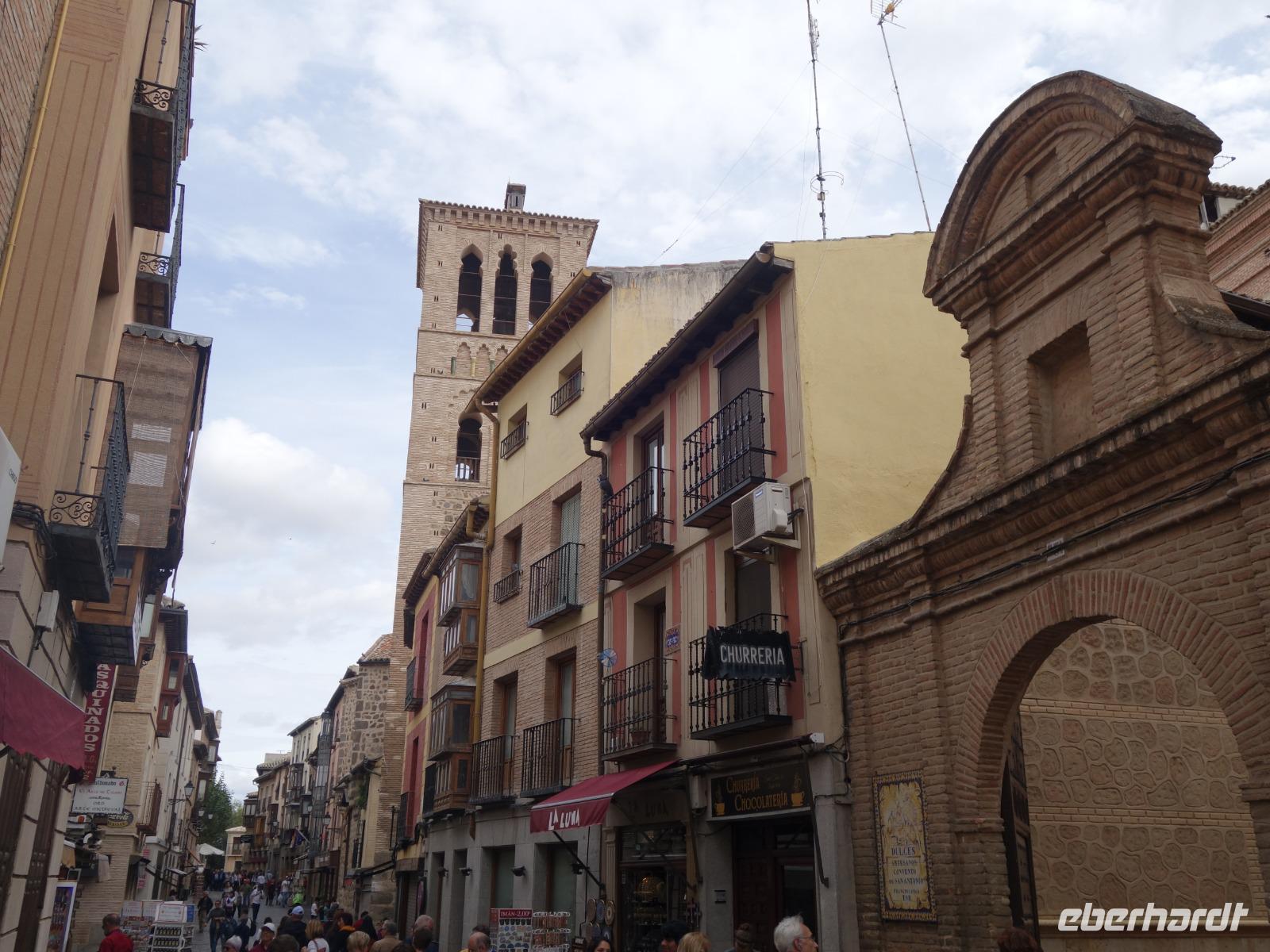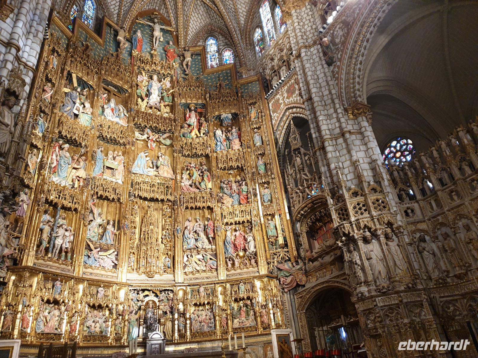 Wir spazierten gemeinsam durch die Straßen von Toledo. Ganz am Ende besuchten wir die imposante Kathedrale. Dieser Dom hat 2 Türme, aber einer war nicht zu Ende gebaut worden, da dann das Geld gefehlt hatte. Von innen erinnerte uns dieser Dom an den von Sevilla oder Malaga. Erstmals machten wir eine kleine Mittagspause an der Sonne. Weiter ging zu der jüdischen Synagoge „Santa Maria La Blanca". Toledo ist ein einzigartiges und gutes Beispiel, wie damals Christen, Juden und Muslime in Friede zusammenleben konnten. Unseren letzten Besuch machten wir bei der San Juan de Los Reyes Kirche. Nach dem Stadtbummel fuhren wir zurück zu unserem Hotel in Madrid, wo viele von uns in einer typischen Tapas-Bar den Tag in spanischem Ambiente ausklingen ließen. Wir hatten wieder Tapas heute. Wir wurden satt davon... und wie. Aber wir hatten noch Platz für Nachtisch. Einige von uns wollten noch richtig Madrid in die Nacht erleben und besuchten die Terrasse oben von Melia ME Hotel am Santa Ana Platz. Von hier oben hat man einen schönen Blick über die Stadt. Heute mit Vollmond. Zurück im Hotel mit sehr gute Stimmung und Laune wünschten wir uns alle eine gute Nacht.