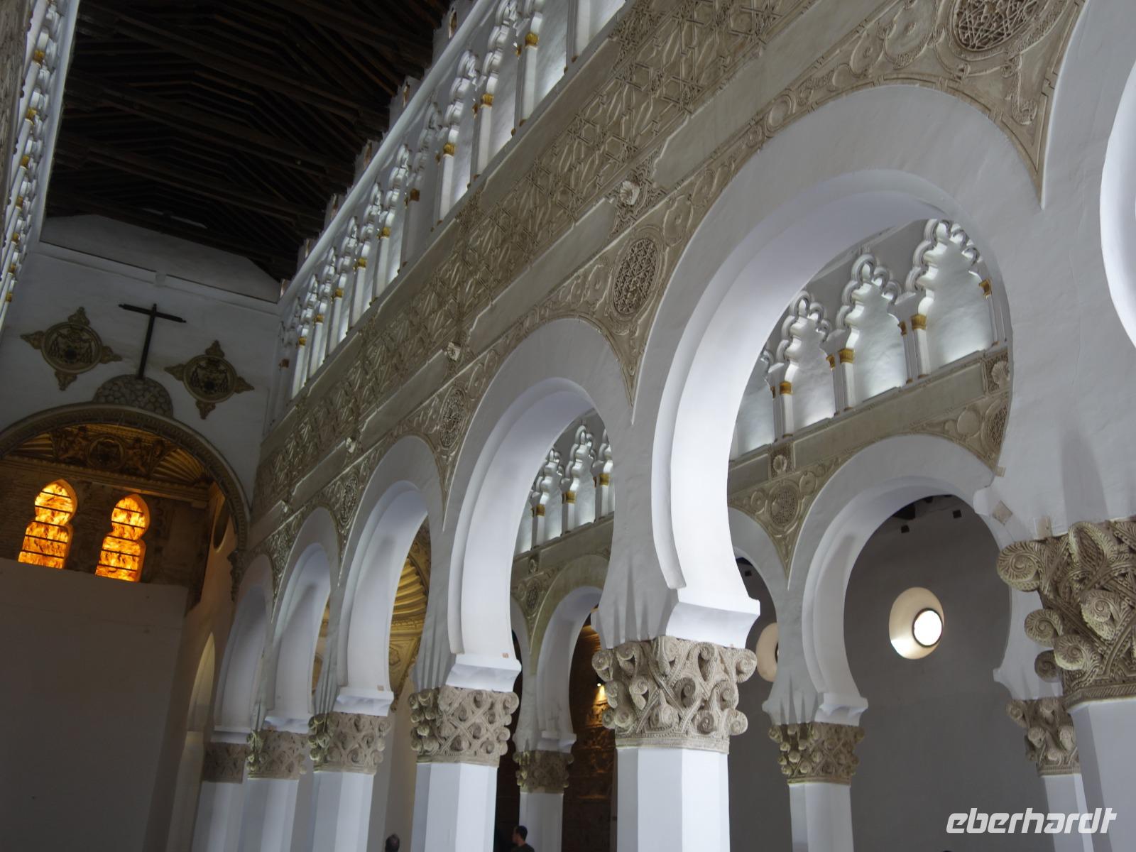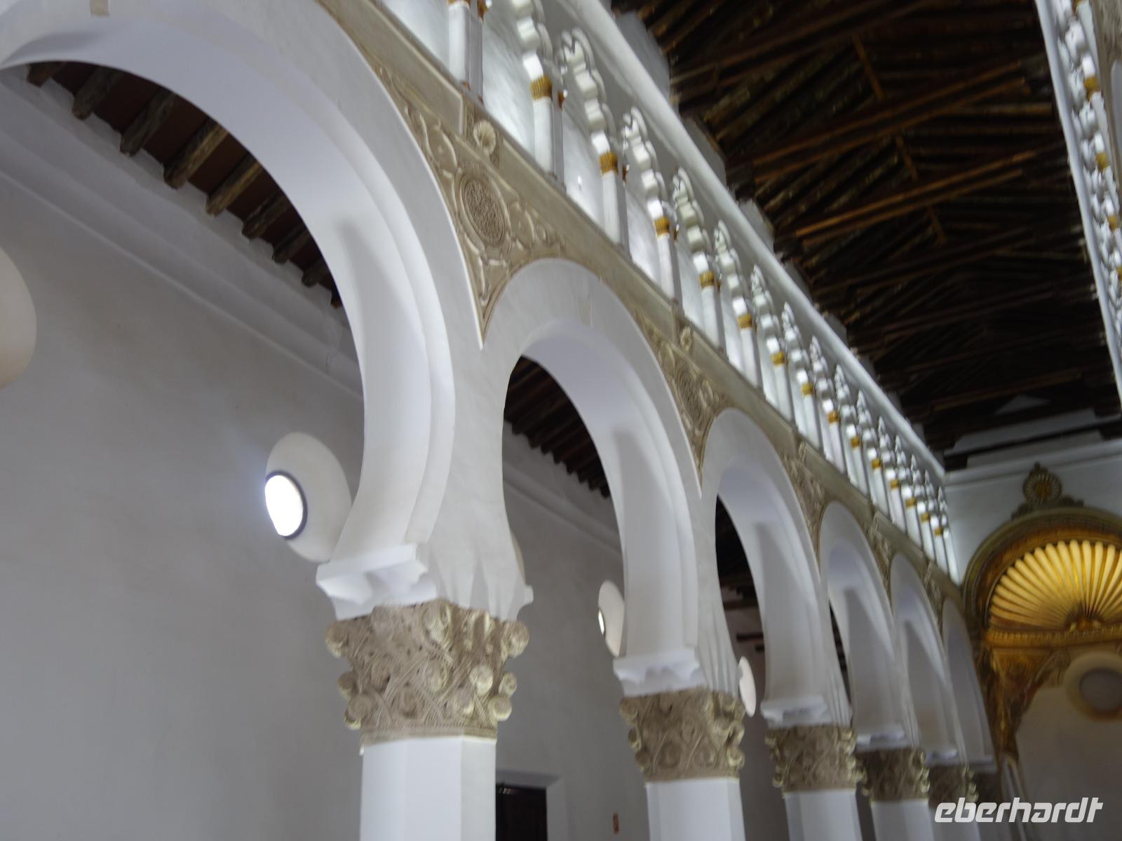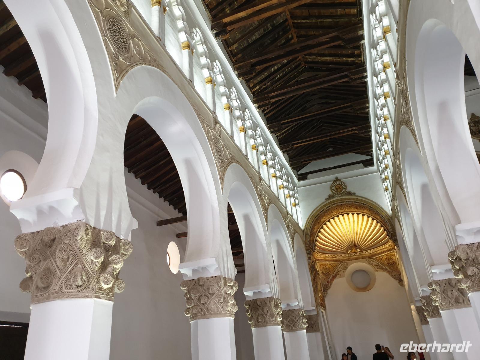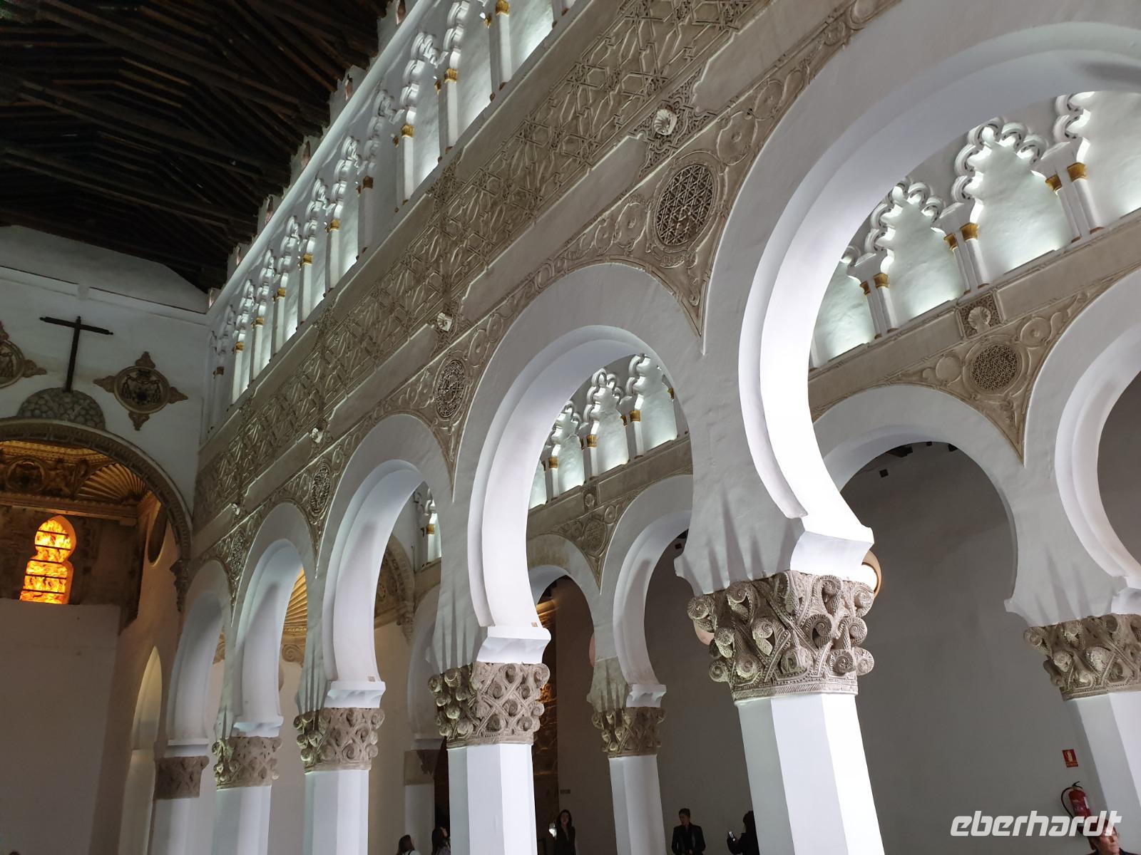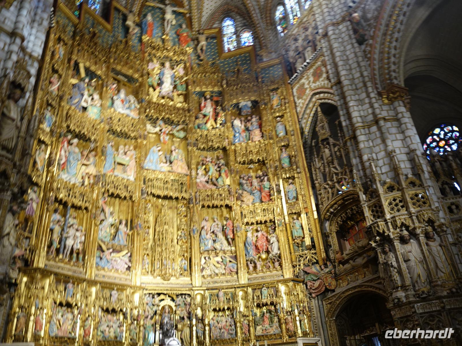 Wir spazierten gemeinsam durch die Straßen von Toledo. Ganz am Ende besuchten wir die imposante Kathedrale. Dieser Dom hat 2 Türme, aber einer war nicht zu Ende gebaut worden, da dann das Geld gefehlt hatte. Von innen erinnerte uns dieser Dom an den von Sevilla oder Malaga. Erstmals machten wir eine kleine Mittagspause an der Sonne. Weiter ging zu der jüdischen Synagoge „Santa Maria La Blanca". Toledo ist ein einzigartiges und gutes Beispiel, wie damals Christen, Juden und Muslime in Friede zusammenleben konnten. Unseren letzten Besuch machten wir bei der San Juan de Los Reyes Kirche. Nach dem Stadtbummel fuhren wir zurück zu unserem Hotel in Madrid, wo viele von uns in einer typischen Tapas-Bar den Tag in spanischem Ambiente ausklingen ließen. Wir hatten wieder Tapas heute. Wir wurden satt davon... und wie. Aber wir hatten noch Platz für Nachtisch. Einige von uns wollten noch richtig Madrid in die Nacht erleben und besuchten die Terrasse oben von Melia ME Hotel am Santa Ana Platz. Von hier oben hat man einen schönen Blick über die Stadt. Heute mit Vollmond. Zurück im Hotel mit sehr gute Stimmung und Laune wünschten wir uns alle eine gute Nacht.