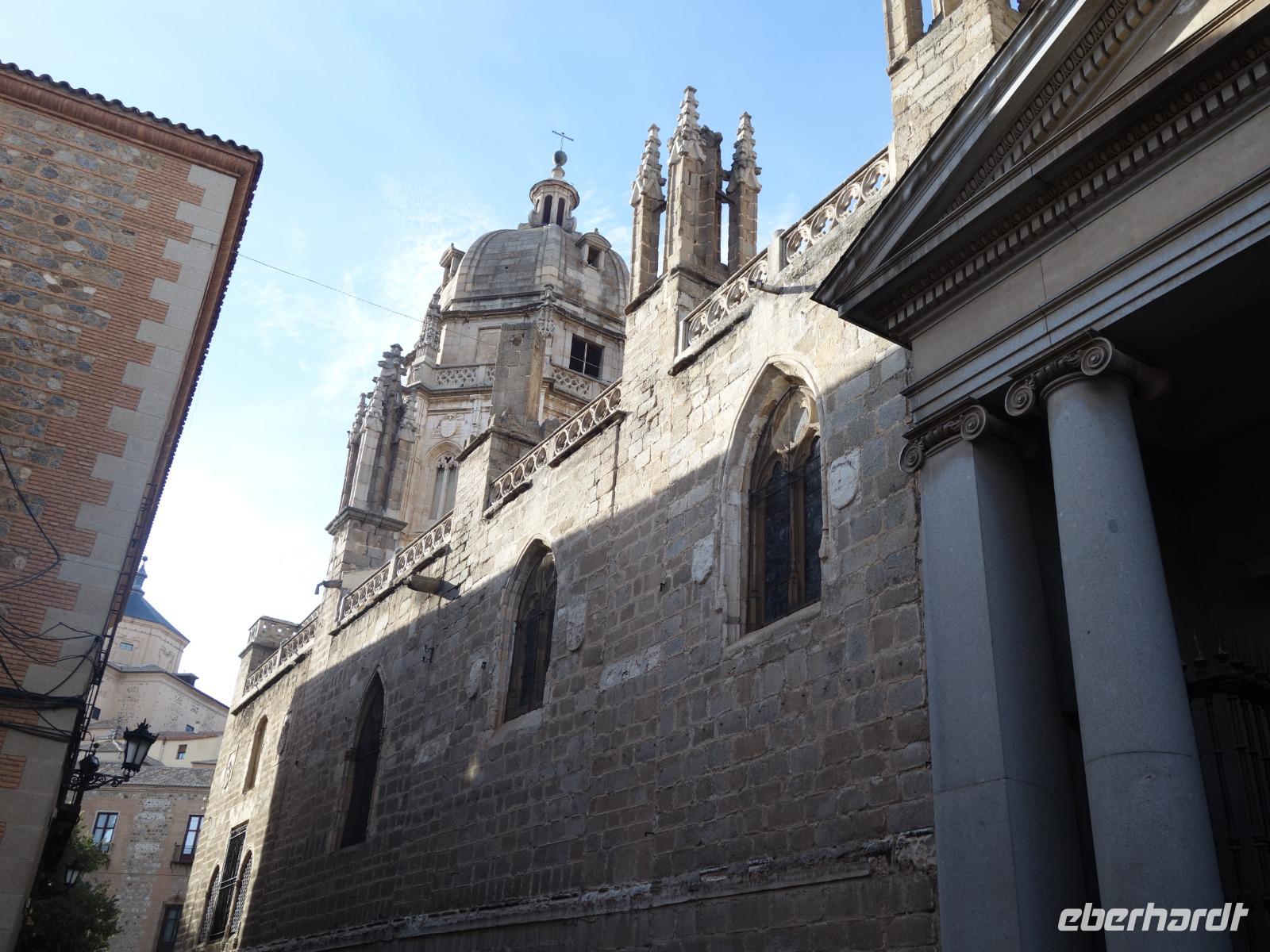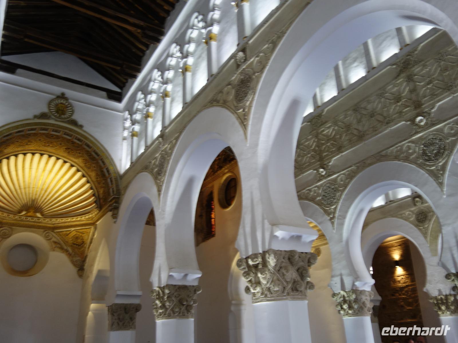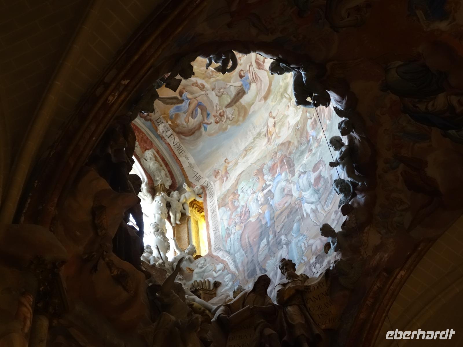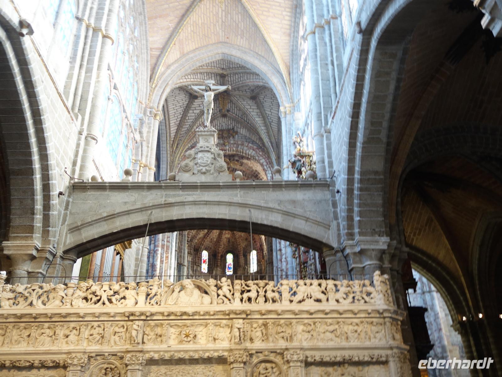 Wir spazierten gemeinsam durch die Straßen von Toledo. Ganz am Ende besuchten wir die imposante Kathedrale. Dieser Dom hat 2 Türme, aber einer war nicht zu Ende gebaut worden, da dann das Geld gefehlt hatte. Von innen erinnerte uns dieser Dom an den von Sevilla oder Malaga. Erstmals machten wir eine kleine Mittagspause an der Sonne. Weiter ging zu der jüdischen Synagoge „Santa Maria La Blanca". Toledo ist ein einzigartiges und gutes Beispiel, wie damals Christen, Juden und Muslime in Friede zusammenleben konnten. Unseren letzten Besuch machten wir bei der San Juan de Los Reyes Kirche. Nach dem Stadtbummel fuhren wir zurück zu unserem Hotel in Madrid, wo viele von uns in einer typischen Tapas-Bar den Tag in spanischem Ambiente ausklingen ließen. Wir hatten wieder Tapas heute. Wir wurden satt davon... und wie. Aber wir hatten noch Platz für Nachtisch. Einige von uns wollten noch richtig Madrid in die Nacht erleben und besuchten die Terrasse oben von Melia ME Hotel am Santa Ana Platz. Von hier oben hat man einen schönen Blick über die Stadt. Heute mit Vollmond. Zurück im Hotel mit sehr gute Stimmung und Laune wünschten wir uns alle eine gute Nacht.