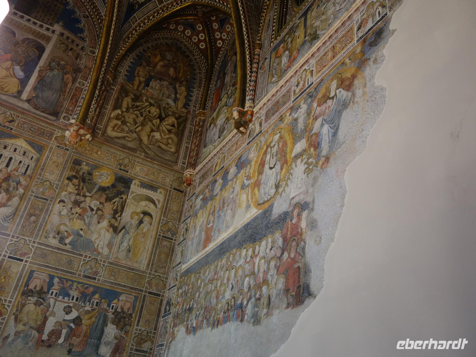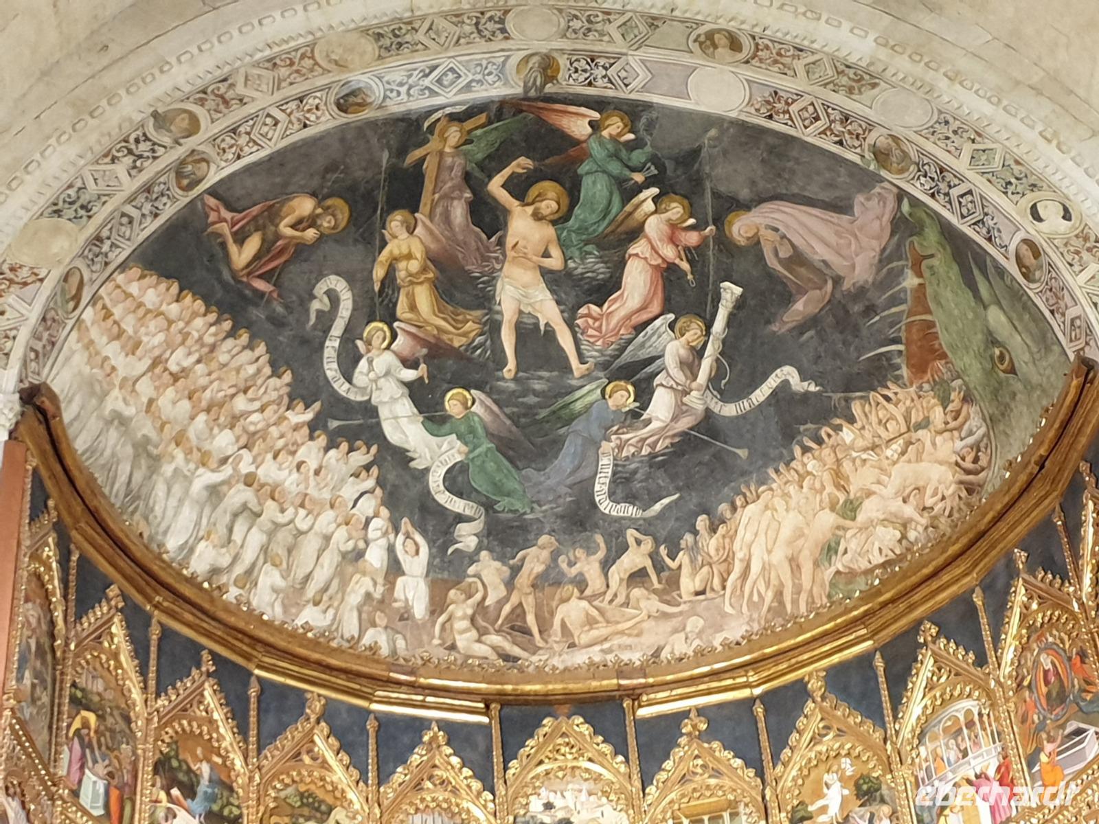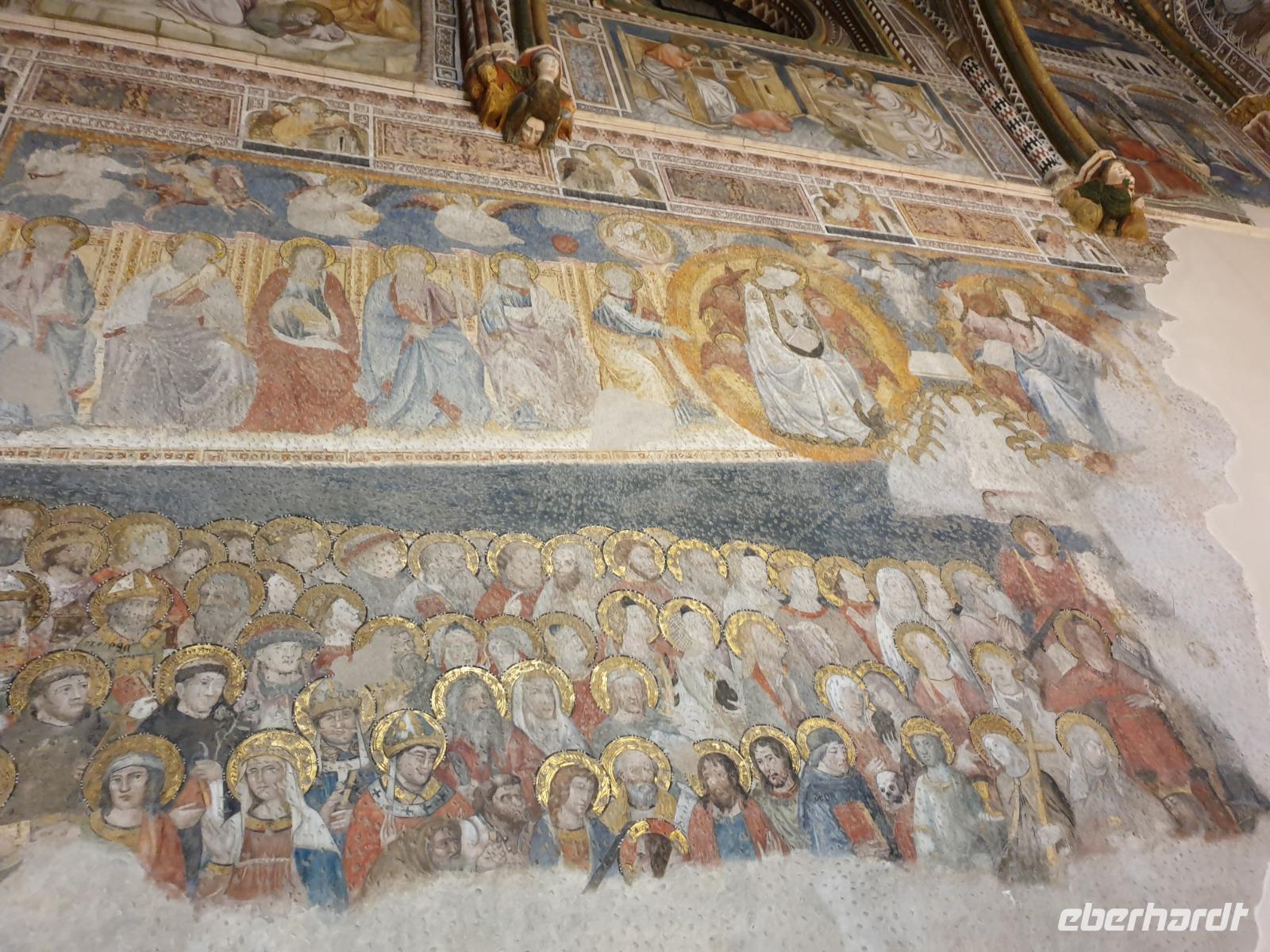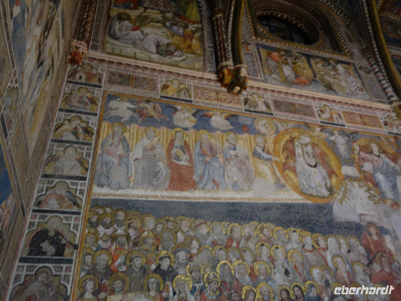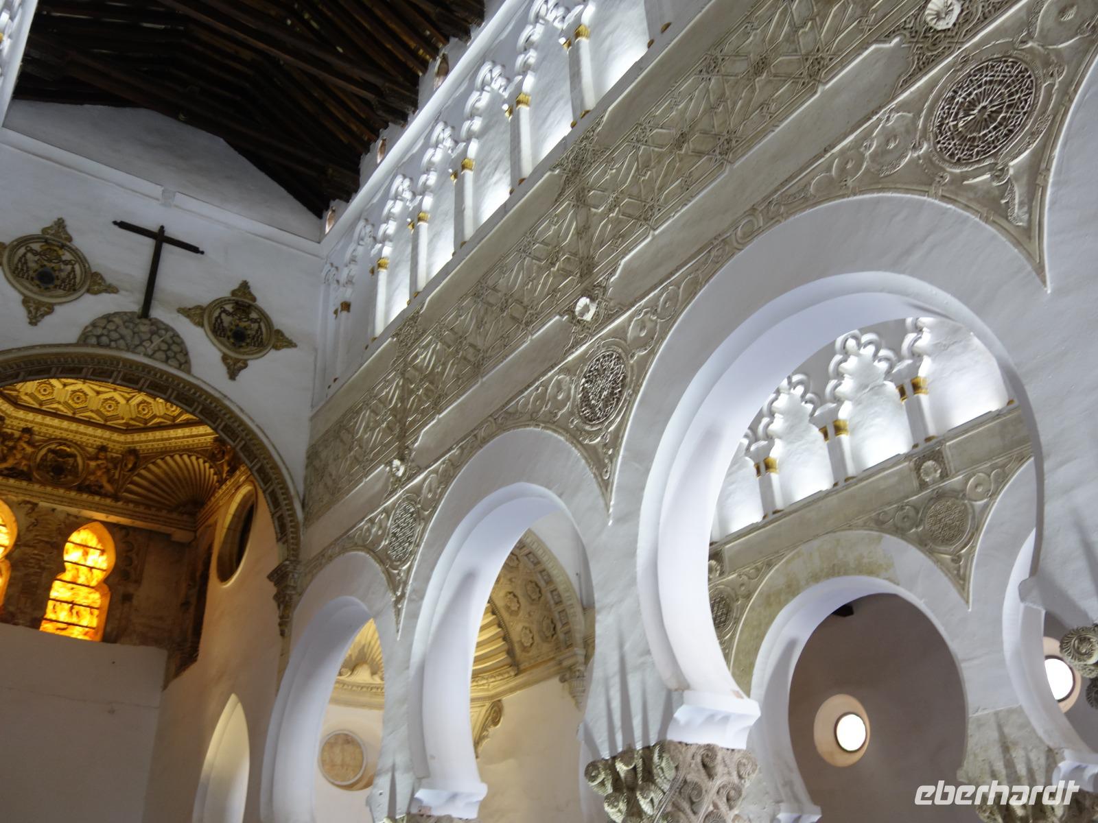 Wir spazierten gemeinsam durch die Straßen von Toledo. Ganz am Ende besuchten wir die imposante Kathedrale. Dieser Dom hat 2 Türme, aber einer war nicht zu Ende gebaut worden, da dann das Geld gefehlt hatte. Von innen erinnerte uns dieser Dom an den von Sevilla oder Malaga. Erstmals machten wir eine kleine Mittagspause an der Sonne. Weiter ging zu der jüdischen Synagoge „Santa Maria La Blanca". Toledo ist ein einzigartiges und gutes Beispiel, wie damals Christen, Juden und Muslime in Friede zusammenleben konnten. Unseren letzten Besuch machten wir bei der San Juan de Los Reyes Kirche. Nach dem Stadtbummel fuhren wir zurück zu unserem Hotel in Madrid, wo viele von uns in einer typischen Tapas-Bar den Tag in spanischem Ambiente ausklingen ließen. Wir hatten wieder Tapas heute. Wir wurden satt davon... und wie. Aber wir hatten noch Platz für Nachtisch. Einige von uns wollten noch richtig Madrid in die Nacht erleben und besuchten die Terrasse oben von Melia ME Hotel am Santa Ana Platz. Von hier oben hat man einen schönen Blick über die Stadt. Heute mit Vollmond. Zurück im Hotel mit sehr gute Stimmung und Laune wünschten wir uns alle eine gute Nacht.